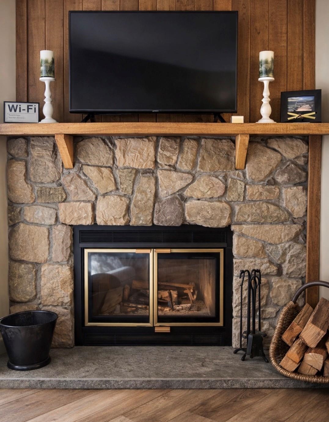 - Dining Area, Wood Fireplace, 1 Fireplace, Furnished, Kitchen/Dining, Kitchen/Living