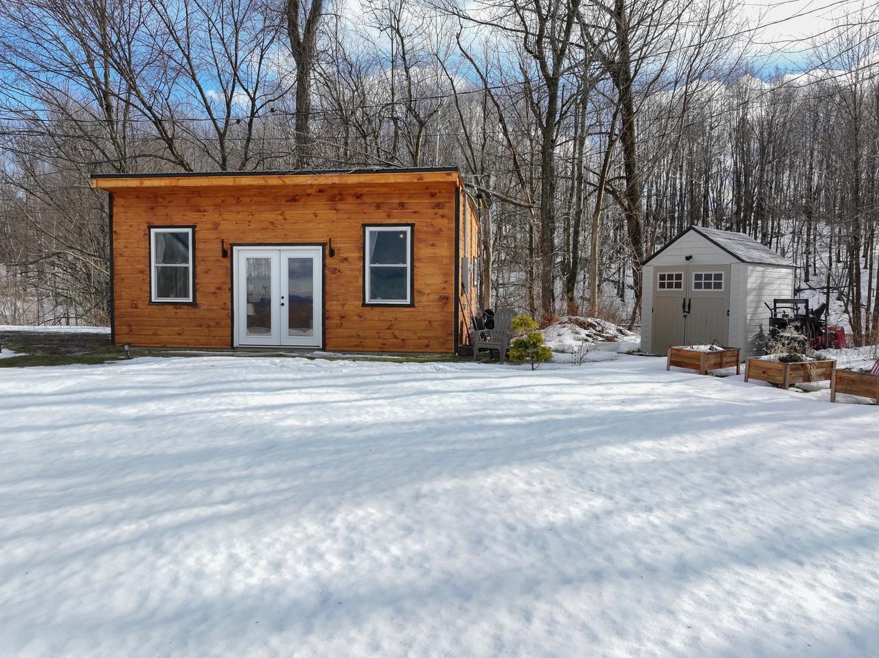 Welcome to 2882 Perley Road, a unique property nestled on over 3 acres of land with stunning Westerly views! This property consists of TWO homes! The main home was built in 2008 and has 2 bedrooms, including a large primary bedroom, an office, a luxurious sauna, a large full bathroom, and a fabulous open-concept kitchen/living/dining space that is perfect for entertaining! Convenient mudroom/laundry entry too! The kitchen was fully remodeled in 2023, along with new siding and gutters added that same year. The living area has a nice wood stove and gorgeous hickory wood floors. A brick paver walkway leads to an expansive 40X10 side deck and a 2nd rear deck with an awning - allowing maximum enjoyment of the amazing views and sunsets! This home is a busy Airbnb and generates an impressive weekly income. The 2nd building on the property is a newly added in 2025 Amish-built “tiny home” ADU! This adorable studio apartment has its own kitchen/living room, a ¾ bath that includes a top-of-the-line Schluter shower system, and a cozy bedroom/office space. The ADU also benefits from the striking views! Both homes have generators with hook-ups. This property is less than 10 minutes to the shops/restaurants in downtown Enosburg, and under 30 minutes to Jay Peak Resort for world-class skiing! A special property like this, doesn’t come on the market every day!