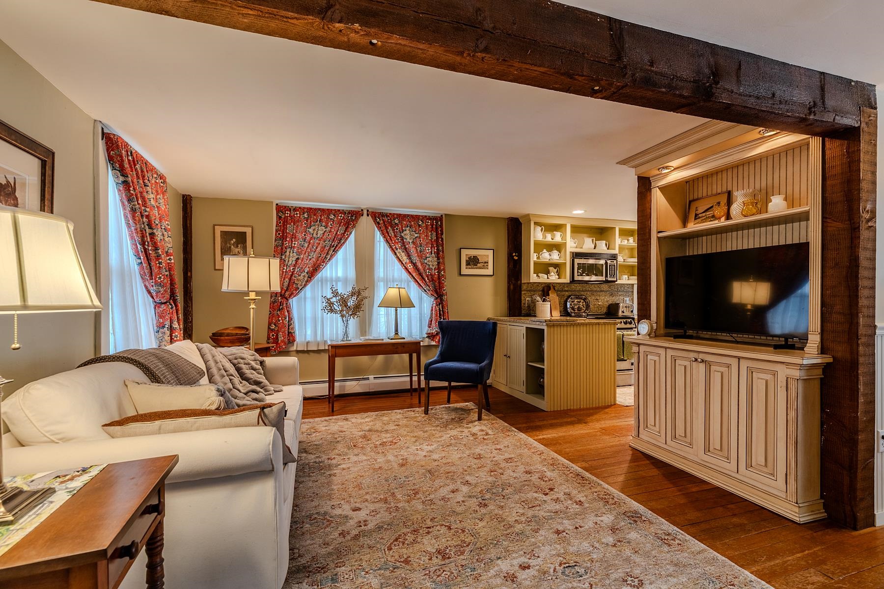 Imaginative transformation over the years of an 1888 barn into a quintessential Vermont Village home. Beyond a white picket fence follow a marble walkway past an original hitching post to the welcoming windowed vestibule. This entry level opens into a bright family room or den. A peek into the bonus and adjacent utility rooms reveal the original massive stone foundation walls. Stairs ascend to the open main level which flows seamlessly along hardwood floors from living to kitchen to dining areas. A full bathroom is a reminder that the dining area had once been a bedroom. Step from the wide deck onto an intriguing hillside backyard. You have passed from the village below into the countryside with winter views of surrounding hills and mountains, flower and perennial gardens abloom in summer. Further back is a private storage shed. While the first level has an engaging cottage feel, the second level rises majestically upward with cathedral ceilings and viewing windows. One bedroom has a small loft sitting area. The other takes complete advantage of its spaciousness. Both share a full bathroom. Original beams, pegs and fixtures subtly interspersed throughout combined with current systems updates, exterior painting, interior remodeling are fine examples of how vintage ambiance and contemporary design combine to create an enduring Vermont legacy. Experience Southern Vermont’s variety of ski resorts for all levels of skiers, trails and recreation areas, as well as a variety of dining, shopping, cultural opportunities . Come home to historic Arlington, Vermont