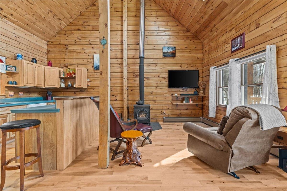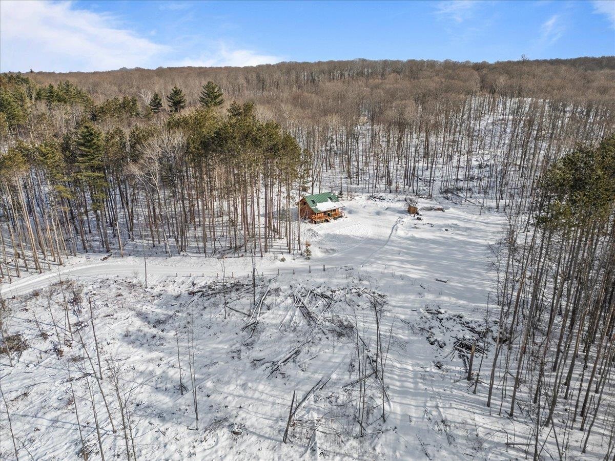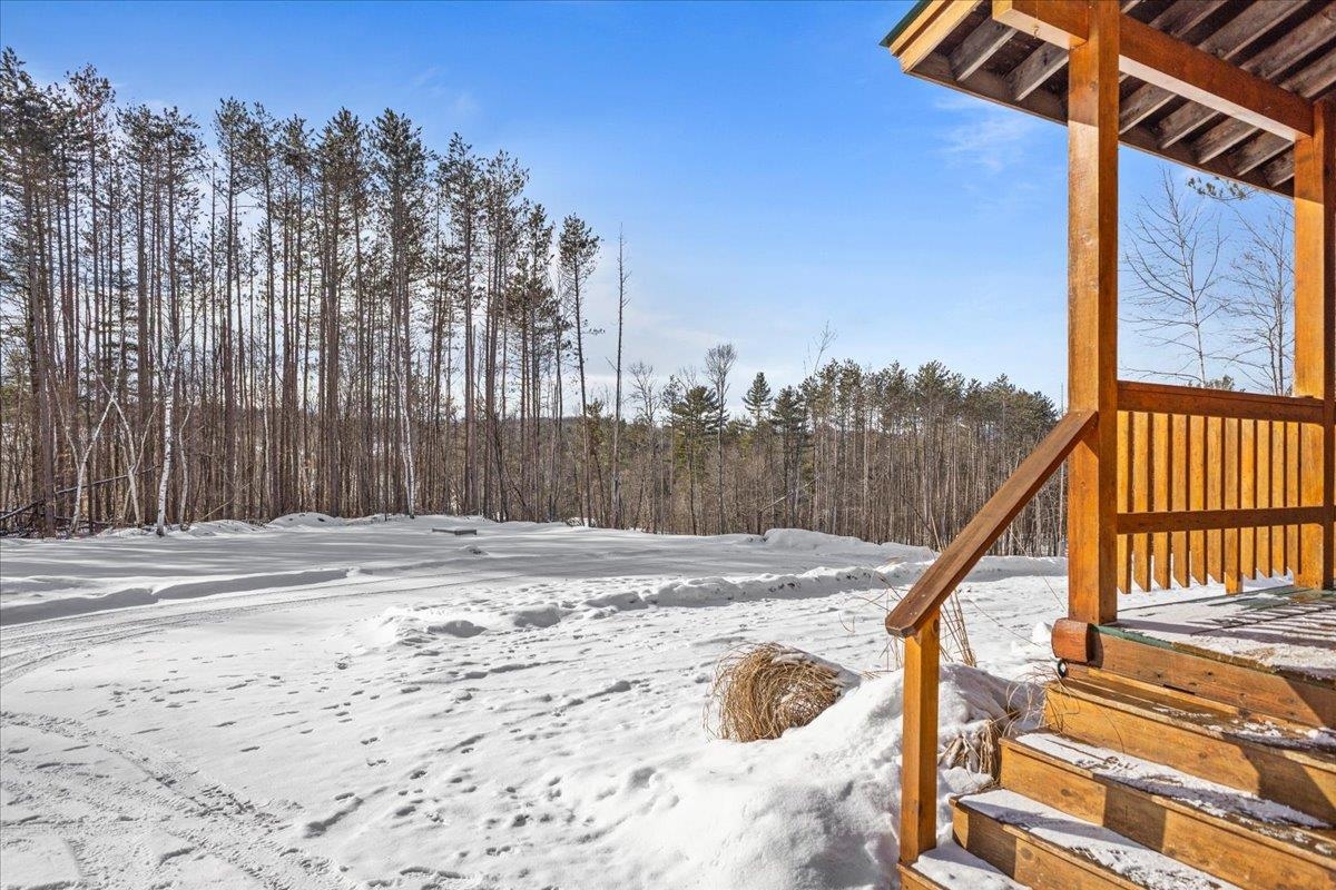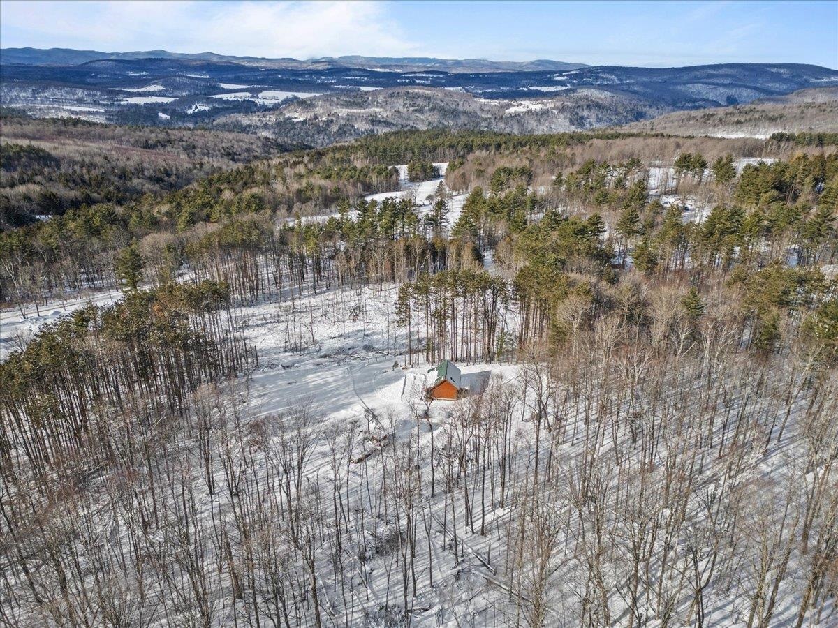 This is the Vermont Life! Situated on 16.9 acres and set 0.2 miles back from a quiet country road. This property offers total privacy with an open yard, deep woods for wildlife viewing, and a classic Southern facing covered porch featuring sunset and seasonal mountain views. Conveniently located, this "slice ofVermont" is within an hour of several ski resorts, hiking trails, and quintessential Vermont towns. It is also just 30 minutes from Montpelier and less than an hour from the Hanover/Lebanon area, with VAST Snowmobile Trail #110 just around the corner, reachable at the back of the property. The open-concept floor plan includes a kitchen, dining, and living area with gorgeous woodwork, dramatic vaulted ceilings, skylights, and a cozy wood stove. The home's current septic system is rated for three bedrooms. Converting the loft into an additional bedroom could be done with minimal effort. The basement features high ceilings, LVP flooring, and outdoor access, making it ideal for storage or future finishing.This solidly built, fully furnished low-maintenance home features a standing seam roof, propane heat, a wood stove, high-quality insulation, fiber internet and is wired for a backup generator. Whether you are looking for a full-time residence or a vacation getaway with Airbnb potential, this is a unique large land opportunity.