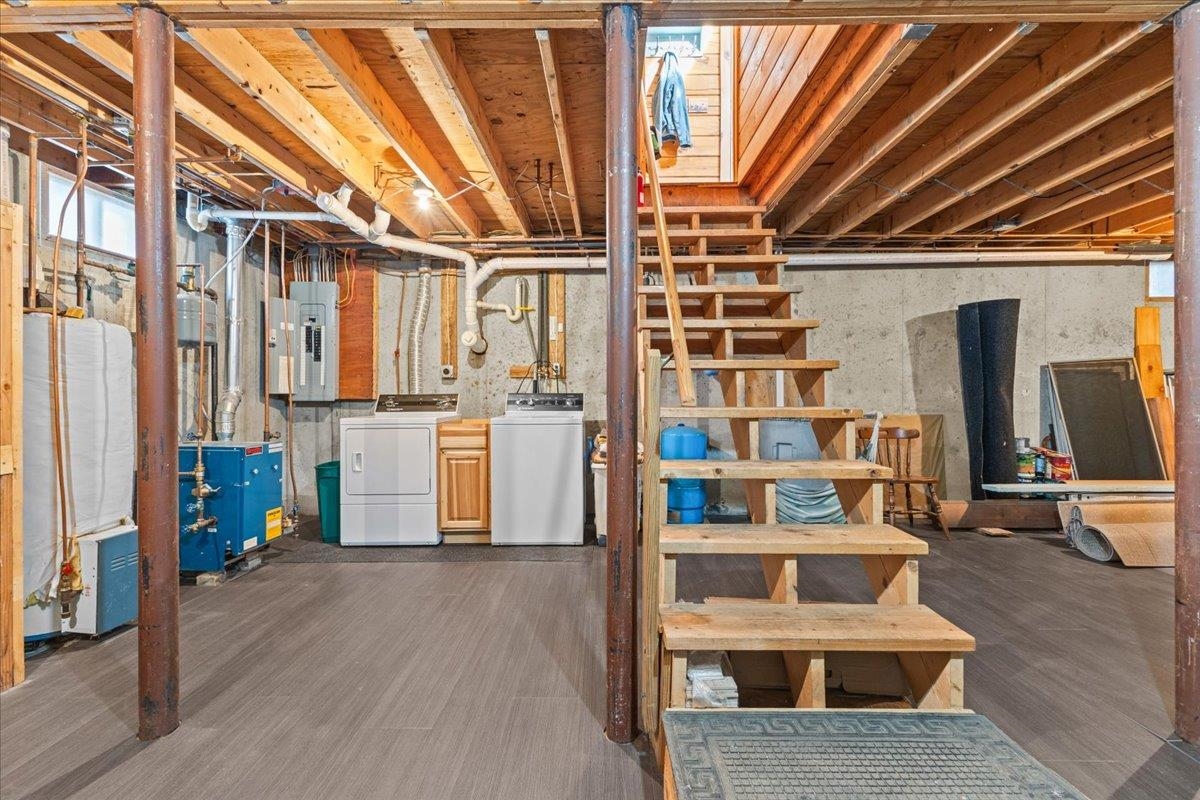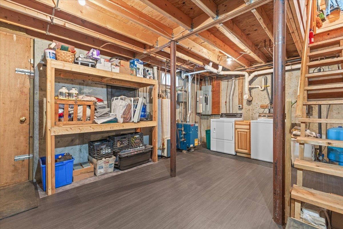 - Bulkhead, Partially Finished, Storage Space, Basement Stairs