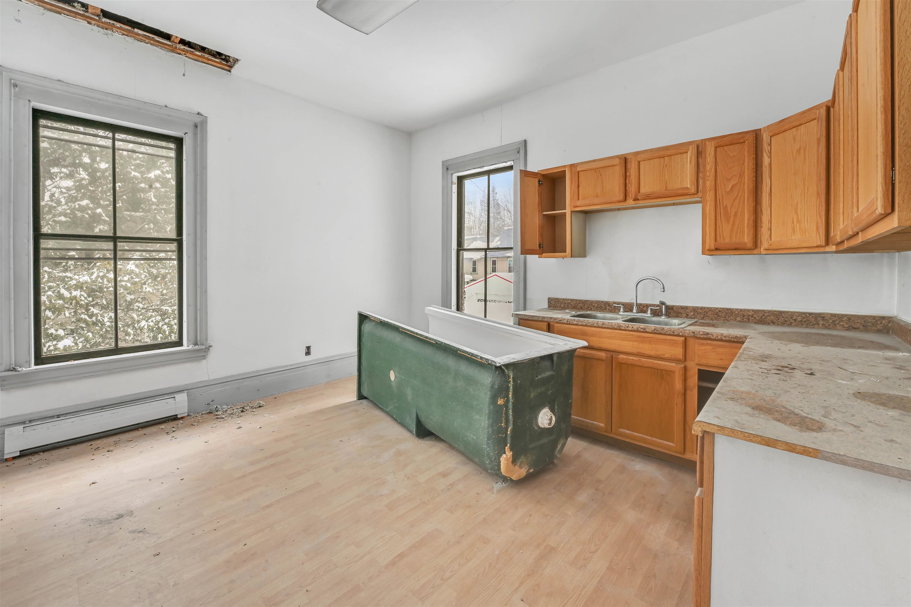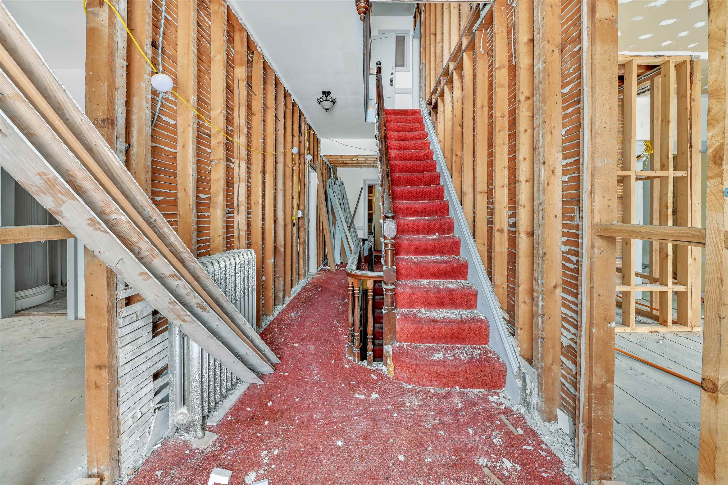 This stately Victorian offers a compelling opportunity for investors or developers looking to complete and capitalize on a thoughtfully reconfigured multi-family project. Rich with original craftsmanship, the home still showcases the hallmarks of its era: tall ceilings, detailed woodwork, built-ins, and an overall sense of scale and presence that newer construction rarely replicates. A wraparound front porch further enhances its architectural appeal and curb presence. Formerly configured as four units, the property has since been approved and partially converted into a six-unit apartment building. The proposed layout includes a three-bedroom unit, a two-bedroom unit, and four one-bedroom units, creating a balanced mix well suited to the local rental market. Once completed, the projected gross monthly income is estimated between $7,500 and $8,000, making this an attractive option for those seeking long-term passive income. Significant structural improvements have already been completed, and the interior has been taken back to the studs, providing a clean slate for the next phase of work. Updated mechanicals are underway, including a high-efficiency propane heating and hot water system designed to serve the building efficiently. Electrical infrastructure is in place to support individual metering for each unit, along with a common meter. Situated on a corner lot, the property benefits from more parking than typically expected for a building of this vintage. With the heavy lifting already done, what remains is finishing the mechanicals, closing the building back up, and bringing the units online. For the right buyer, this is a rare chance to complete a classic Victorian conversion and turn it into a strong-performing income property.