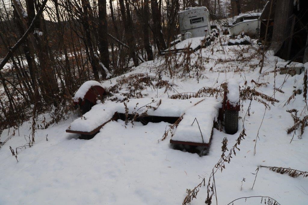 Partially finished circa 1998 26' x 24' ranch house on 2 lots totalling 1.76+/- acres. This fixer-upper has been lived in year round since its construction but never fully finished. The space consists of a kitchen that opens into a single main room being used as a living room, bedroom and dining area. Both the interior and exterior wall surfaces need finishing in places. The interior needs drywall, finished flooring, and all cosmetics. The bathroom is functional but the vanity has never been plumbed into water and waste lines. Previously there was an interior stairway to the partial basement but it was removed. Access to the dry basement is now an at-grade walkout entry. The basement is partially full height and part crawlspace. The basement is unfinished. Heat is provided by a wood pellet stove only that vents into a tile-lined masonry chimney and there is currently no central heat. The drilled well is new and the engineered septic system date to 1998. There are a few sheds on the property that contain building supplies and tools and other treasures. The property is being offered with the house broom clean but all personal property, both good and bad, on the exterior to remain for the new owner. The property is being offered in "as-is" condition. This property will require either a cash buyer or a substantial rehab loan.