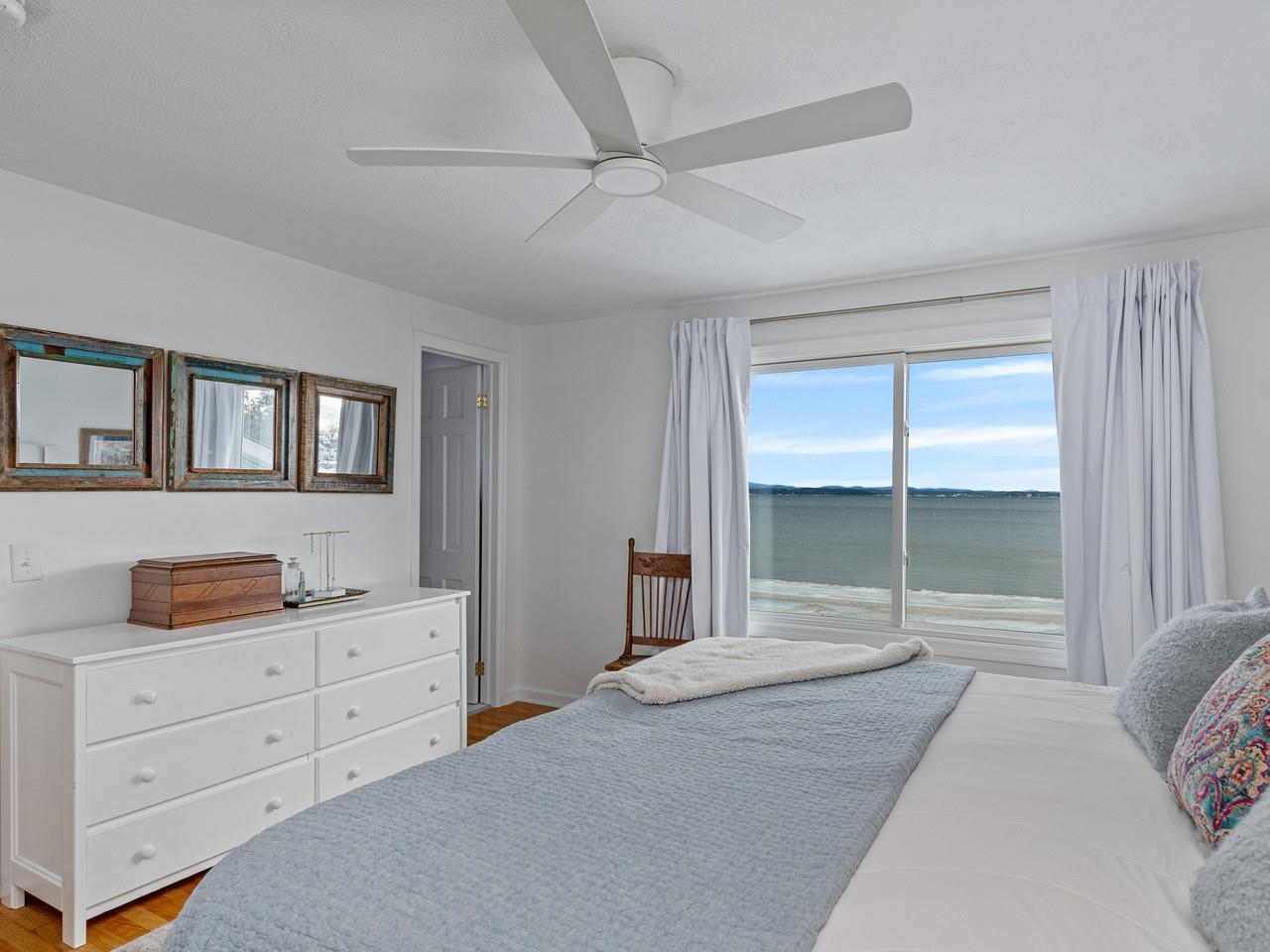 Wake up to sweeping, south-facing Adirondack views and end each day with unforgettable sunsets at this exceptional waterfront home in Burlington’s coveted Appletree Point community. Perfectly set back from the road, this six-bedroom, four-bath residence offers privacy, space, and 100 feet of pristine lakeshore with a sandy beach, steps from the lawn, and a private boat mooring. Designed for both everyday comfort and memorable gatherings, the home features a large family room with vaulted ceilings, a welcoming living room with fireplace, and a sun-filled layout that flows effortlessly. The kitchen is equipped with granite countertops, a wood-topped island, stainless steel appliances, including an induction range, and a dining room just off the kitchen. Upstairs, you’ll find four bedrooms, including a primary with en suite bath. The finished lower level adds additional bedrooms and a full bath, providing flexible space for guests, work, or recreation. Step outside to enjoy the three-season sunroom, deck, and expansive back lawn leading to your sandy beach and lakeshore, perfect for swimming, paddling, boating, or relaxing by the water. With the bike path just down the road and the wonderful Appletree Point neighborhood, this is a rare opportunity to enjoy south-facing lakefront living with views that stretch for miles. A true Burlington waterfront gem where community, comfort, and natural beauty come together.