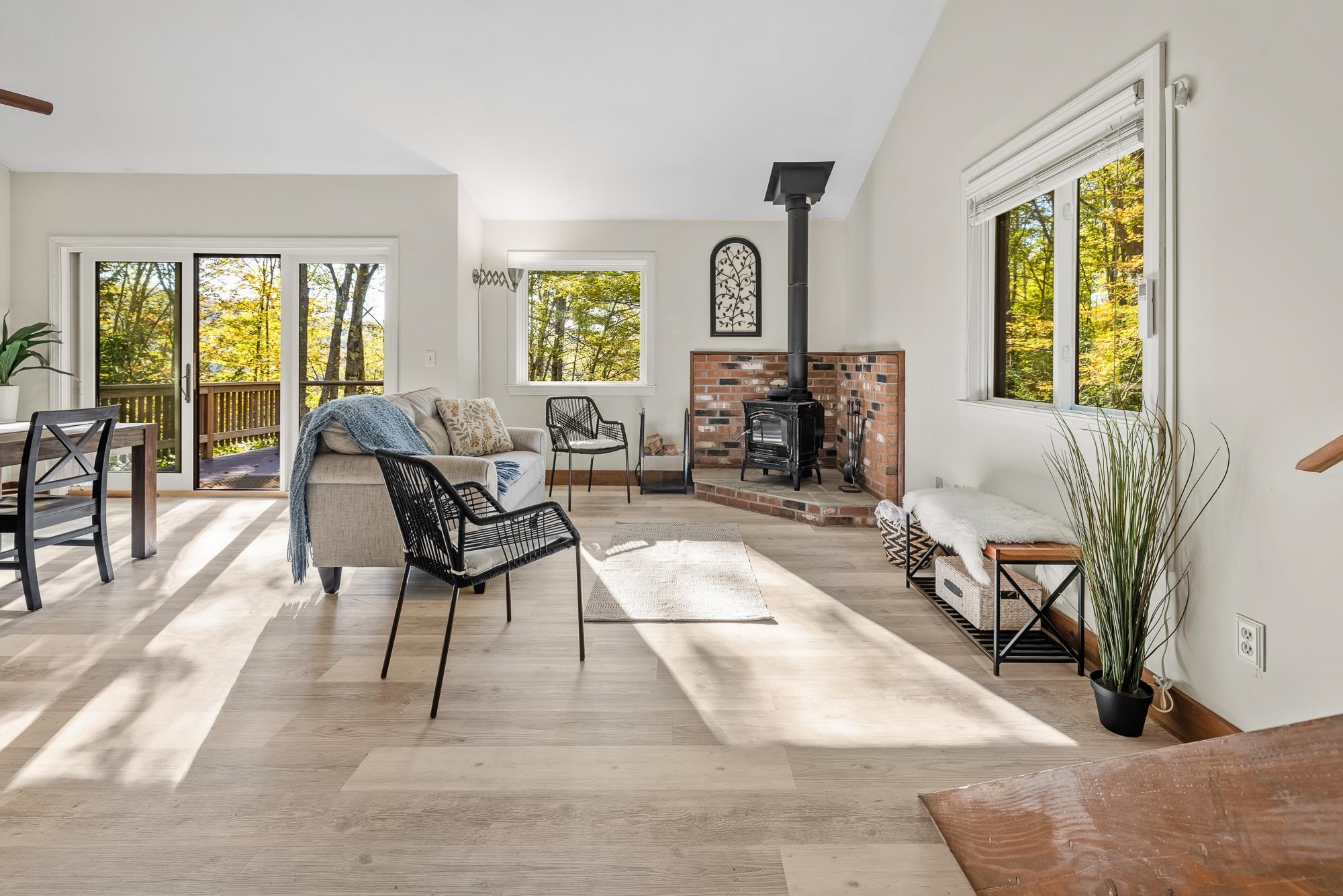 - Cathedral Ceiling, Ceiling Fan, Dining Area, Laundry Hook-ups, Living/Dining, Natural Light, Indoor Storage, Vaulted Ceiling, Wood Stove Hook-up