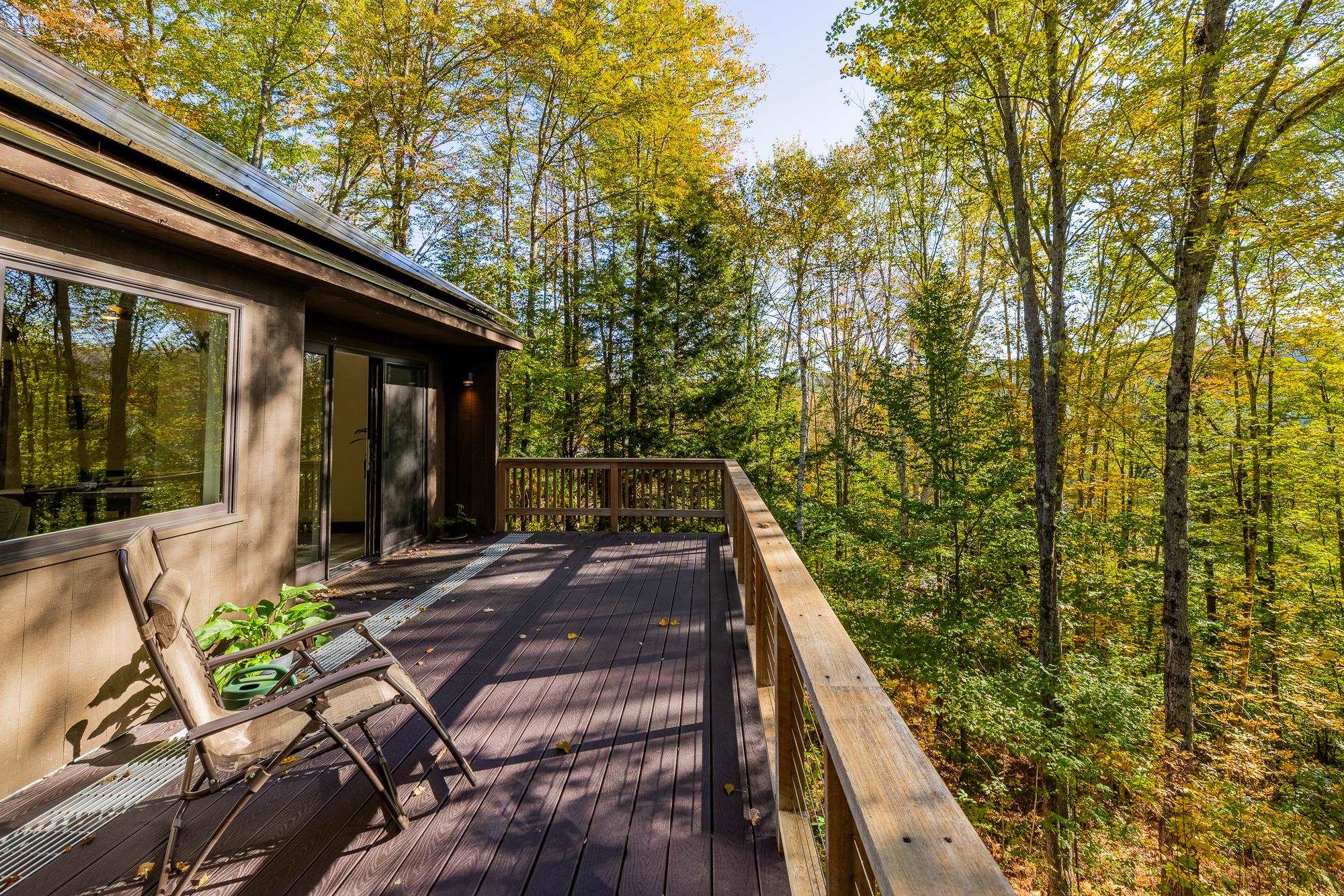 Tucked among the trees, this Quechee Lakes contemporary 2plus bedroom, 2 bath home offers both modern efficiency and natural tranquility. The light-filled interior features soaring ceilings, new flooring, and a versatile loft—ideal for a home office, studio, or guest space. Recent upgrades include solar panels, mini-splits and a brand-new roof, making this home as sustainable as it is stylish. Wake up and sip coffee on your deck surrounded by nature, and enjoy the peace and privacy of this wooded setting, while still having access to a wealth of amenities: golf, tennis, indoor and outdoor pools, and a private ski area for year-round recreation. Whether for a full-time residence or a weekend retreat, this home offers the perfect blend of comfort, convenience, and leisure. Only 15 minutes to Dartmouth.