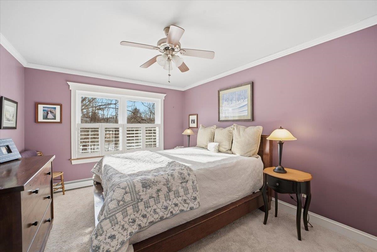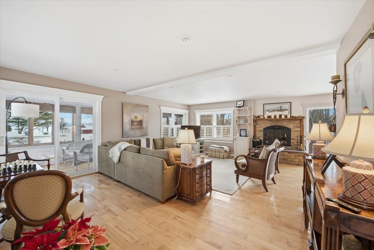 Enjoy the best of Lake Champlain living with access to a private sandy beach, and sweeping water views. Perfectly positioned for boating enthusiasts, this home offers a prime waterfront lifestyle with easy access to nearby restaurants and activities by boat. A covered wraparound porch provides the ideal retreat on warm summer days, while a three-season porch offers direct lake views year-round. Inside, the home blends timeless charm with modern comfort, featuring a welcoming sitting room with French doors, custom built-ins in the living room, and a cozy wood-burning fireplace. Plantation Shutters, recessed lighting, and ceiling fans enhance both style and functionality throughout. The kitchen is well appointed with coveted Aga appliances and a wet bar with wine refrigerator, perfect for entertaining. Recent upgrades include a new Bosch boiler, and thoughtful spaces such as a large mudroom add everyday convenience. The primary suite offers a private bath and attached nursery, while a bonus room with a three-quarter ensuite provides flexible space for guests or work-from home needs. Beautifully landscaped gardens complete this exceptional Lake Champlain retreat, where comfort, character, and lake access living come together seamlessly.
