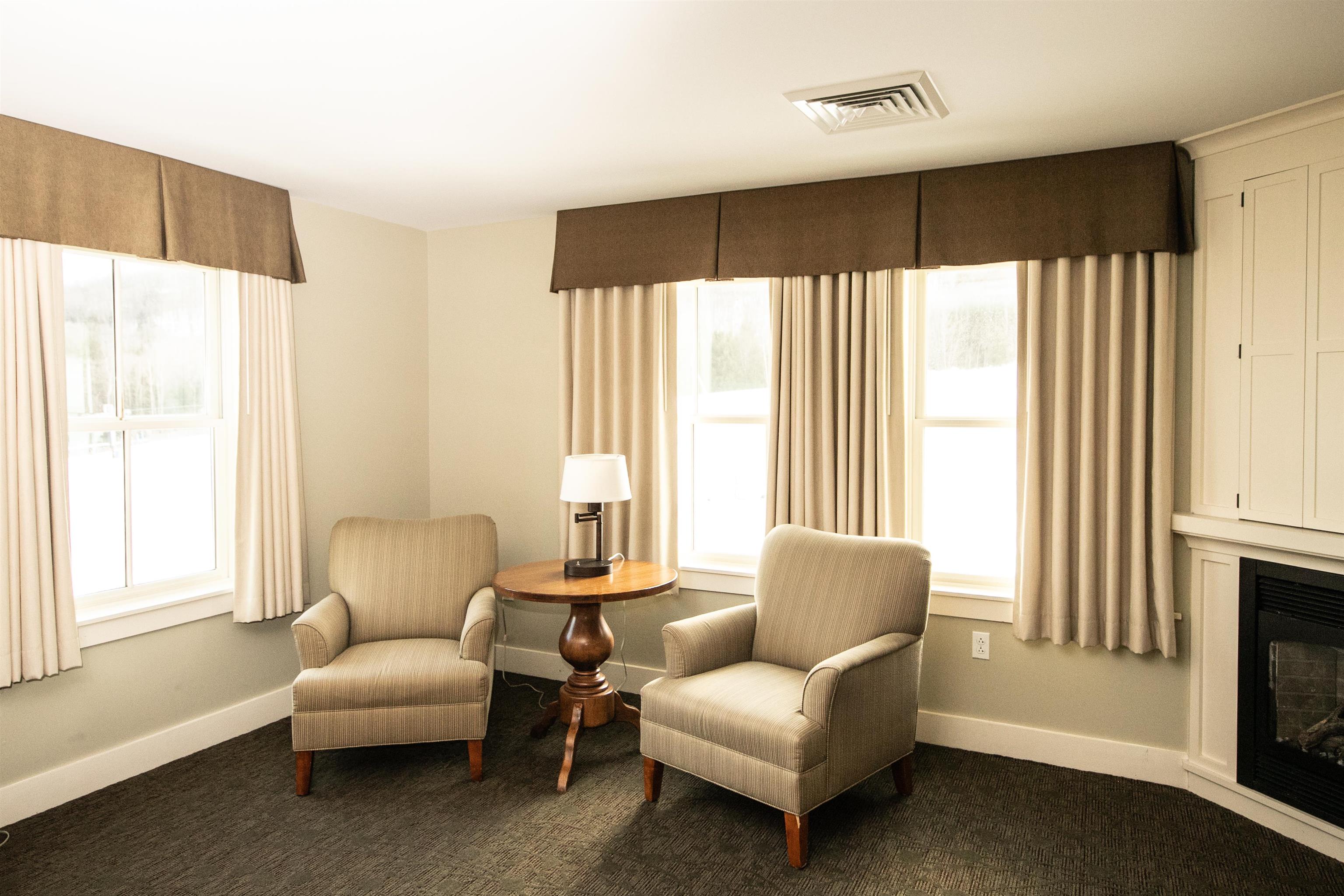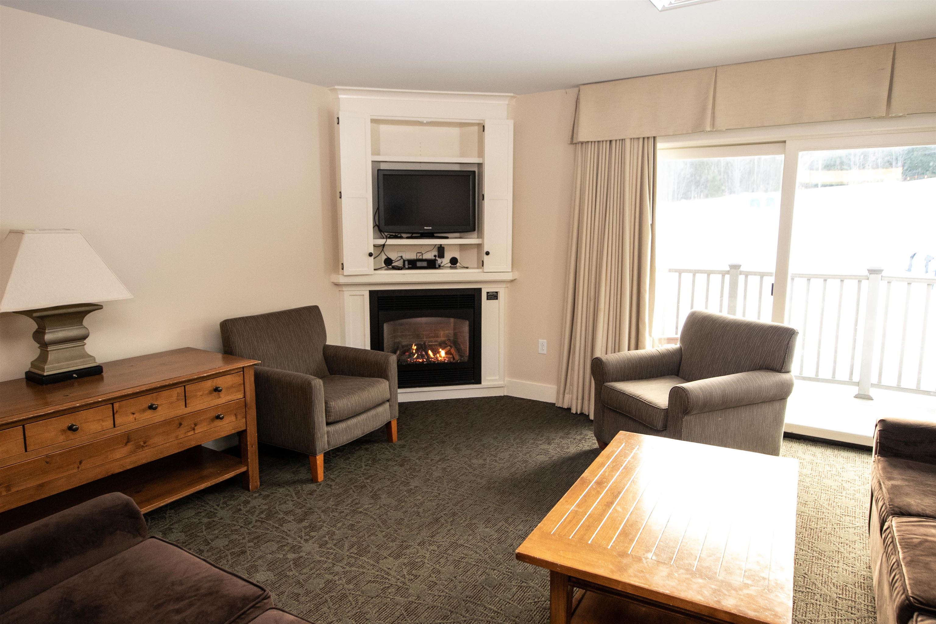 - Draperies, Gas Fireplace, 2 Fireplaces, Furnished, Living/Dining, Primary BR w/ BA, Whirlpool Tub