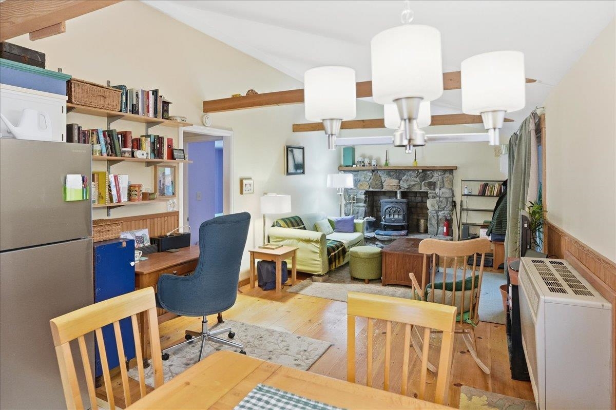 - Attic with Hatch/Skuttle, Blinds, Dining Area, Hearth, Living/Dining, Vaulted Ceiling, Wood Stove Hook-up