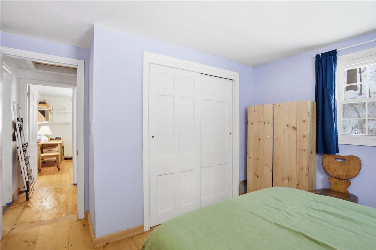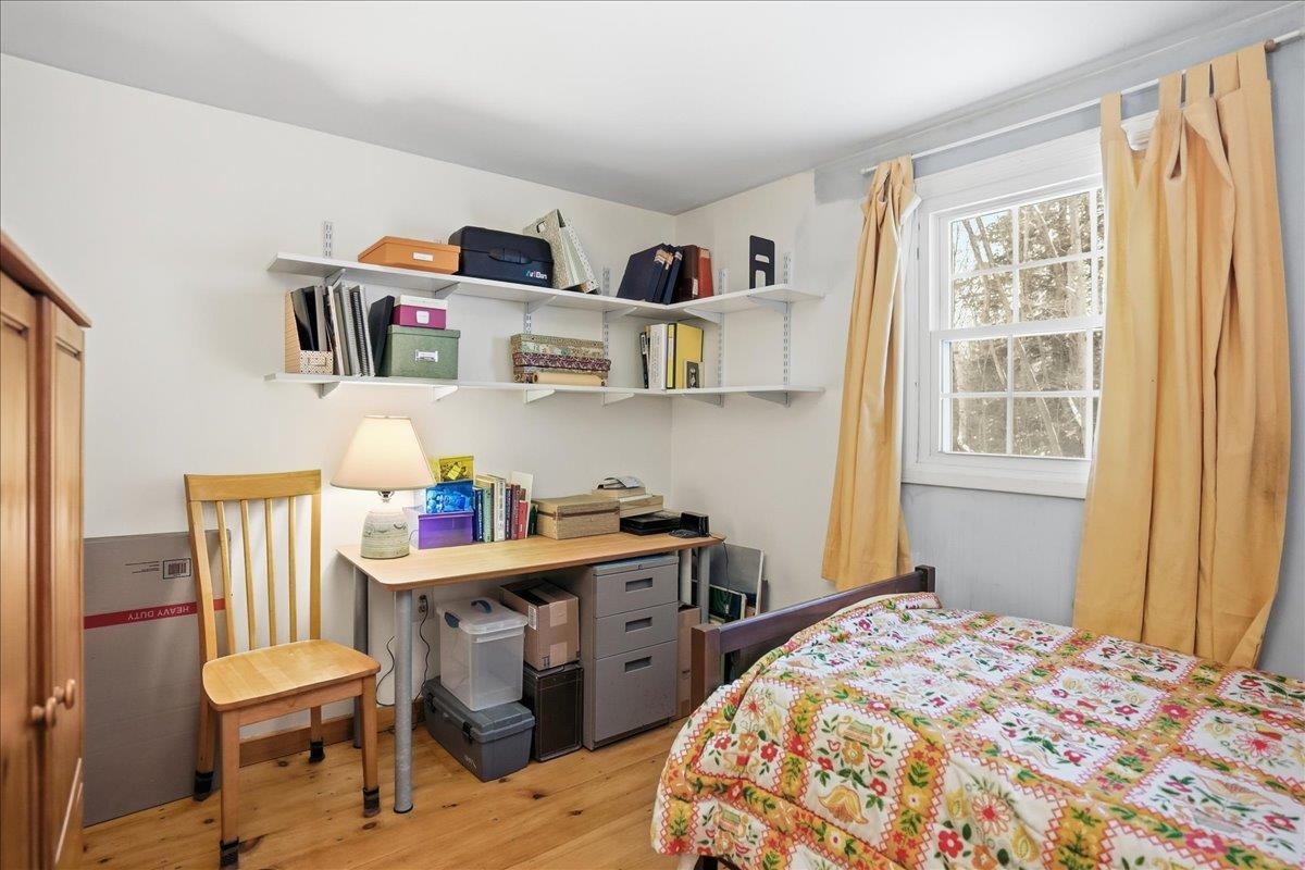 Tucked away on a peaceful wooded lot in the heart of Starksboro, this charming 2-bedroom, 1-bath home offers comfortable one-floor living with a warm, inviting feel. A covered front porch welcomes you inside, where an open floor plan seamlessly connects the kitchen, dining, and living areas. Wood floors run throughout the home, enhancing its natural character. The living room is anchored by a cozy wood stove, creating a welcoming gathering space and providing efficient supplemental heat during Vermont’s cooler seasons. Both bedrooms are well-sized, and the full bath is conveniently located on the main level. Surrounded by trees, the wooded lot offers privacy and a serene setting while still being close to local amenities. This home is an ideal opportunity for those seeking simplicity, comfort, and the beauty of Vermont living.