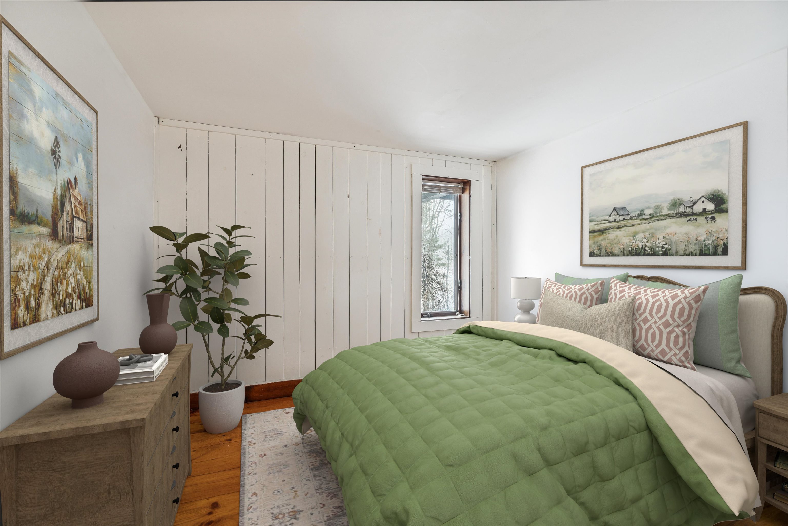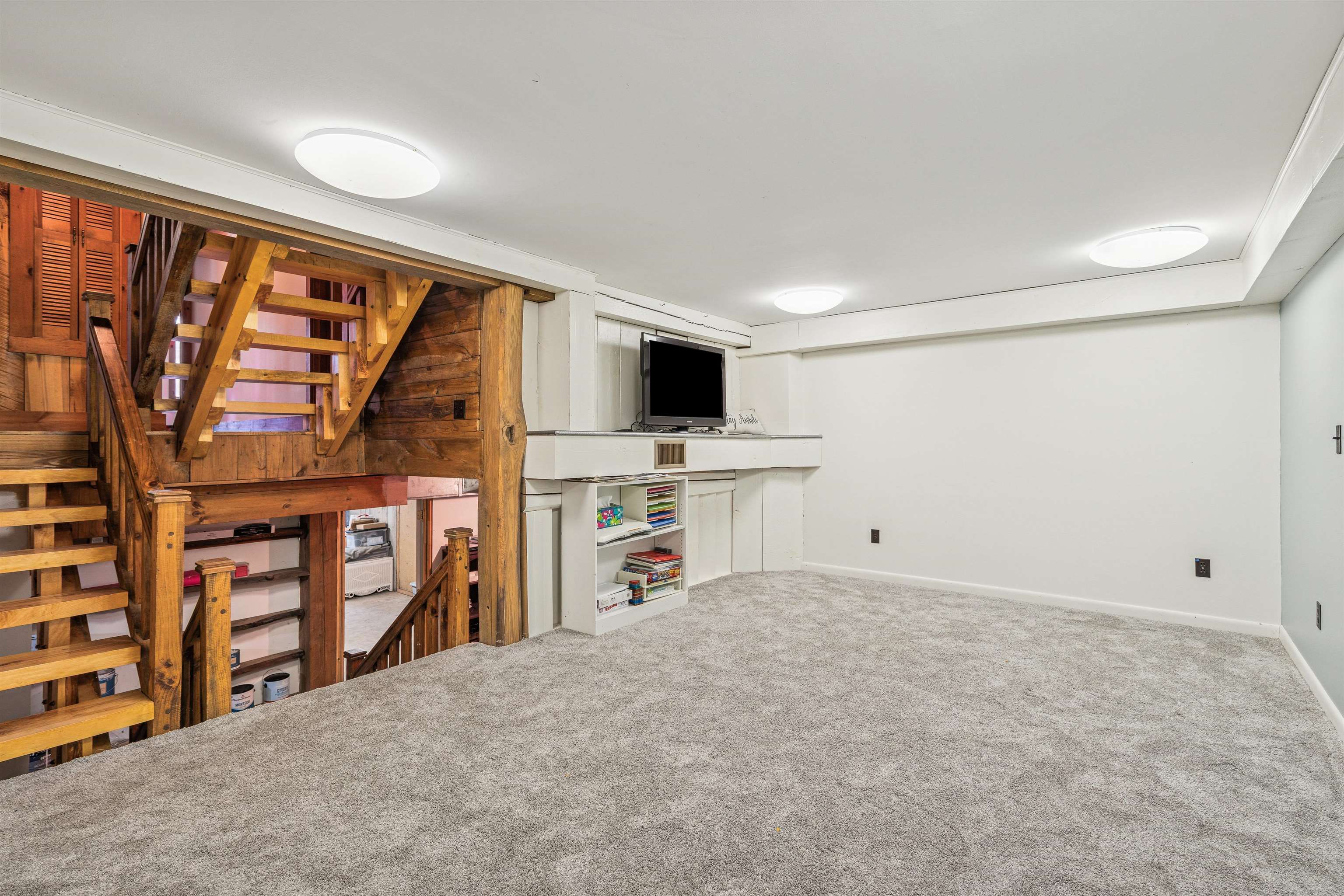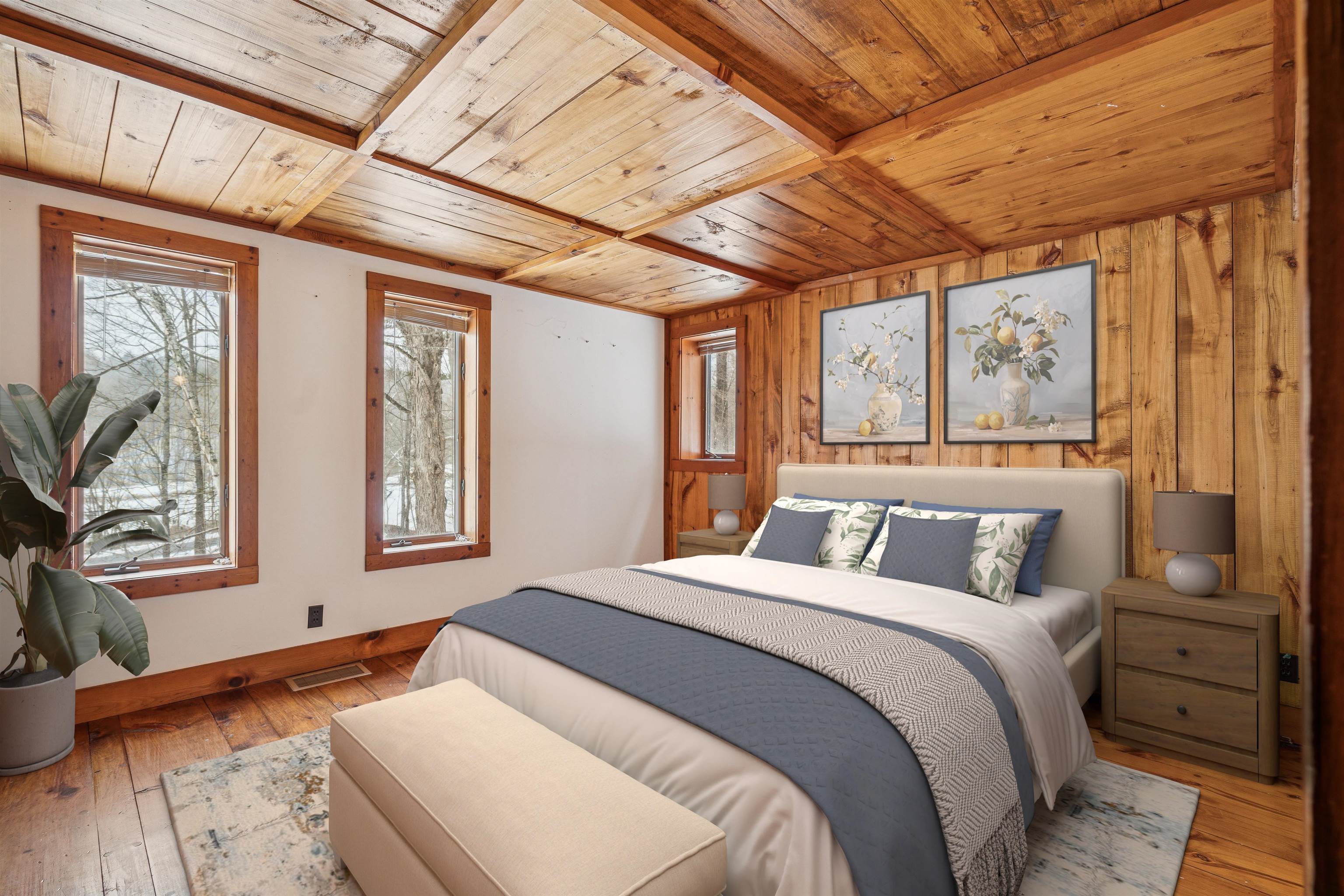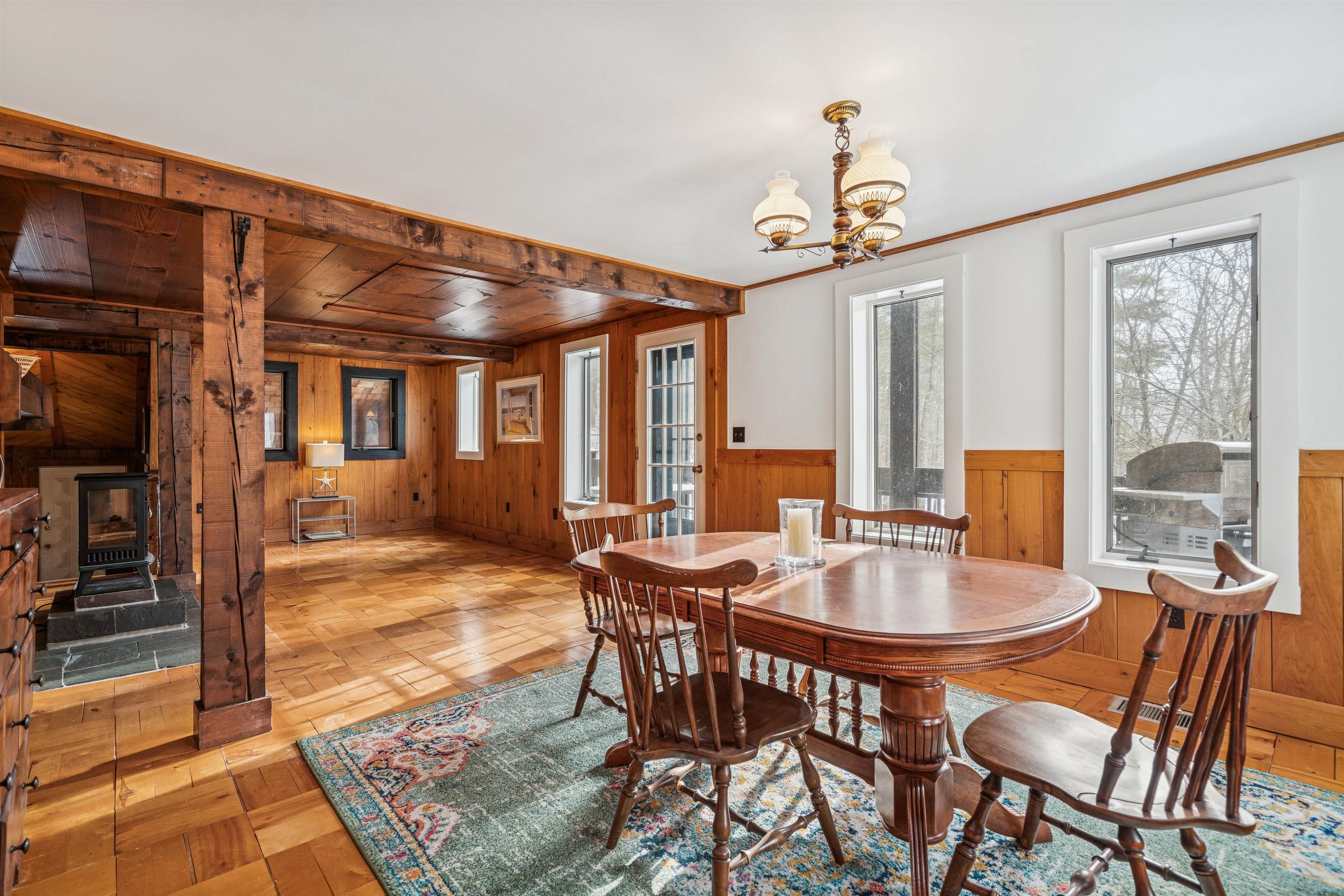 Inspired by the organic architecture of Frank Lloyd Wright, this contemporary gem sits on 14.2 surveyed wooded acres. It feels private yet is less than 10 minutes to Woodstock. The interior has a warm, open floor plan rich with wood character and natural light. Recent upgrades include renovated bathrooms, highlighted by a newly added third bath as an ensuite from the primary bedroom featuring a custom-tiled walk-in shower and oversized vanity. Easily accessible laundry, new carpet in the playroom, upgraded refrigerator dishwasher are just some of the upgrades. Extensive tree work was done to keep the forest healthy. Enjoy the sun-drenched solarium/greenhouse or relax on the side porch and look at the sunset. With a massive attic above the garage that could be potentially finished, and a full cement basement with storage rooms well suited to be a workshop the expansion possibilities are endless.