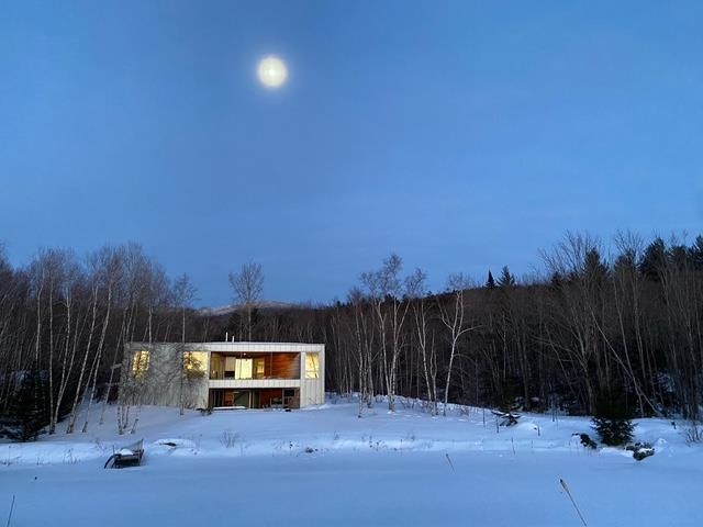 Experience modern mountain luxury at Burnt Mountain Getaway, a private retreat nestled on 14 acres of pristine Vermont land. This architect designed sanctuary offers panoramic mountain views, a freshwater pond with two docks, a wood fired, nordic style hot tub and outdoor shower—perfect for unwinding in nature. Enjoy exploring your own forest trails, then gather around the fire pit for s’mores or relax on the covered deck by the outdoor fireplace. Inside, indulgent comforts await: heated polished concrete floors, an open-concept living area with a chef’s kitchen, a custom wood-burning fireplace and a cozy wood stove that anchor the space in warmth and style. Floor-to-ceiling, luxurious Alumilex windows flood the home with natural light, capturing breathtaking sunset views across the pond and toward the Cold Hollow Mountain Range. The primary suite features a private dressing area and spa-inspired ensuite. The lower level includes a second living space with direct access to the deck, pond, and outdoor shower—complete with a cozy wood stove for après-ski comfort. Ideally located under 15 minutes from Jay Peak Resort—home to year-round adventures including skiing, skating, rock climbing, golf, and a water park—and within easy reach of Stowe (45 minutes), Burlington (1 hour), and Montreal (1 hour 45 minutes). Set in Montgomery Center, known for its covered bridges, charming shops and restaurants, and nearby trails for hiking, snowshoeing, and cross-country skiing (including the Catamount Trail, Long Trail, and Hazen’s Notch). Burnt Mountain Getaway is the ultimate escape for the outdoor enthusiast who refuses to compromise on luxury—a rare opportunity to own a truly private mountain retreat that blends modern design with timeless natural beauty.