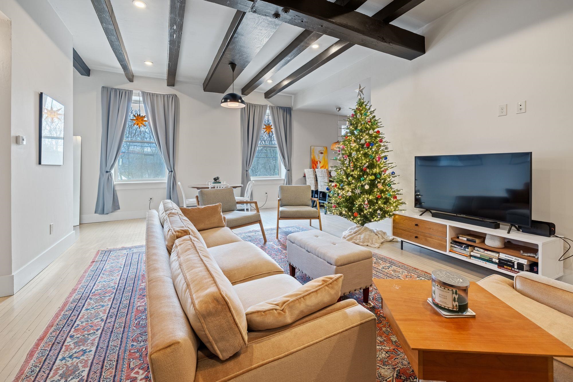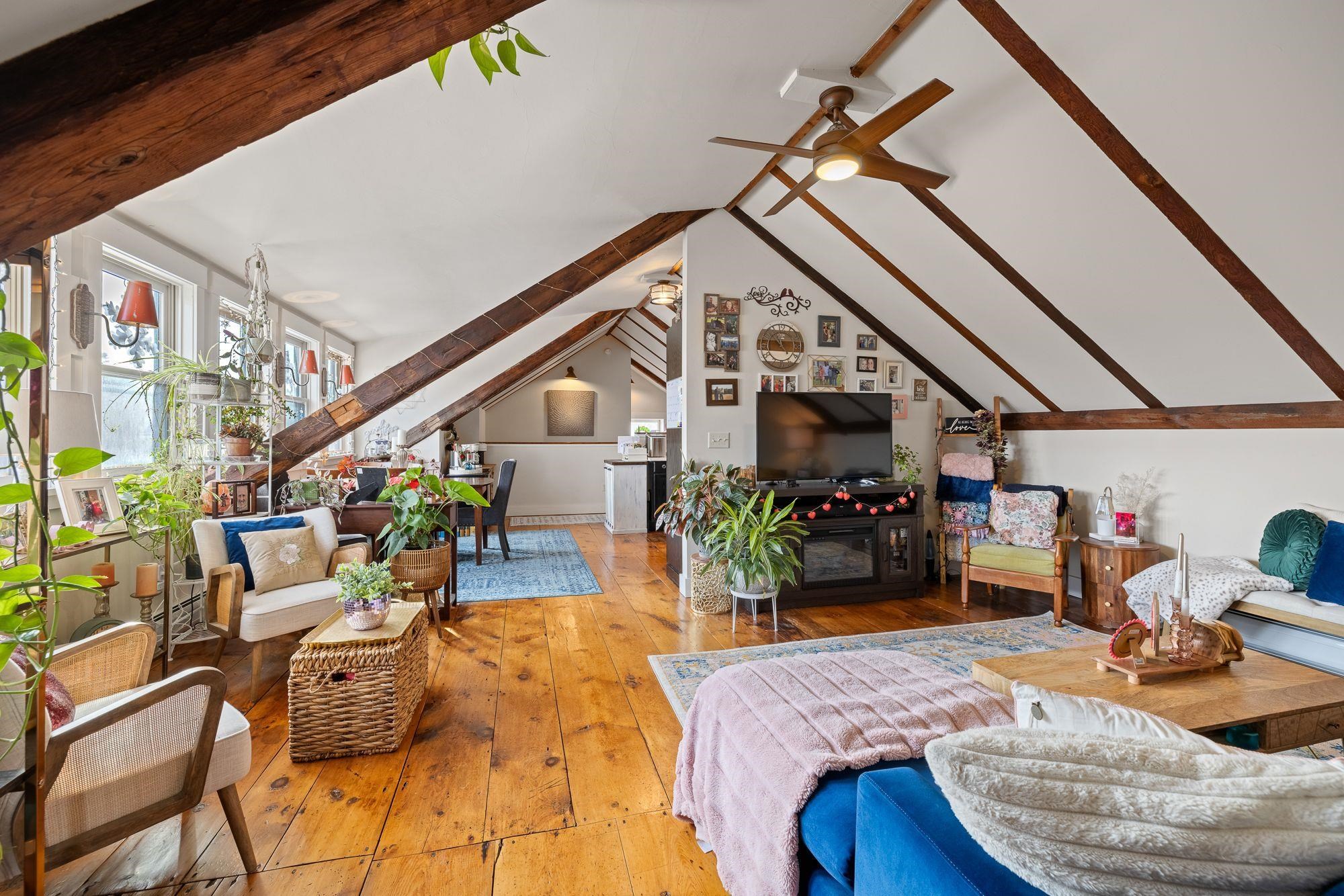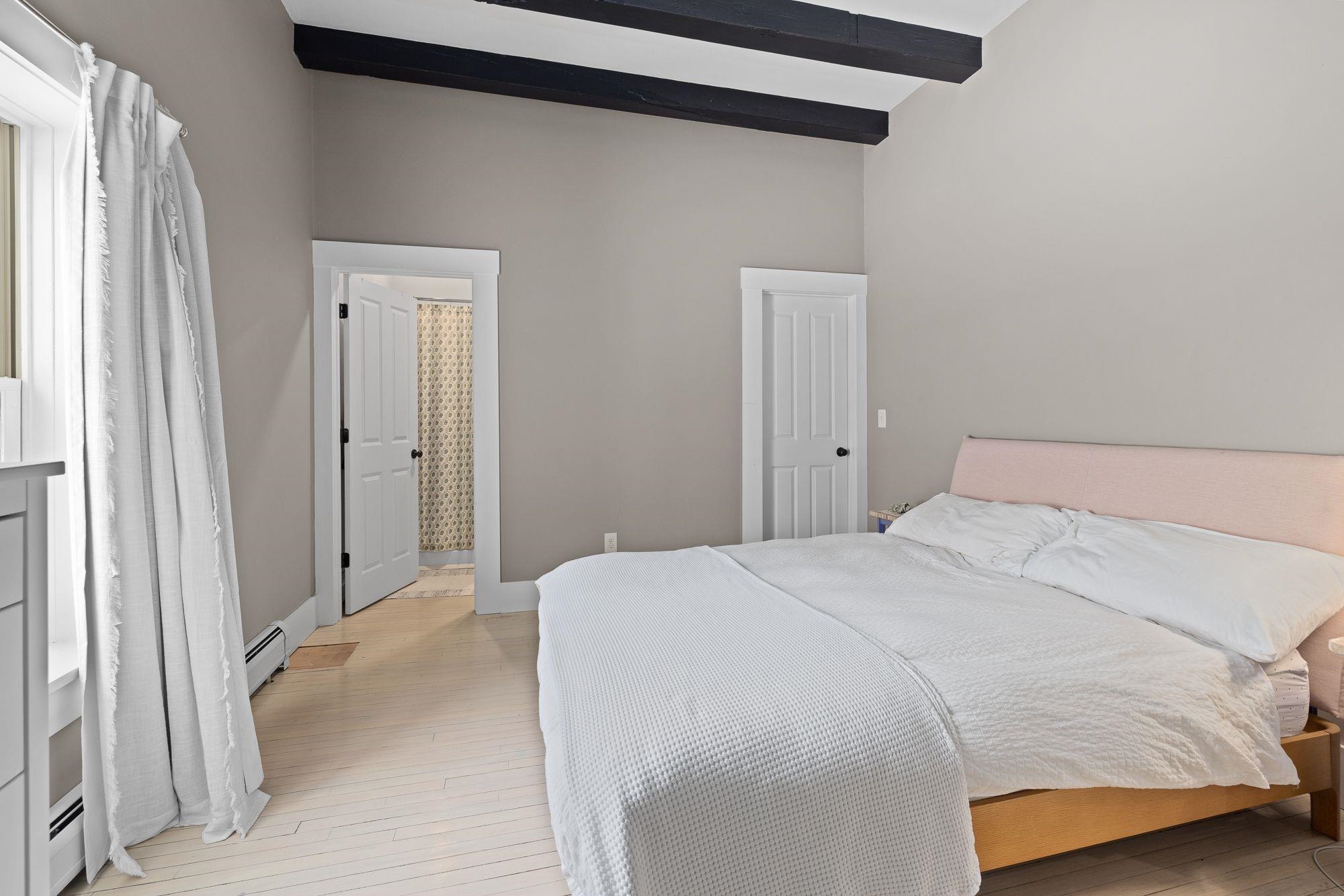 Beautifully renovated three-unit property in the heart of historic downtown Bradford, offering a rare blend of refined luxury, architectural character, and modern design. High ceilings, exposed beams, rich wood floors, and expansive open-concept living spaces create a sophisticated and cohesive aesthetic throughout the building. The main-level residence features ground-level entry, two bedrooms, and two beautifully appointed bathrooms. The second-floor residence offers two bedrooms, two bathrooms, a dedicated office area, a pantry, and picturesque mountain views. The top-floor apartment is truly exceptional, showcasing cathedral ceilings, a gracious mudroom entry, an airy open-concept layout, and scenic views of the Bradford waterfalls. Additional amenities include shared first-floor laundry, town water and sewer, ample parking, and over 4,600 square feet of total living space. Ideally located near village amenities, shopping, dining, golf, fishing, boating, and year-round outdoor recreation, with easy access to the AT bus route and I-91. An exceptional opportunity to own a fully renovated historic multi-unit property that delivers elegance, comfort, and enduring value in one of the Upper Valley’s most charming village settings.