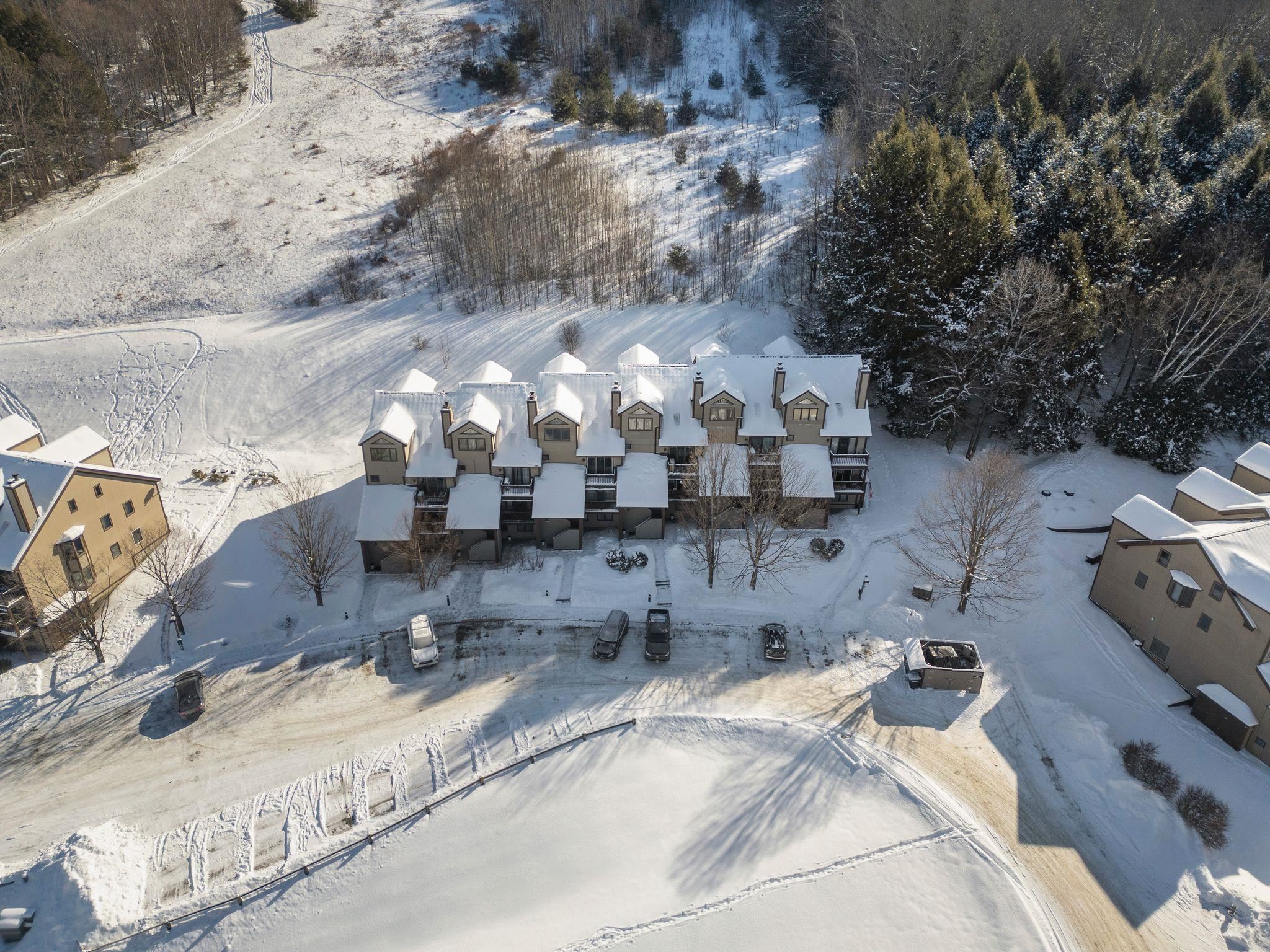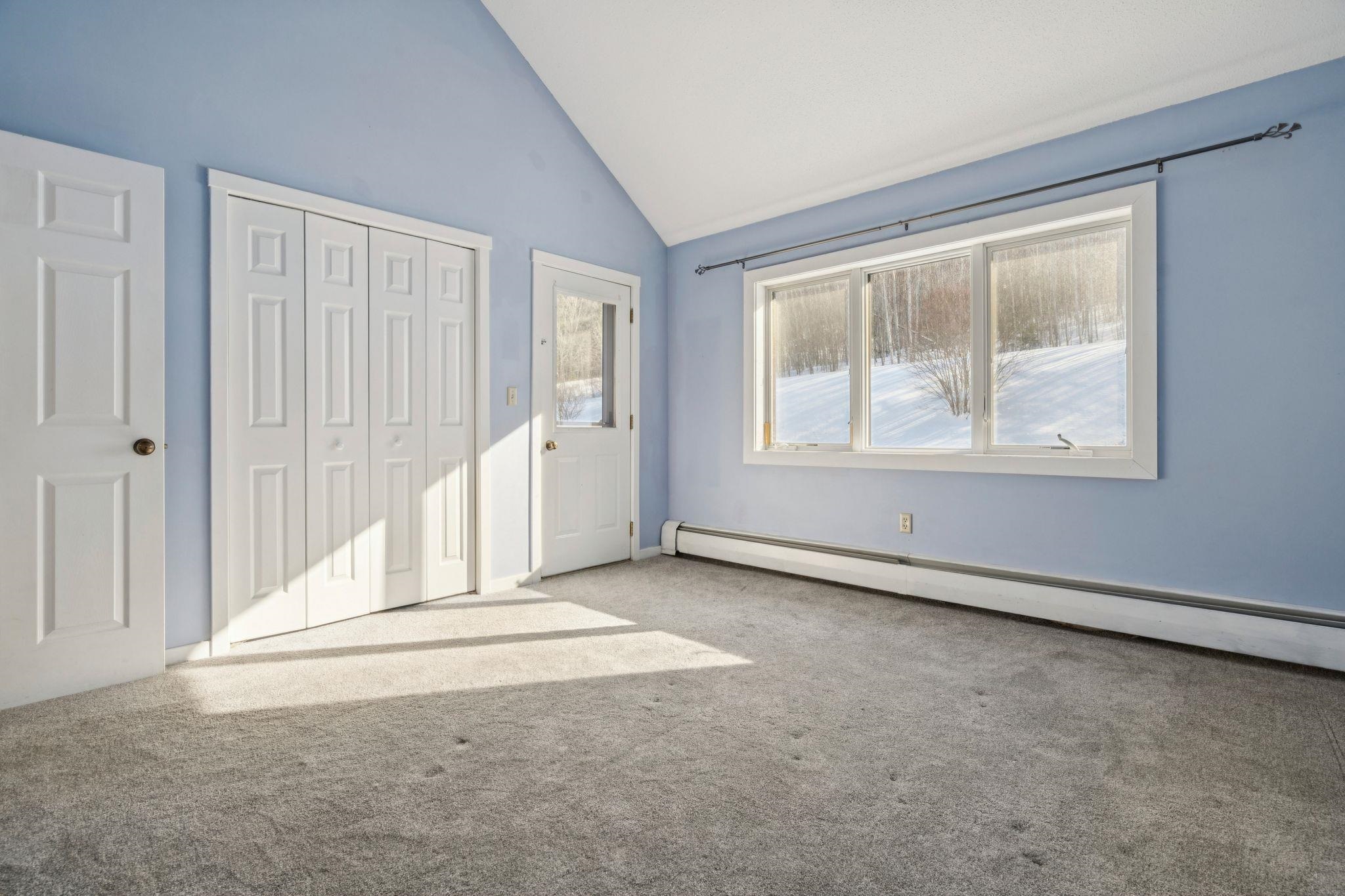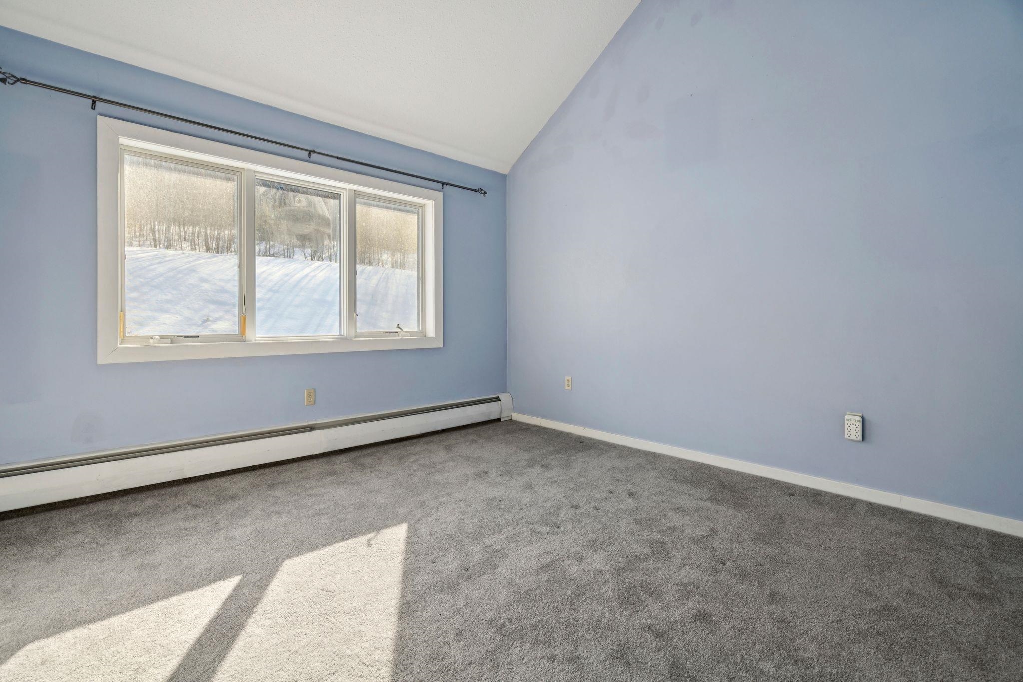 Stunning Mountain Retreat with Cathedral Ceilings & Trail Access Discover this beautiful condo at Mountains Edge—offering the best views, ultimate privacy, and unparalleled access to outdoor recreation. This residence captures sweeping views over West Windsor and the surrounding mountains. The private balcony off the living room and intimate patio off the master bedroom provide perfect vantage points to soak in the scenery. This home has airy cathedral ceilings. The open-concept living and dining area flows seamlessly, anchored by a cozy fireplace—ideal for après-ski relaxation. This well-designed unit offers a master bedroom suite with full bath and patio access, plus its own private entrance for added convenience. Step directly onto the Ascutney recreational trails from your back door, with the rope tow and T-bar just moments away. The complex abuts thousands of acres of protected State and Town forest land, offering endless opportunities for hiking, mountain biking, and exploration. Just 30 minutes to the Upper Valley and easily accessible from both I-91 and I-89, this location offers the perfect balance of mountain tranquility and accessibility. Whether you're seeking a weekend escape, year-round residence, or investment property, this exceptional condo delivers mountain living at its finest.