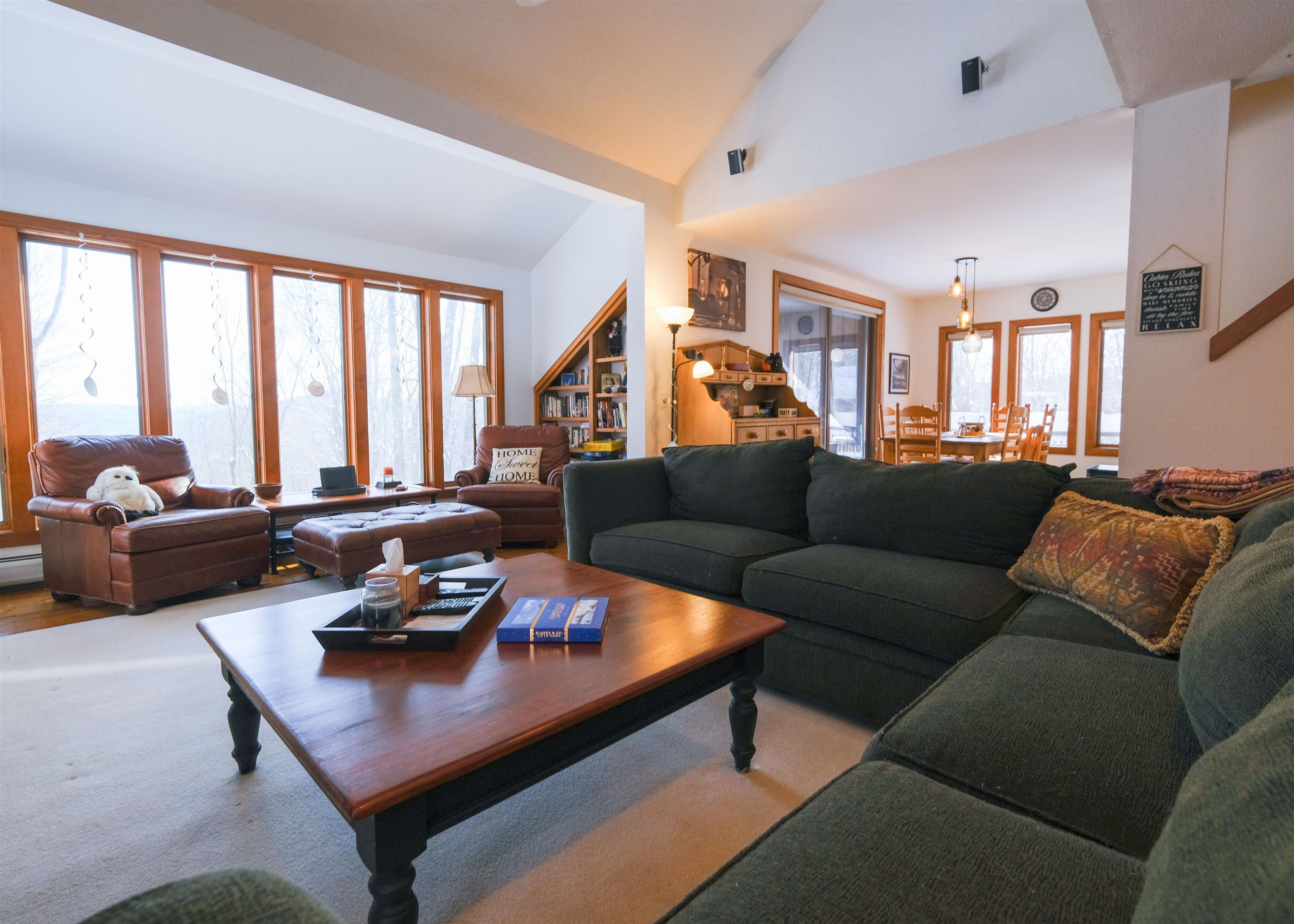 Experience the perfect blend of privacy and proximity in this stunning 4-bedroom, 4-bath home, nestled on 1.15 wooded acres with breathtaking views of the nearby Amherst and Echo lakes. Designed for both comfort and entertaining, this property boasts thoughtful separation of spaces to accommodate family and guests. The main level features an inviting living room with a stone fireplace, a cozy bunk room, and access to a covered deck—ideal for morning coffee or evening cocktails while soaking in the serene lake views. Retreat to the upstairs primary suite to unwind as you take in the picturesque surroundings. Also on the top level is another bedroom suite with a private bath. The lower level adds even more living space with a guest suite, playroom, and an additional deck for enjoying the tranquil landscape. After a day on the slopes of several nearby ski areas or links at nearby Fox Run Golf Course, recharge in your private sauna. This home offers stunning lake views from every floor, exceptional privacy, and convenient access to on-site hiking trails and year-round recreation. Schedule your showing today to explore this unique mountain retreat! Visit the Okemo real estate community today. Taxes are based on town assessment.