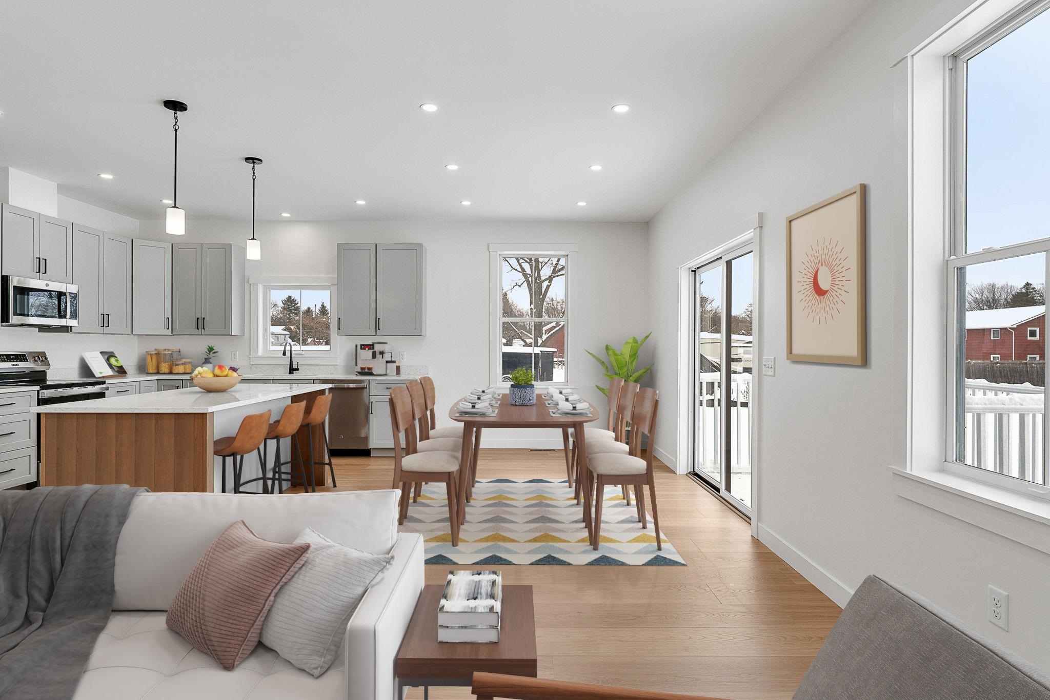 This isn't your run-of-the-mill builder grade condo. This ready for move-in townhome offers the perfect blend of comfort, space, and today’s must-have features. Situated in the highly desirable town of Colchester, you'll be just moments from the serene beauty of Lake Champlain and an array of outdoor activities, making this the ideal home for those seeking both an active lifestyle and convenience. Step inside and enjoy a spacious open floor plan where the kitchen, dining room, and living room flow seamlessly into one another—perfect for family gatherings or entertaining friends. Step out onto the deck overlooking the shared lawn and common area to enjoy your morning coffee or evening wind down. Upstairs, the primary suite provides a peaceful retreat, an attached study for work or personal time, and a luxurious bathroom. Two additional well-sized bedrooms offer ample space for family or guests, and the second-floor laundry adds a touch of ease. Throughout the home, you’ll find quality finishes and plenty of storage options, ensuring both beauty and practicality. Plus, the easy-to-finish basement provides endless possibilities for expanding your living space—whether you want a home gym, office, or a cozy family room. The oversized garage door is designed to accommodate larger automobiles, making it easy to store your vehicles and outdoor gear. This townhome is ready for you to call home.