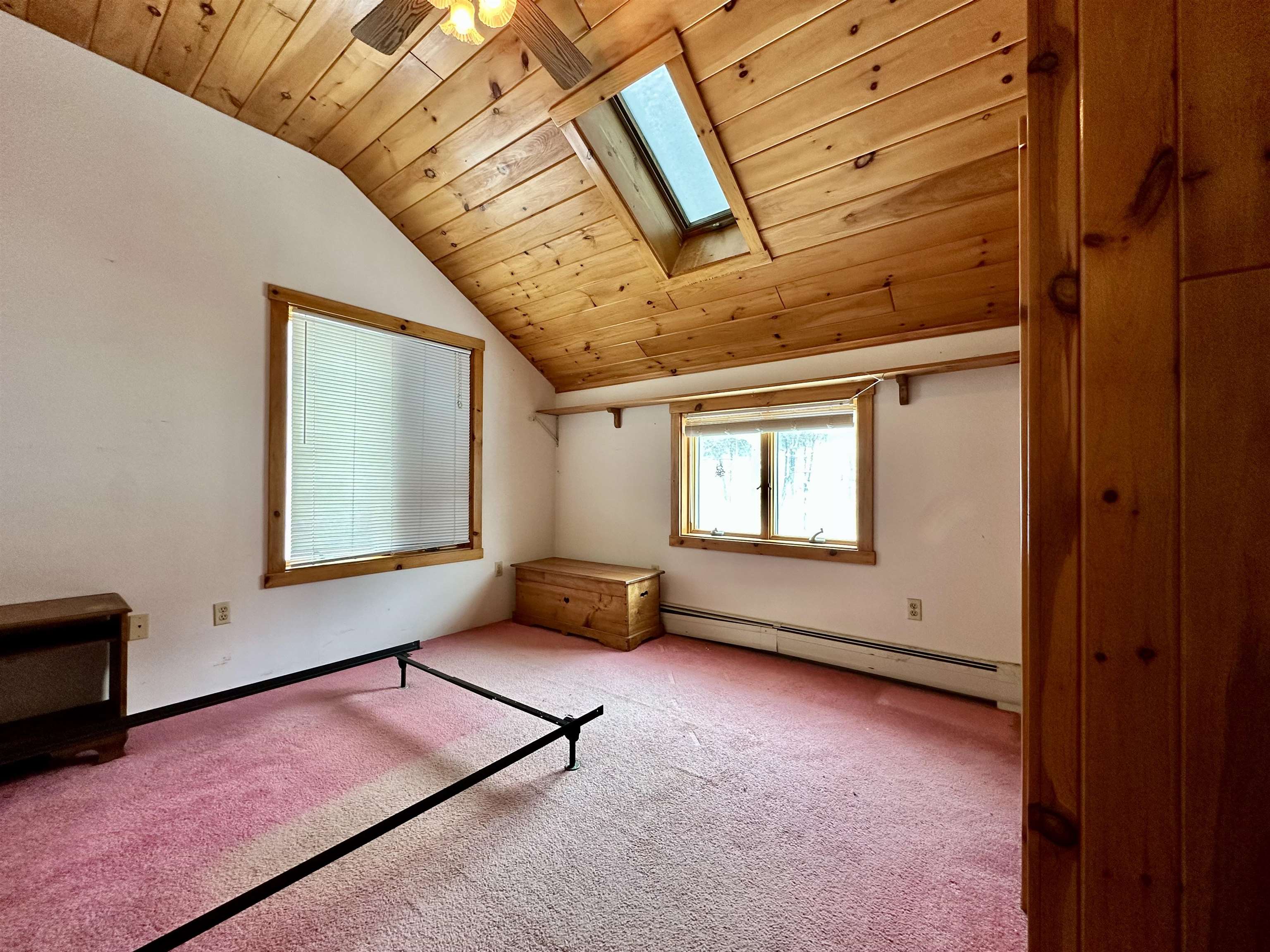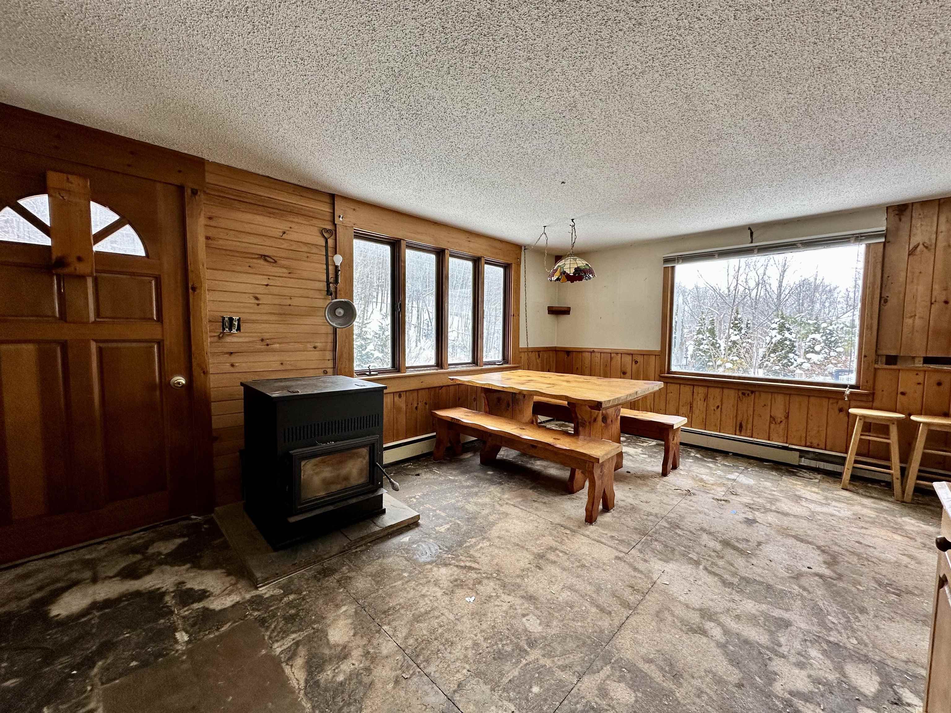 Set against a classic Vermont landscape, this 1, 584 sq. ft., 3-bedroom, 2-bath home offers a blend of rustic charm, functional space, and peaceful surroundings. The home features warm natural wood finishes throughout, creating a cozy, inviting atmosphere that reflects its New England character. The main living areas showcase exposed wood paneling, generous natural light, and an open, flowing layout, ideal for everyday living or entertaining. A spacious dining area easily accommodates gatherings, while the adjoining living space provides flexibility for relaxation or hosting. The home’s thoughtful layout offers multiple zones for living, dining, and recreation. Upstairs, vaulted ceilings with tongue-and-groove woodwork add architectural interest and warmth. Bedrooms are well-proportioned, with ample storage and natural light, while the two bathrooms provide convenience with one being located on each level. Outside, the property is framed by mature trees and open yard space, offering privacy and a peaceful setting year-round. A detached outbuilding adds versatility for storage, hobbies, or workshop use. Winter scenes highlight the home’s storybook appeal, while warmer months promise equally serene surroundings. Whether you’re seeking a primary residence, a Vermont getaway, an vacation rental investment or just a property with room to personalize, this home offers solid space, character, and opportunity in a quiet rural setting. Welcome home!