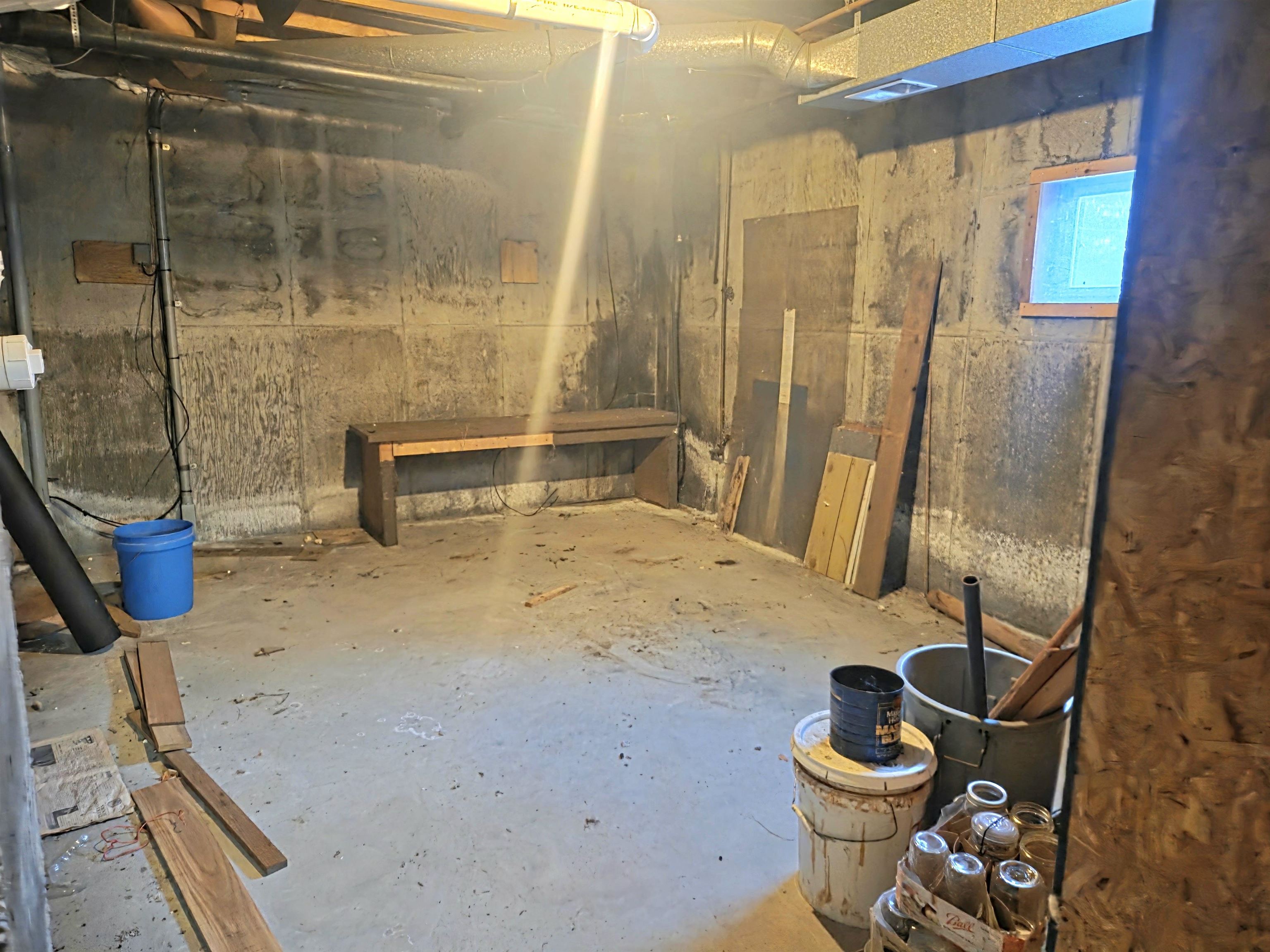 - Concrete, Concrete Floor, Full, Interior Stairs, Storage Space, Walkout, Interior Access, Exterior Access, Basement Stairs