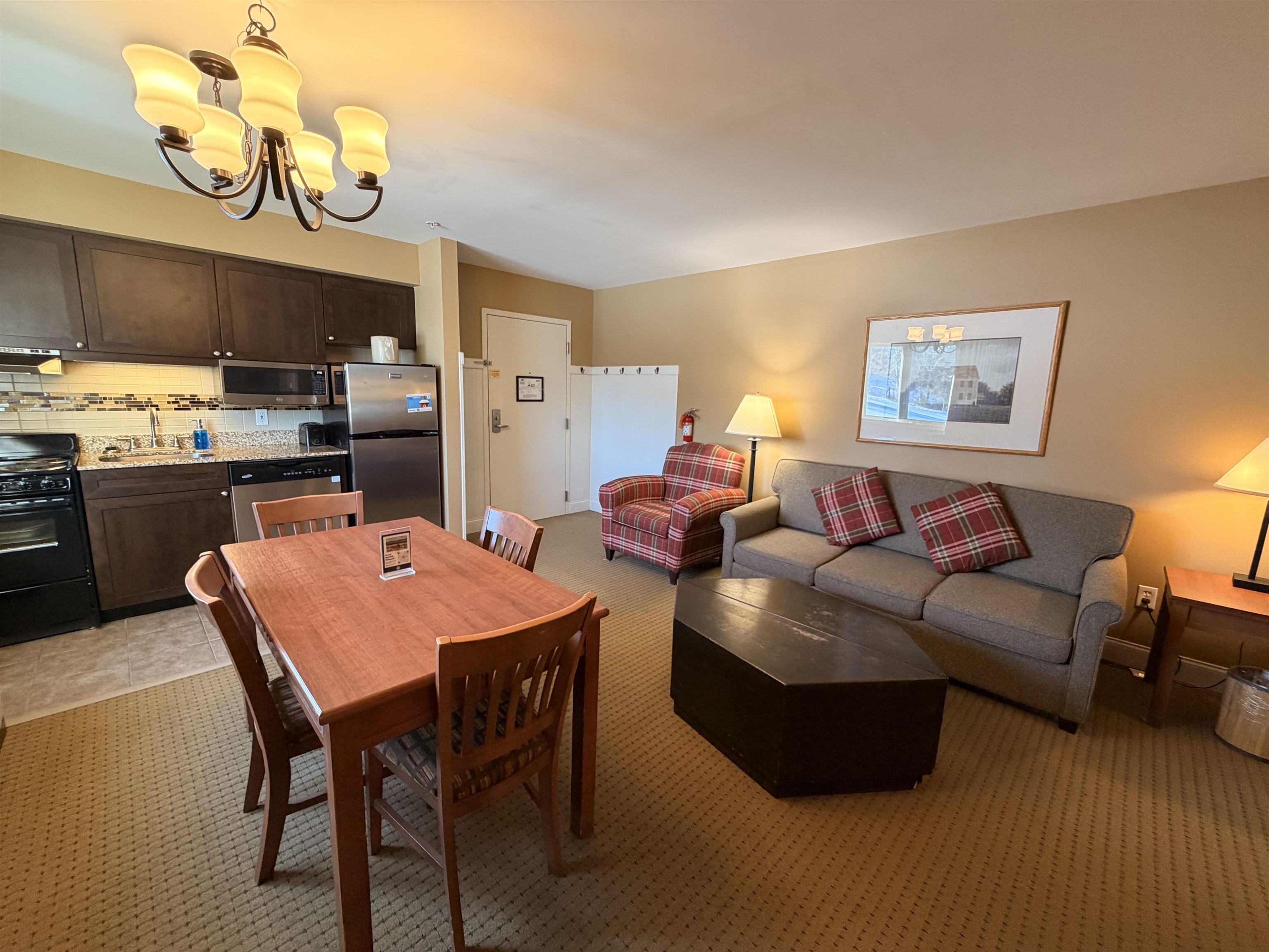 Trailside! Use it, Rent it, Trade it! Does 13 weeks of vacation a year sound nice? Own this deeded quartershare property for 1 week every 28 days, on a rotating basis. This 1-of-a-kind, end-unit, slopeside 1-bedroom, 1 full bath unit has sleeping space for 4, and looks out over the Sundance Base Lodge and the Sundance Express, the new 6-person chairlift. Open-concept kitchen/dining room, and a living room with a queen sleeper sofa. There is a king-sized bed and a deck in the private bedroom. Benefits of Grand Summit ownership include the best ski-in/out mountain location available at Mount Snow. Use of the Grand Summit amenities all year-round, including valet parking, owner's private lounge, library, and deck, full-service gym with sauna, steam room, outdoor hot tubs and heated pool, private owners-only locker rooms for year-round storage of your ski or golf equipment. A favorite owners' perk is "Space A" which gives you the possibility of staying in the hotel even when it's not your ownership time at a discounted rate...just pay housekeeping fees! RCI and Interval International affiliated.