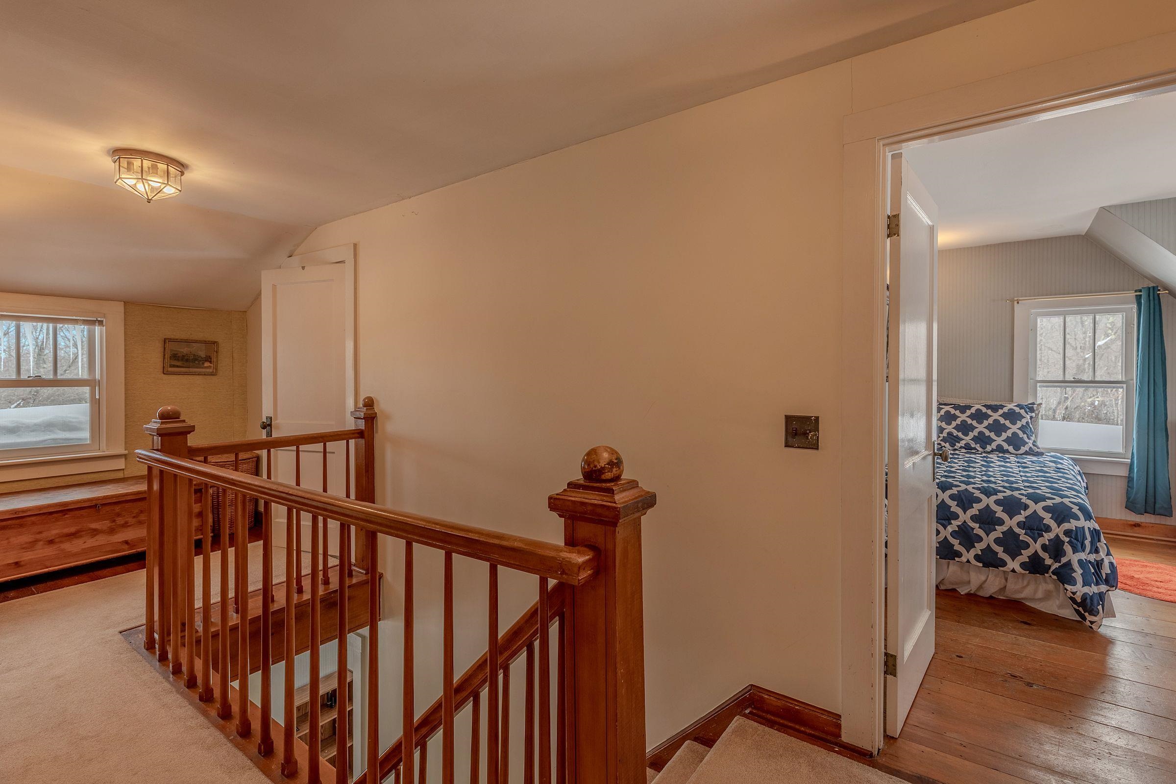 Classic Vermont farmhouse set on over 18 private acres with Bromley Mountain views, offering timeless character, privacy, and mountain views. This four-bedroom, two-bath home features a striking stone fireplace anchoring the main living space, along with a dedicated library and office—ideal for reading, work, or creative pursuits. Outdoor living shines with a spacious patio and stone firepit, perfect for s’mores, gatherings, and crisp Vermont evenings. The property includes a two-car attached garage and two detached barns, offering flexibility for storage, hobbies, or agricultural use. Rolling open land and wooded acreage create a peaceful, pastoral setting with room to explore. Ideally located just 3 miles from Bromley Mountain and 5 miles to the Stratton Access Road, this farmhouse delivers convenient access to skiing, hiking, and four-season recreation while maintaining the charm and serenity of a true Vermont retreat. The home also features a hot tub, generator, and is being sold furnished for a turnkey experience.
