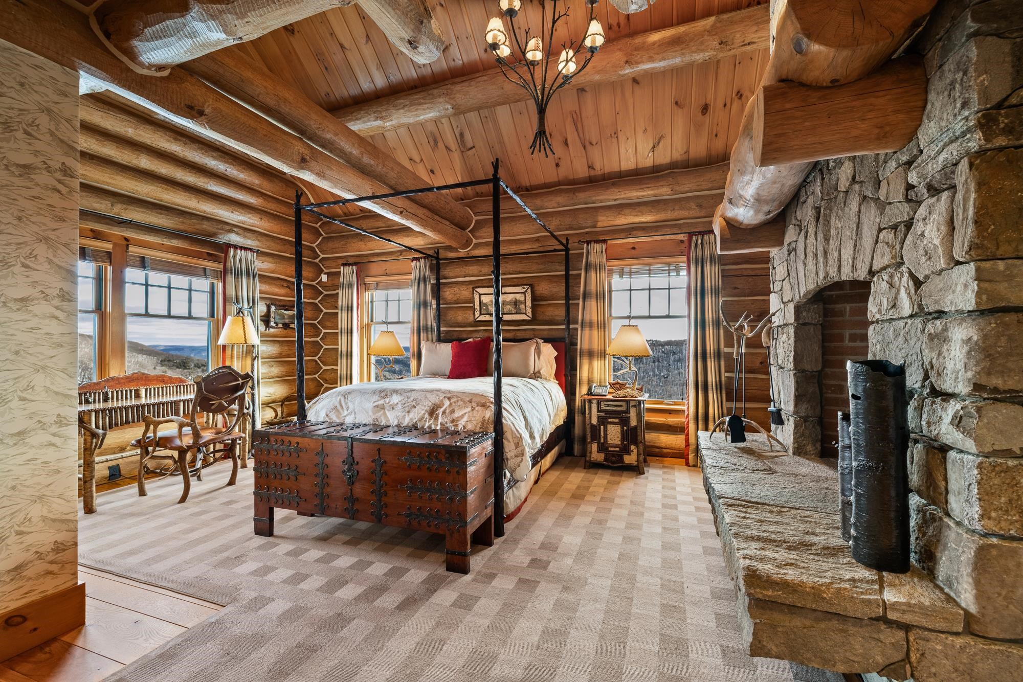 - Bar, Cathedral Ceiling, Cedar Closet, Wood Fireplace, 3+ Fireplaces, Kitchen Island, Primary BR w/ BA, Natural Woodwork, Security, Soaking Tub, Indoor Storage, Vaulted Ceiling, Walk-in Closet, Wet Bar, Whirlpool Tub