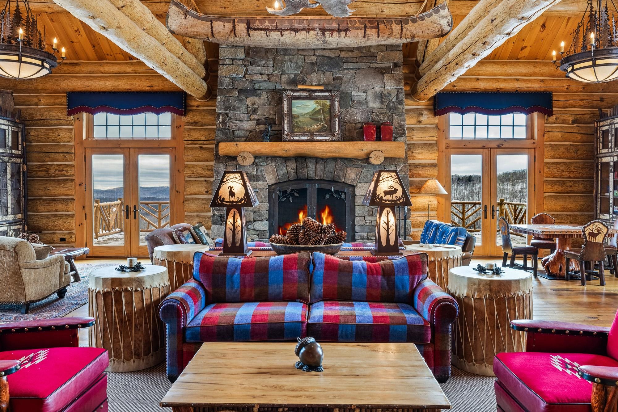 SHOWINGS SHALL BEGIN AT FEBRUARY 12TH OPEN HOUSEPremier 416 acre Vermont Mountain Sanctuary -Luxury Estate with sweeping mountain views-a rare expression of outdoor and mountain living where nature inspired artistry, master craftsmanship and the environment converge in quiet harmony.. Set within an expansive private landscape, the 10, 000+SF residence unfolds as a sanctuary oasis designed to elevate everyday living, remaining deeply rooted in its surroundings while still just a short drive to Stratton Mountain Resort and the Stratton Helipad. Step into an open-concept haven where elegance meets comfort. Framed by soaring timber beam ceilings, the main living area echoes the grandeur of the mountains while preserving the warmth and intimacy of a true retreat. Natural materials, handcrafted details, and thoughtful design choices create a home that feels warm, timeless and deeply personal. The estate preserves uninterrupted views across the landscape—ensuring that natural beauty remains the focal point from every vantage point.The grand stone fireplace anchors the living area, drawing the eye to soaring ceilings and expansive windows that frame breathtaking mountain ridges. Sunlight floods the space, highlighting the harmonious blend of natural textures and refined finishes.The gourmet kitchen blends beauty and function with custom wood cabinetry, hand-carved artistic accents, a welcoming breakfast bar, and an expansive island designed for conversation, connection, and effortless entertaining. Every space in this residence has been intentionally designed with a keen eye to detail. While every room blends effortlessly with the home’s elevated rustic feel, each one remains extremely unique. Offering six en-suite bedroom in the main residence and 2 bedroom2.5 bath guest quarters. Main Residence with extraordinary gathering rooms and multiple suites, 5 bay barn, guest quarters, pond, miles of maintained trails for mountain biking and winter activities,
