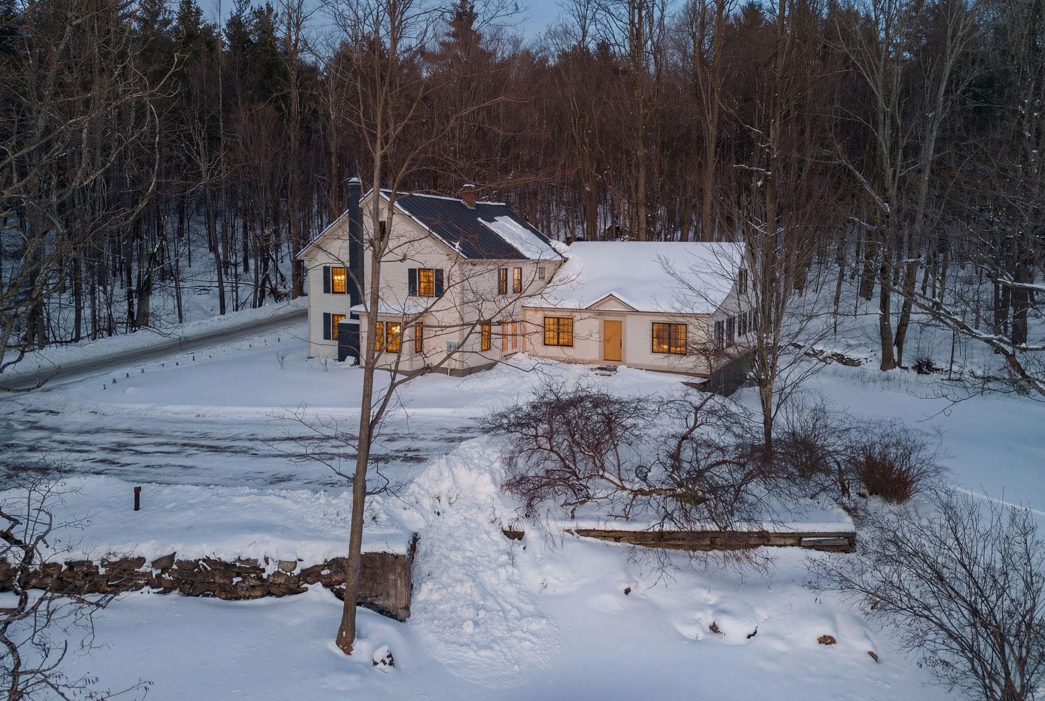 Snowlight Farm spans 137 acres along the western slopes of the Green Mountains, with sweeping views across the Green Mountains to the Taconic Range. The offering includes a 2, 692 square foot Federal-style farmhouse, built in 1812, with four bedrooms and 1.5 baths, complemented by a circa-1850 repurposed barn with 2, 065 square feet of living space including four bedrooms and 3.25 baths. The early 19th-century main house has the kind of proportion and presence that only time can give, elegant, grounded, and deeply Vermont, while benefiting from extensive renovations completed in 2025. Original doors, period hardware, and wide-plank pine floors remain throughout. The kitchen features slate countertops, a six-burner BlueStar gas range with dual ovens, a Sub-Zero four-drawer refrigerator, and a Galley farm sink. The mid-19th-century barn was thoughtfully reimagined into two residences: a three-bedroom residence on the upper levels and a one-bedroom residence below, each with a full kitchen and private entrance--ideal for extended family or guests. A cold, clear spring provides water for both homes. Two branches of a brook wind through the land. Approximately 27 acres of open meadow, currently in active agriculture, along with managed woodland, are enrolled in Current Use and protected by a conservation easement held by the Vermont Land Trust. This is a property that invites stewardship, whether for farming, conservation, recreation, or simply living well. Within Shrewsbury, enjoy access to the Long Trail and the 1, 850-acre Plymsbury Wildlife Management Area, with miles of trails for walking and cross-country skiing. Killington and Okemo are close by, and Rutland Regional Airport is less than five miles away.