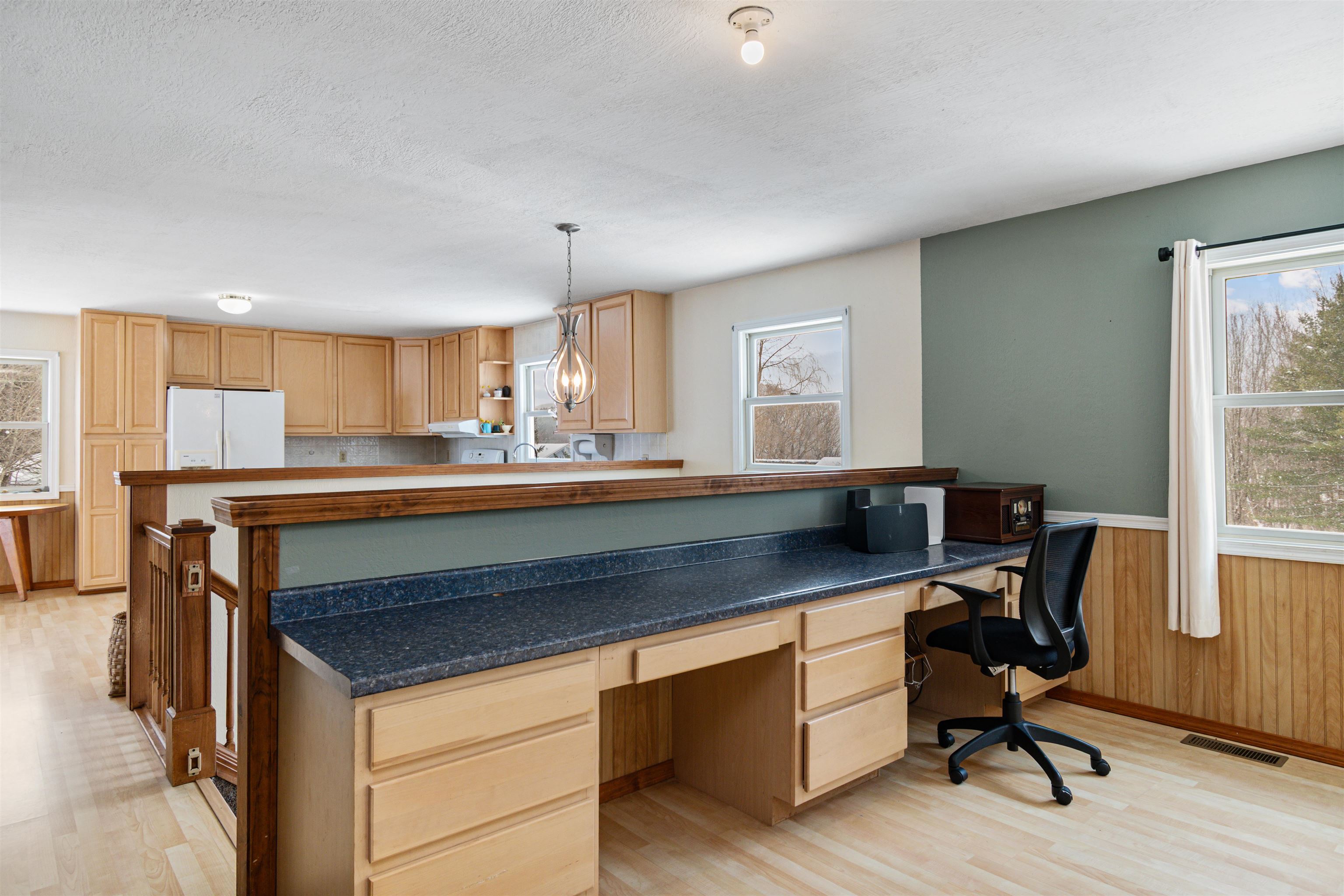 Tucked into a peaceful pocket of Johnson, this home invites you to slow down and settle into a setting shaped by trees, fresh air, and a quiet sense of privacy. Arrive to a wooded backdrop and step inside to a bright interior that feels welcoming and calm, even on overcast days. The heart of the home centers on an open living area that connects naturally with the dining and kitchen spaces. The layout feels comfortable and intuitive, creating a place that works just as well for everyday living as it does for relaxed gatherings. Natural light carries through the main level, reinforcing a warm and easygoing atmosphere. A four-season room anchored by a woodstove offers a cozy retreat that can be enjoyed year-round. This space invites slow mornings, quiet evenings, and time spent taking in the surrounding landscape as the seasons change. Electric hookups in place for a hot tub offer another way to enjoy the setting in every season. The home is arranged to provide flexibility, including a lower-level bedroom that can easily serve as additional living space, a home office, workout area, or creative studio depending on individual needs. This adaptability allows the home to grow and change with its next owner. Outside, the acreage offers room to explore and unwind, with wooded surroundings seasonal mountain views that bring a sense of connection to nature. Underground utilities help maintain a clean, uncluttered feel, allowing the landscape to remain the focal point. The location is convenient to nearby village and downtown centers including Cambridge, Jeffersonville, and Hyde Park, along with close access to four-season recreation such as Smugglers' Notch and the Long Trail trailhead. Thoughtful care and ongoing maintenance throughout the home create a sense of confidence and comfort, allowing the next owner to focus on enjoying the lifestyle and setting that make Johnson such a special place to call home. Schedule a showing to experience it in person.