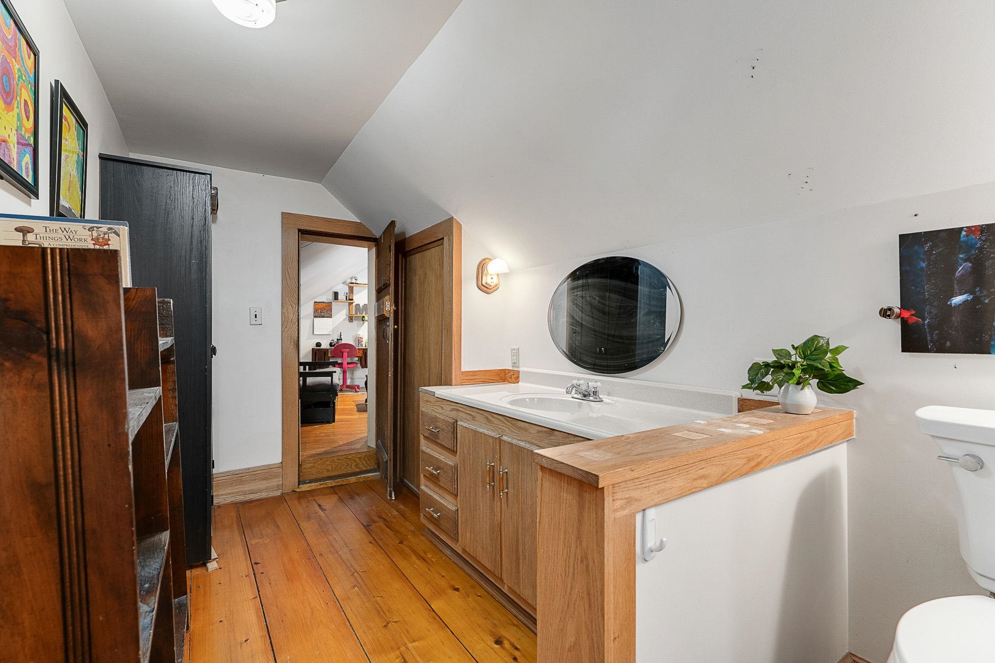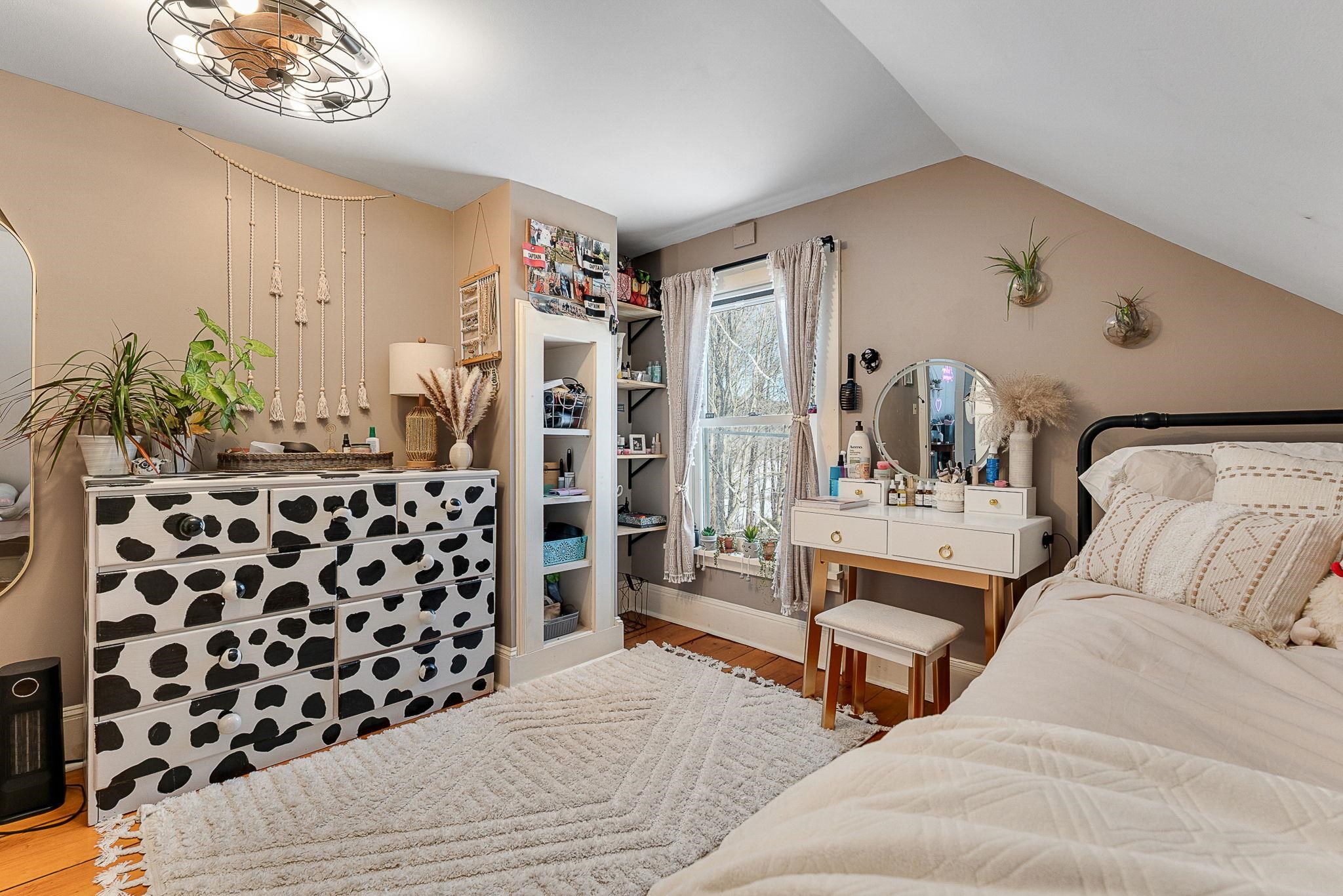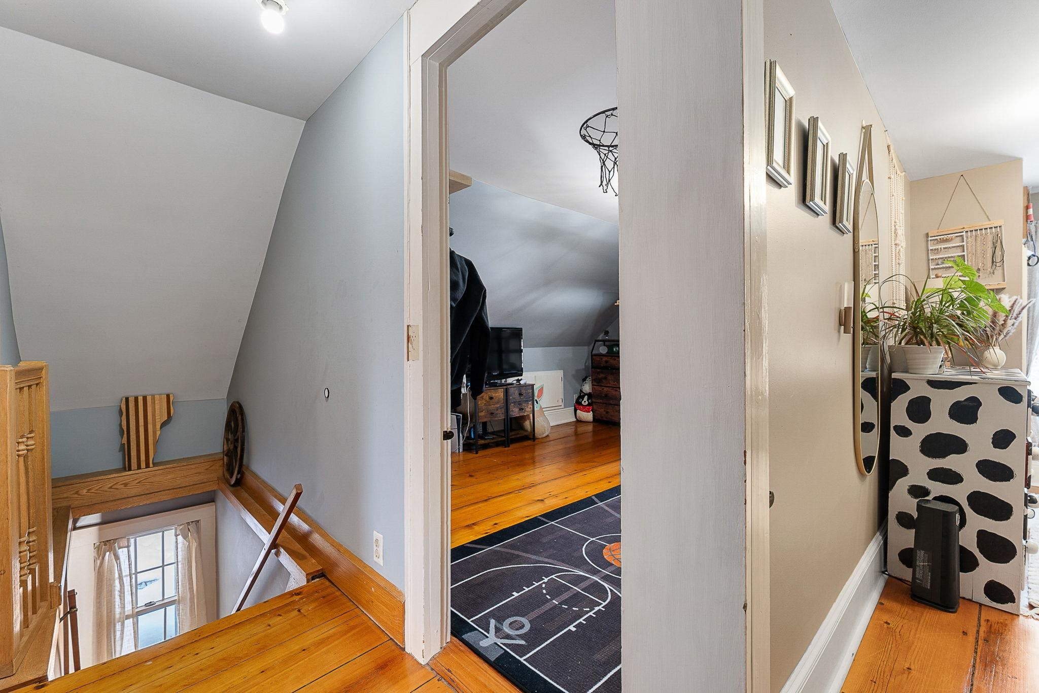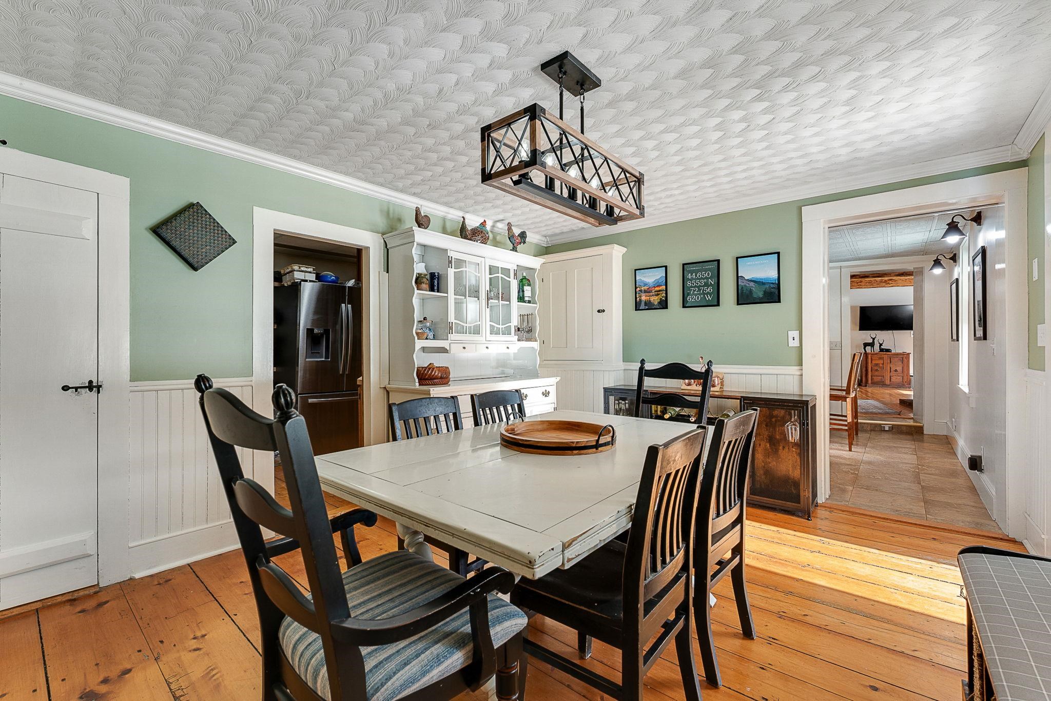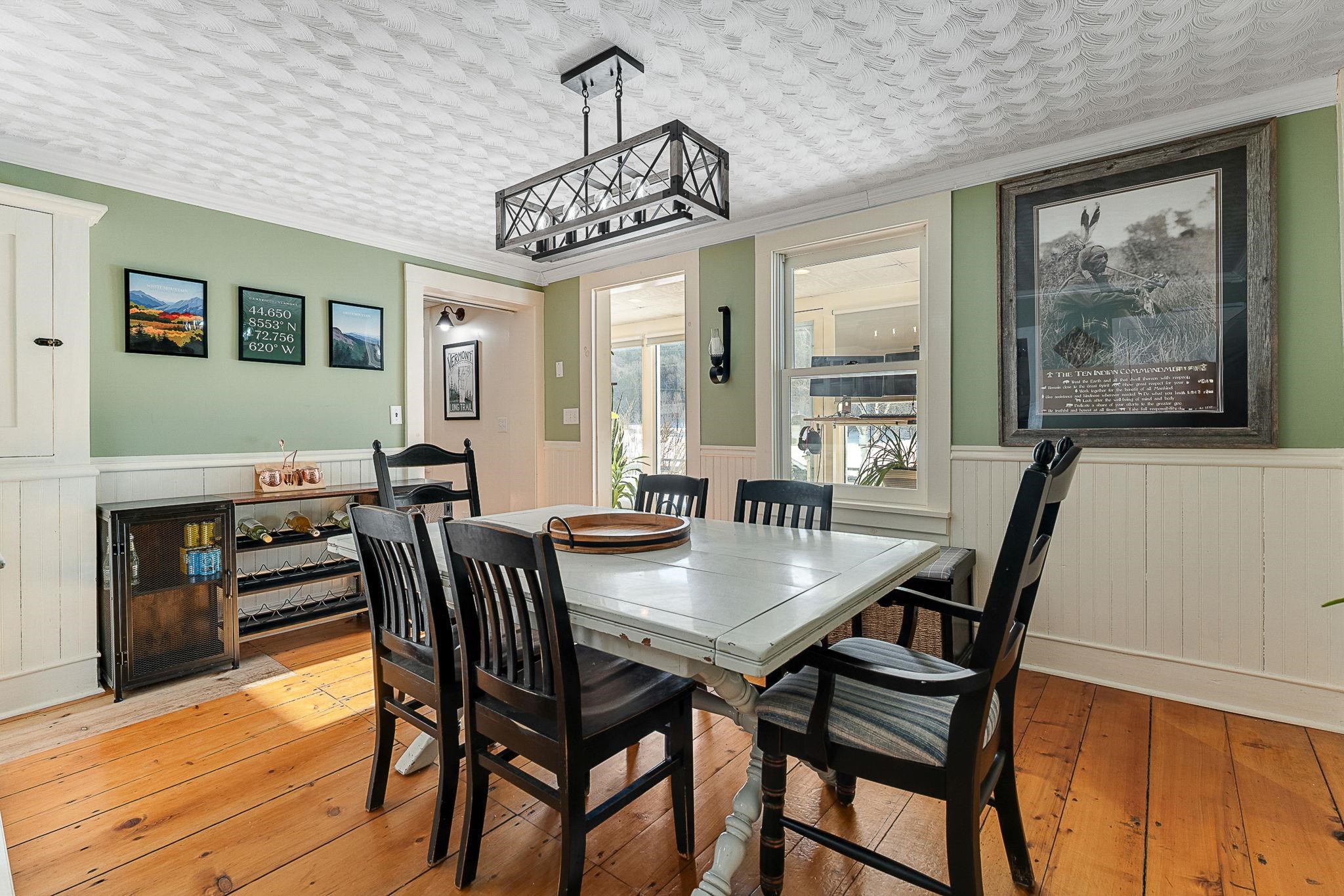 Timeless charm meets country comfort in this classic Cape-style farmhouse set on just under 4.5 acres with southern exposure and sweeping mountain views. This home features wide-plank wood floors, exposed beams, and sun-filled living spaces throughout. The main level offers exceptional flexibility with a first-floor primary bedroom, home office, dining room, sunroom, and a cozy living room anchored by a wood stove. The updated kitchen includes open shelving and generous workspace, while the attached garage leads to a convenient mudroom with laundry and ¾ bath. Owners have done a lot of work to the electrical and plumbing since they have owned it, making it truly move it ready. Upstairs are three additional rooms, a half bath, and bonus space for storage or future expansion. Outside, enjoy a true Vermont retreat with mature trees surrounding the property, established gardens, a chicken coop, fire pit, and a new swim-up pool with deck. Located near the Lamoille River and Rail Trail, with easy access to skiing, hiking, and the villages of Jeffersonville and Johnson—plus a reasonable commute to Burlington. Sellers are motivated—don’t miss this special property.