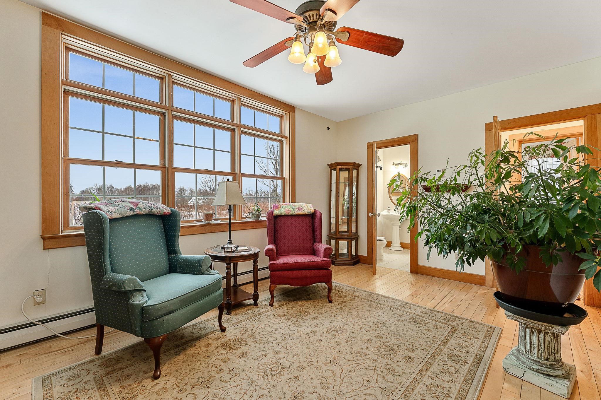 Well-maintained and thoughtfully updated 4, 000 sq ft classic VT farmhouse situated on over 7 acres with mountain views and open land. This property offers the ideal balance of country living with convenient access to nearby amenities. The spacious gourmet kitchen features a large center island, Wolf cooktop, and soapstone wood stove, creating an excellent space for cooking and entertaining. The light soaked four-season sunroom with pellet stove provides additional year-round living space. Beautiful hardwood floors are throughout the home featuring original wide plank oak, birch and cherry with inlaid designs. Relax in the huge primary suite that features a jetted tub. The third-floor craft room offers flexible space for hobbies, office use, or additional living area. Additional improvements to the property include an oversized detached 2+ car garage with electricity and upstairs storage. The barn has tons of storage and is equipped with an industrial kitchen including a commercial pizza oven. You will be warm and toasty with the Rinnai heater. Located less than 10 minutes to St. Albans and I-89, makes for a convenient commute to the Burlington area while still enjoying a private, rural setting. A rare opportunity to own a versatile Vermont property with space, functionality, and accessibility.