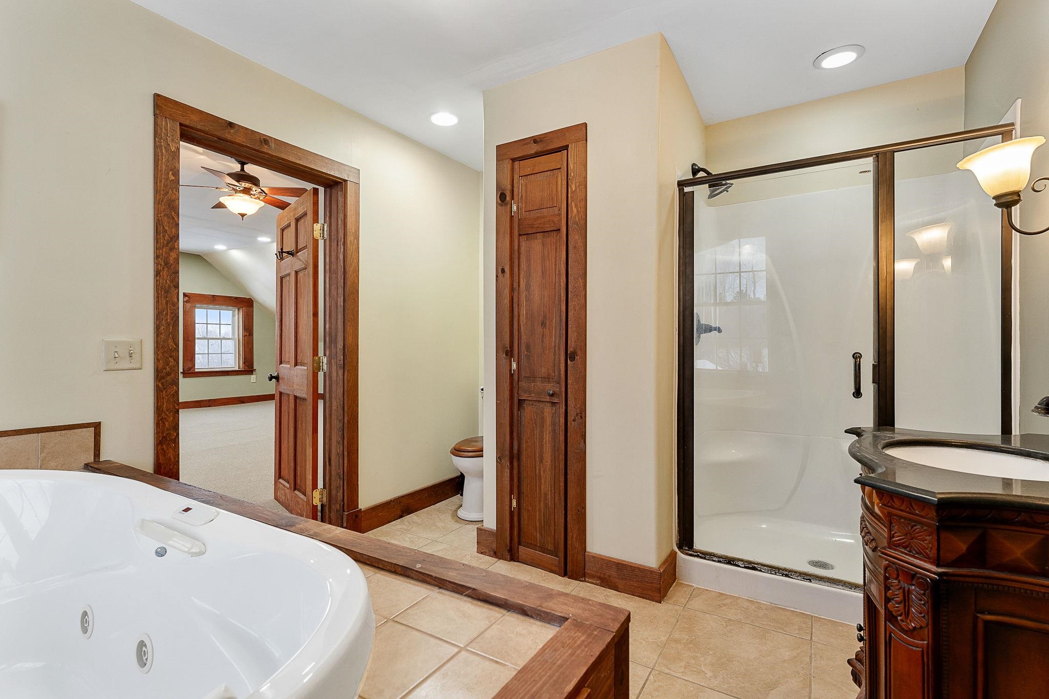 - Cathedral Ceiling, Ceiling Fan, Hearth, Kitchen Island, Primary BR w/ BA, Natural Light, Natural Woodwork, Whirlpool Tub, Walkup Attic
