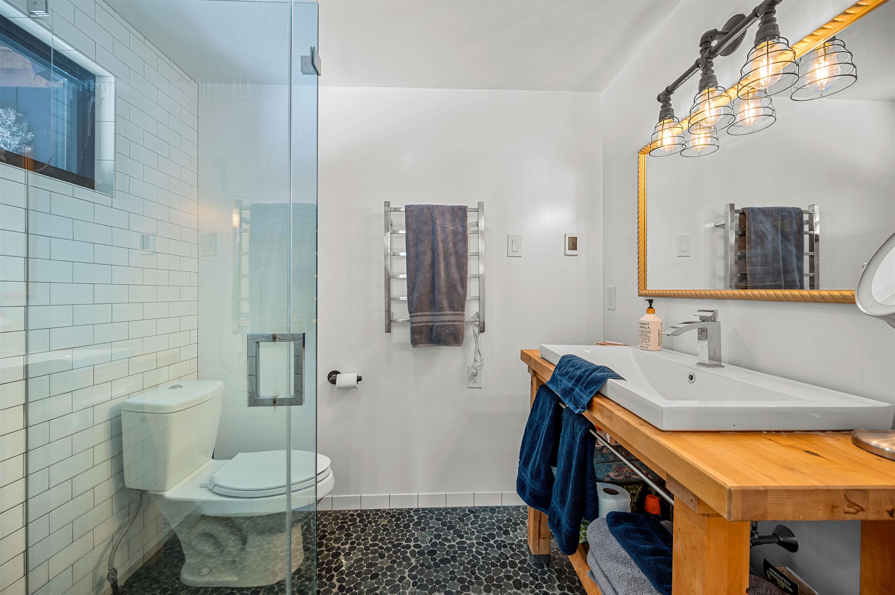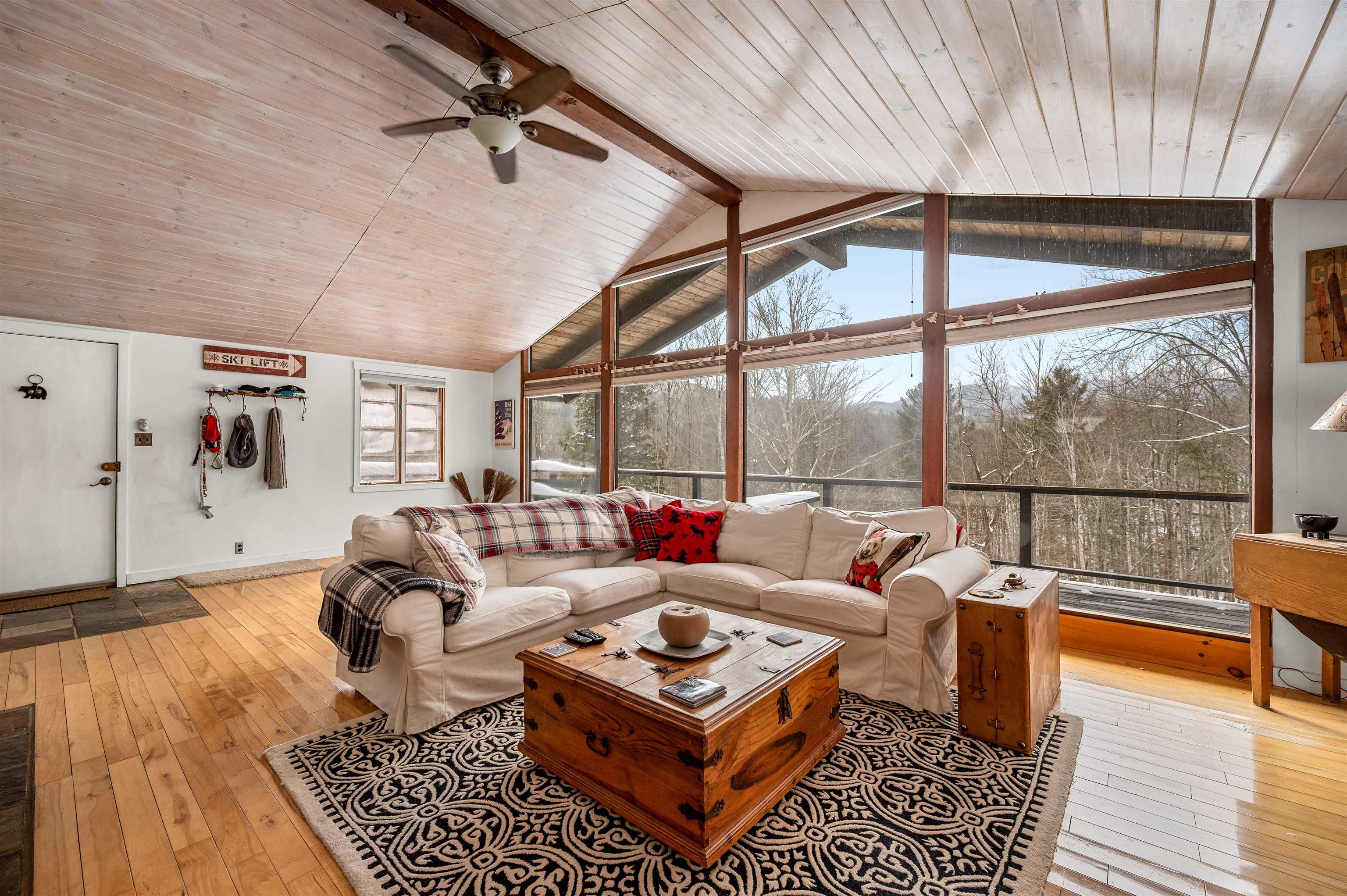 This classic 4 BR mountain-town ski chalet is perched on a hillside with views of all three Valley Ski Areas, minutes from world class skiing at Sugarbush and Mad River Glen, a stones throw from town, a hop and a skip from the Green Mountain Valley School, The MRV's Elite ski racing academy. Lovingly renovated, this 60's style ski home maintains the classic charm of a bygone era, while featuring all the conveniences required of an upscale vacation home. Hardwood floors. Modern chef's kitchen. Mini-split heat pumps throughout the home handle the heating and cooling, powered by a grid-feed solar array that produces enough juice to cover the entire electric bill. With duel Tesla Powerwall backup power, you'll never be in the dark, or come home from a day on the slopes to a cold house. Lightning fast Fiber Internet makes remote "work" a breeze. Spacious barn to house all your toys. 3 bedrooms and 2 bathrooms on the main floor, in addition to a giant first floor rec room that could serve almost any purpose; from a game room, to an in-law suite to a rental unit (with proper permitting, or course), this house has everything you need and a few extras you just dream about. Whether you've been dreaming of a ski house in the mountains of Central Vermont or a permanent departure from the big city grind, make the Mad River Valley your year-round landing spot for all-mountain adventure during the winter, spring, summer and fall. Stop scrolling the real estate listings and start living the life you dream of, right here at home in the Mad River Valley.