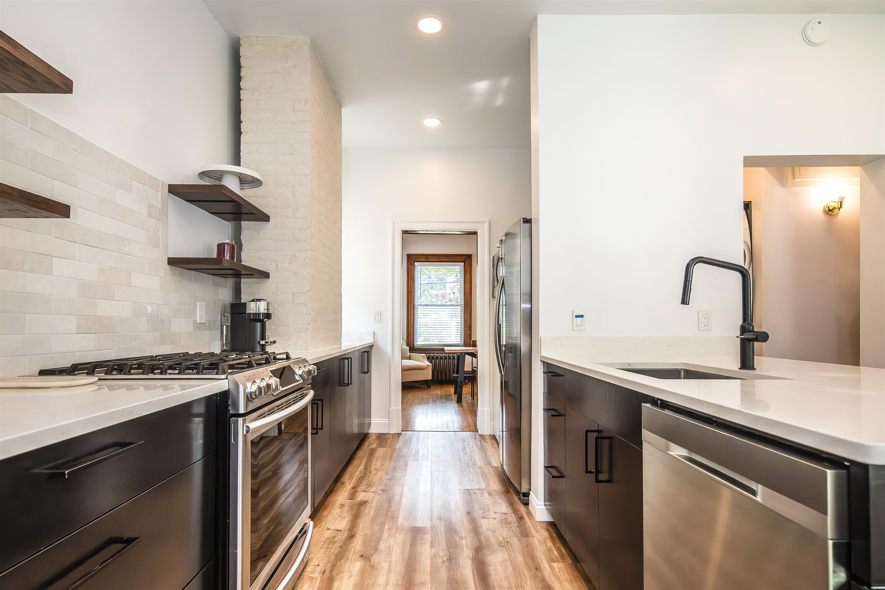 - Gas Cooktop, Dishwasher, Disposal, Range Hood, Refrigerator