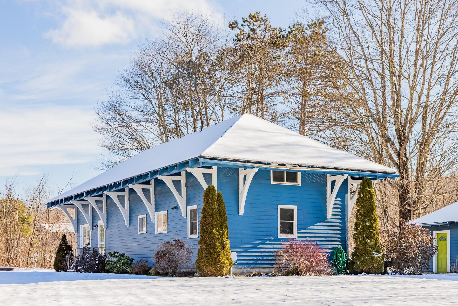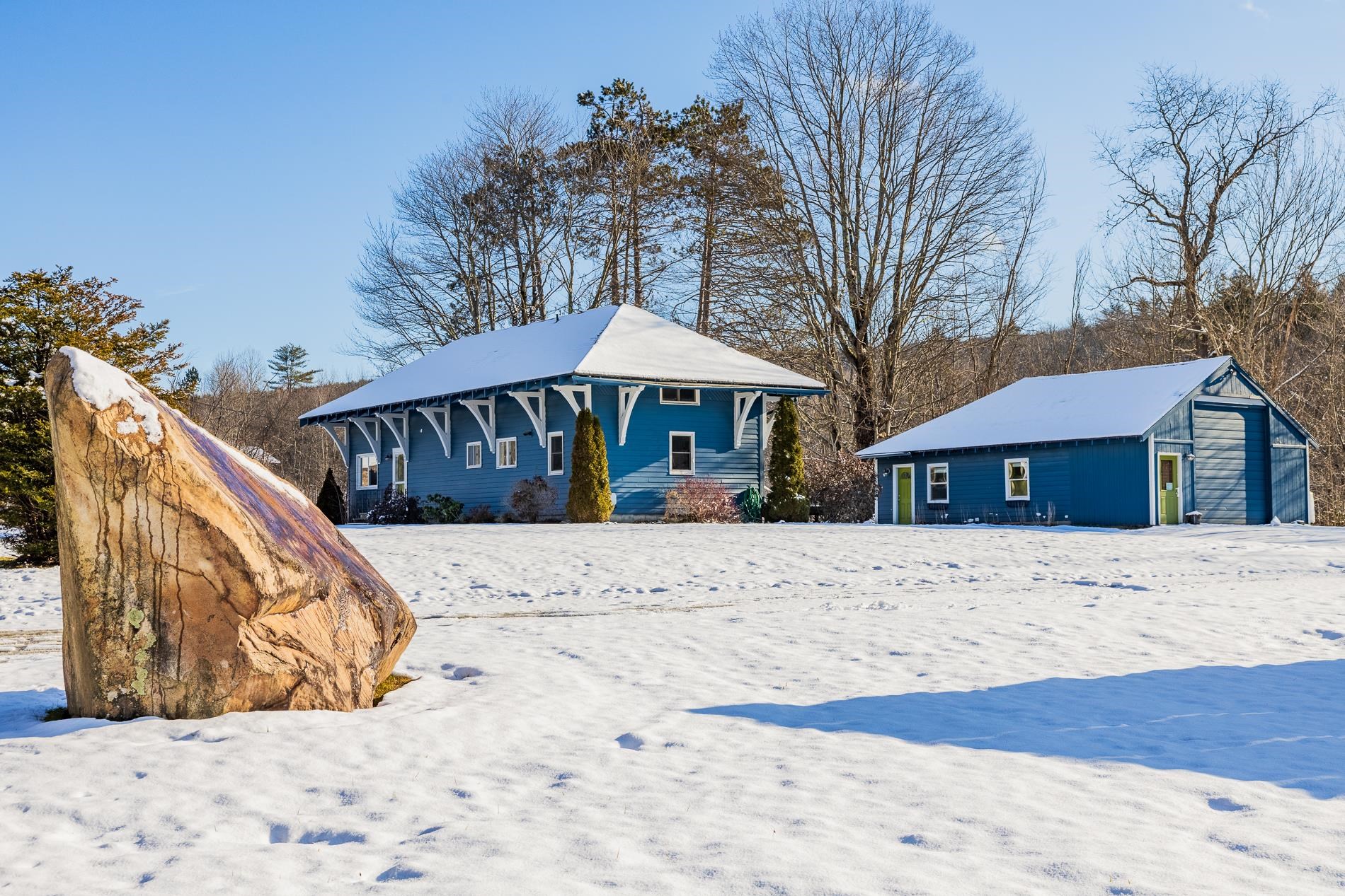 Historic Train Stationhouse! Unique design and character in a prime ski location on 4 acres with a private pond. This efficient historic gem was relocated to the current more convenient location with added acreage and a commercial outbuilding. The owned solar power offers low cost of living and years of energy benefits for new owners. This property features 2 bedrooms & 2 baths with beautiful cathedral ceilings with wood details. The updated kitchen offers stainless steel appliances and butcher block countertops, while the open dining and living make entertaining a breeze. The first-floor bedroom features an oversized closet and nice natural light. While the first-floor full bath has been updated with classic white tile. Ascending the beautiful wooden staircase the second floor offers a versatile family room, which could serve as a guest space or office. The additional large bedroom and updated bath on this level contribute to the home's open and spacious feel, providing comfort and privacy. The heated commercial building offers a commercial kitchen wash area, a half bath and an attached garage storage area. Don't miss the babbling Millbrook River. So many possibilities await. Only 7 miles to Rutland Airport, Winter Sports enthusiasts: 10 minutes to Okemo, 30 minutes to Killington, 45 minutes to Stratton. In the Summer just a 15-minute drive to Echo Lake and all the fun of Ludlow or Rutland. Don't wait this historic gem is amazing! Call today.