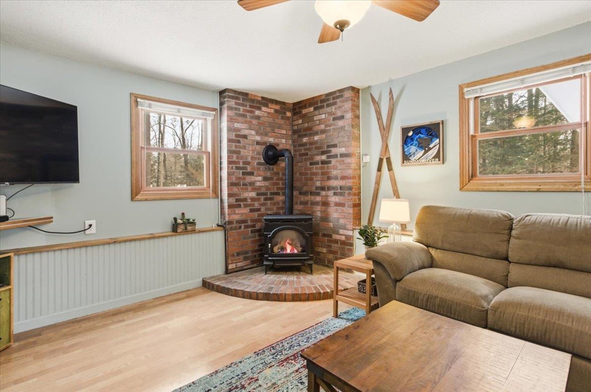 - Ceiling Fan, Gas Fireplace, 1 Fireplace, Kitchen/Dining, Primary BR w/ BA, Natural Light, Indoor Storage