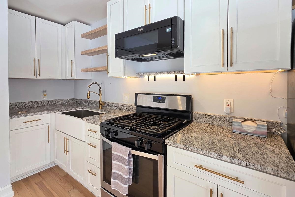 - Microwave, Gas Range, Refrigerator