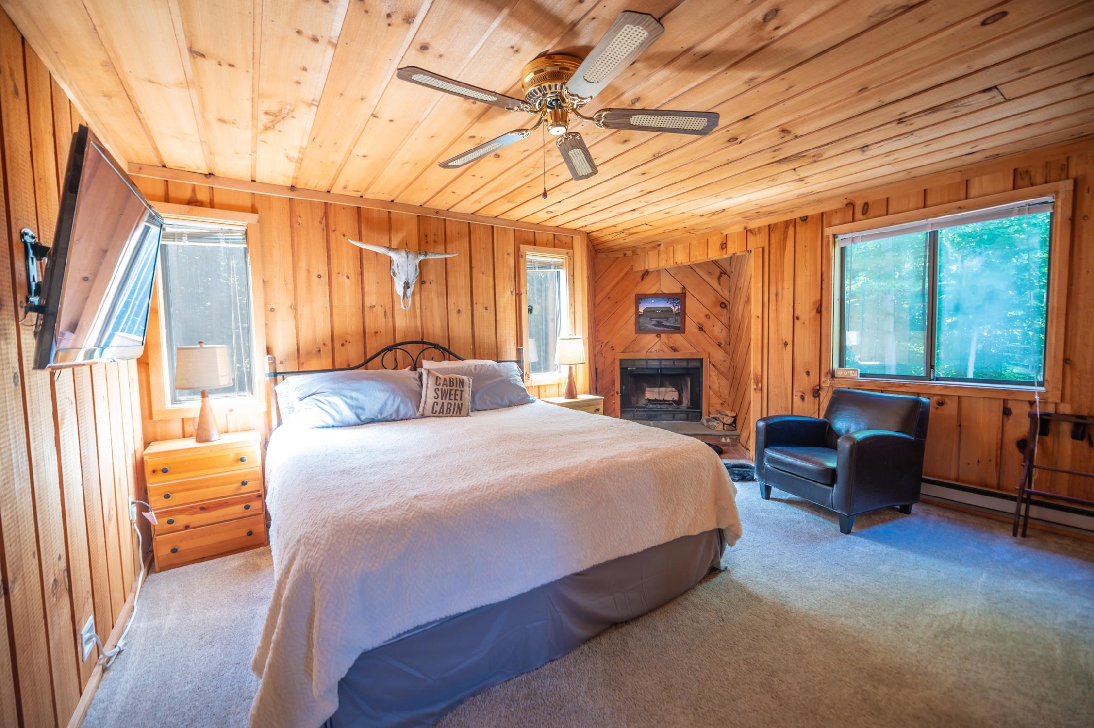 A rare opportunity to enjoy the best of both worlds — the privacy of a single-family home with the convenience and access of condo-style living. This unique vacation home offers direct ski-home access in the sought-after Bears Crossing community on the slopes of Mount Snow. Ski back from the Carinthia trails and step out of your gear just across the street from your front door. Designed with both comfort and accessibility in mind, this contemporary chalet features direct shuttle service from your driveway, ample parking for guests, and a private backyard bordering forest. Enjoy easy access to nearby hiking and biking trails, along with strong curb appeal in a peaceful setting. Inside, the main level offers a spacious open floor plan with natural woodwork and abundant light throughout. The upscale kitchen includes custom hickory cabinetry, stainless appliances, natural wood island, walk-in pantry, and laundry. A wood-burning fireplace with stone hearth anchors the living space, while the dining area opens to a rear deck with hot tub. A large screened-in porch provides ideal year-round entertaining space, complemented by an updated half bath and a newly designed mudroom entry with cubbies and hidden storage for gear. Upstairs, the primary suite features a second fireplace and full bath, along with two additional guest bedrooms and a third bath. Additional improvements include energy-efficient direct-vent heating. Enjoy all the benefits of Bears Crossing amenities — including outdoor pool, clubhouse with fitness area, ping pong, pool table, tennis courts, and shuttle service — at a fraction of typical ownership costs. A rare blend of privacy, convenience, and true ski-home access.