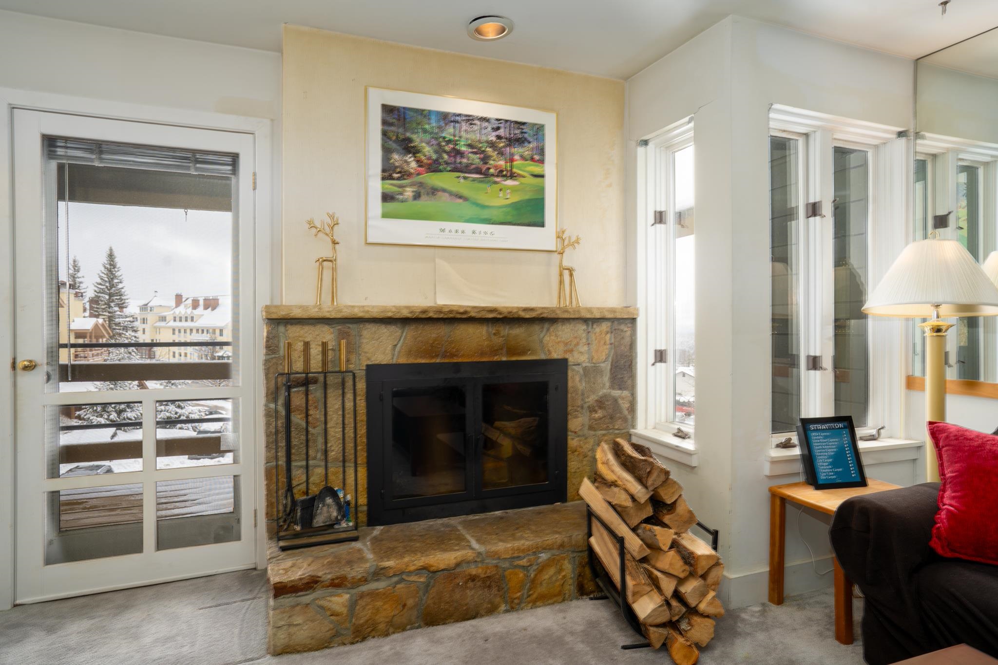Maximize your time on the snow in this coveted two-bedroom village watch condo. Featuring a spacious, open layout, the interior boasts a classic wood-burning fireplace and a full kitchen perfect for entertaining. Forget the shuttle; enjoy the seamless convenience of a private ski locker and immediate access to both the lifts and the vibrant resort village. A perfect blend of convenience, location, and mountain character.