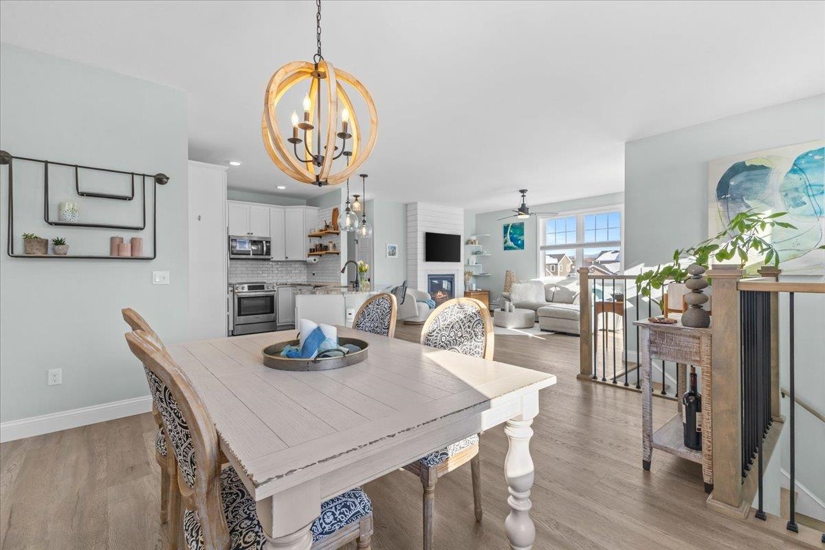 Welcome to easy living in the highly sought-after Finney Crossing community in Williston. This beautifully maintained 2-bedroom, 2-bath condo offers the perfect blend of comfort, style, and convenience — all in one of Chittenden County’s most vibrant neighborhoods. Filled with natural light thanks to its bright south-facing exposure, the open-concept main living area seamlessly connects the kitchen, dining, and living spaces, creating an inviting setting for both everyday living and entertaining. Thoughtful upgrades include stylish shiplap in the dining room, luxury vinyl plank floors throughout, quartz countertops, updated lighting fixtures, and a cozy gas fireplace for Vermont winters. Step outside to your private second-story deck — ideal for morning coffee or evening relaxation. The spacious primary suite features a generous walk-in closet and private en suite bath, while the second bedroom offers flexibility for guests, a home office, or hobby space. The oversized, extended garage provides exceptional storage and easy parking. Finney Crossing is known for its beautifully maintained green spaces and outstanding amenities, including an in-ground pool, pickleball and tennis courts, walking and biking trails, and even shared garden space. Located within walking distance to restaurants, grocery stores, and Williston schools — and just minutes to I-89 for an easy drive to Burlington, Stowe, and beyond — this home truly delivers convenience without compromise.