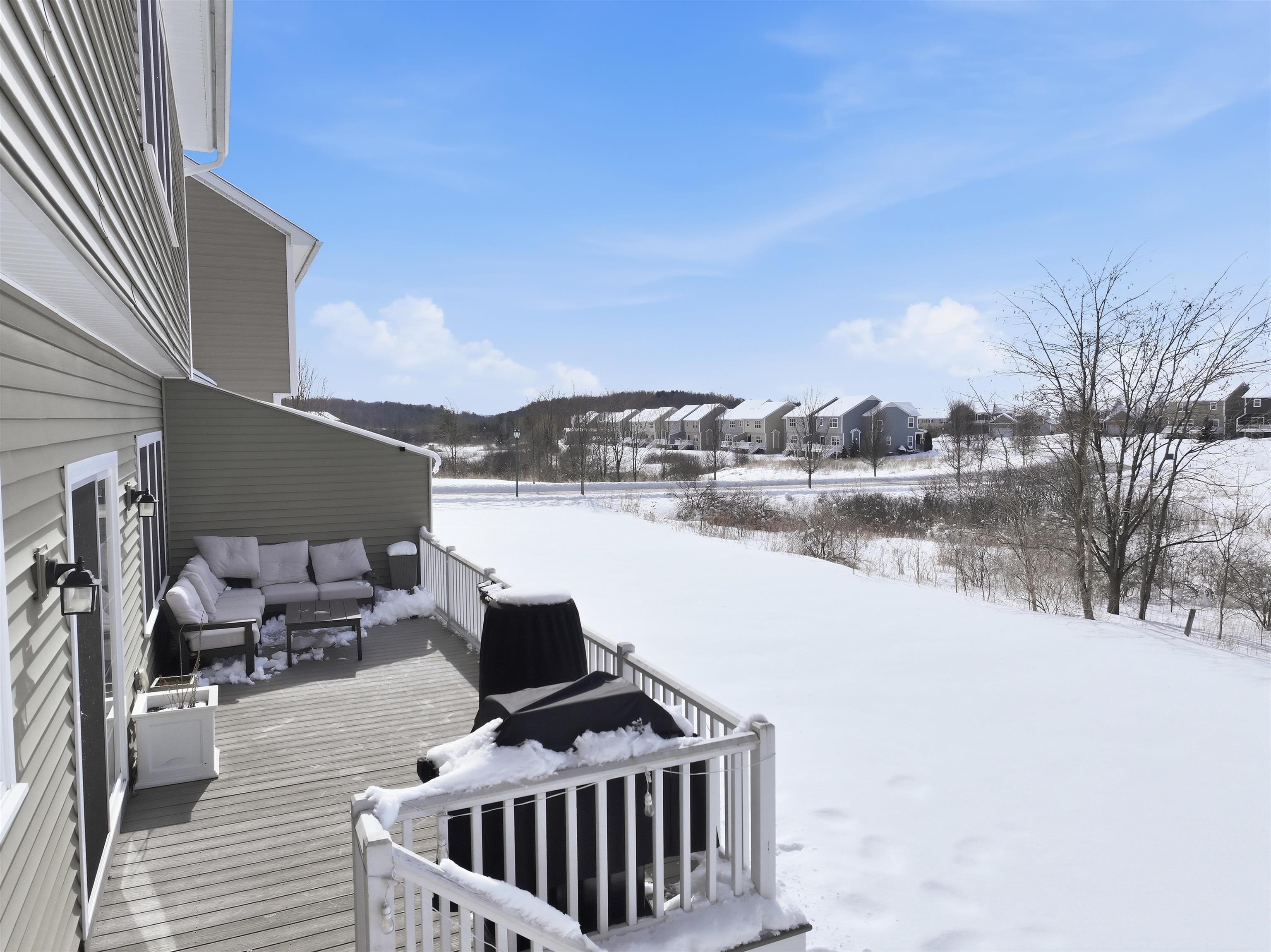 As Vermont’s spring market begins to bloom, this highly sought-after four-bedroom, four-bath Cider Mill home offers an exceptional opportunity to enjoy comfort, style, and location in one of South Burlington’s most desirable neighborhoods. Perfectly positioned on a premier lot with generous elbow room and peaceful surroundings, this residence is thoughtfully designed for modern living. The main level welcomes you with an open, light-filled floor plan ideal for both everyday living and entertaining. The kitchen is the heart of the home, featuring granite countertops, a tiled backsplash, stainless steel appliances, and a center island with seating—perfect for casual gatherings or morning coffee. The kitchen flows seamlessly into the dining area and inviting living room anchored by a cozy gas fireplace. Just off the entry, a versatile bonus room with French doors offers the perfect space for a home office, study, or playroom. Nine-foot ceilings, gleaming hardwood floors, and a mudroom provides everyday functionality. Upstairs, three spacious bedrooms offer generous closets, accompanied by a full bath and convenient second-floor laundry. The serene primary suite enjoys western exposure, a vaulted ceiling, custom walk-in closet, and a spa-inspired ensuite bath complete with double vanity, soaking tub, and step-in shower. The lower level expands the living space with daylight windows, a recreation area, and a private fourth bedroom and bath—ideal for guests, hobbies, or flexible living needs. Step outside to a full-length back deck overlooking the yard and capturing distant views of Camel’s Hump to the east and glowing Adirondack sunsets to the west. Tucked at the end of a quiet cul-de-sac, the home enjoys a peaceful setting within the vibrant Cider Mill community.
