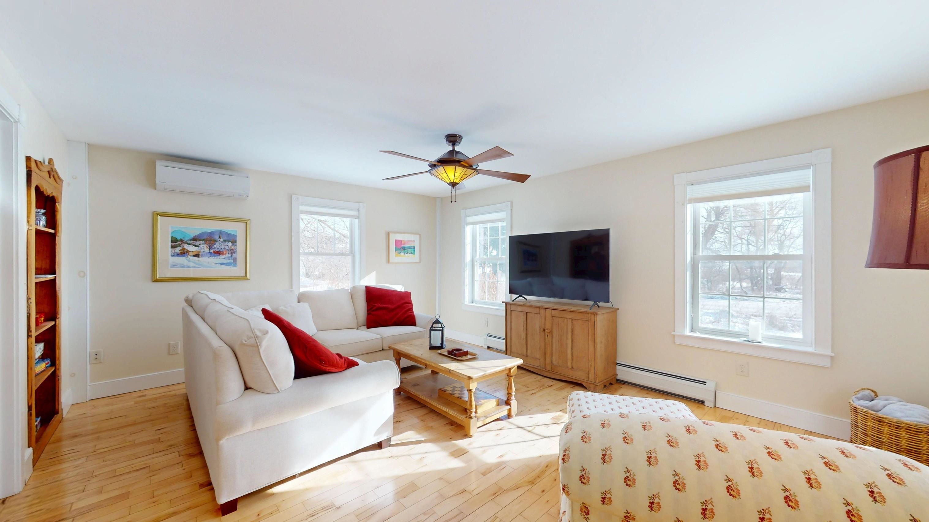 Conveniently located just 10 minutes to Middlebury, and 5 minutes to Bristol Village, this 1800s farmhouse was completely redone in 2015. Starting with a brand new foundation, all mechanicals, electrical, plumbing, heating system, windows, siding, insulation, roof- you name it- it was new! Some original wood floors remain, and were refinished. The current owners added three mini splits for air conditioning as well as a new refrigerator, dishwasher, washer and dryer in 2023. Enter in via the covered front porch, and the eat in kitchen greets you. Hardwood floors, and pantry closet as well. The living room is nearby, with another room that could be a great office or additional guest room. A full bath completes this level. Upstairs you will find a large bedroom with two closets and handsome original pine floors, a second bedroom and a 3/4 bath. The landing at the top of the stairs makes a great reading nook, office space or craft area. The full basement was brand new in 2015, complete with an exterior perimeter drain so it is nice and dry for storage or future finished space! The washer and dryer are down there as well. Sitting on a nice level lot, with public fields behind the home, close to the town common and the much loved Village Green Market! This home really is ready to move right in!
