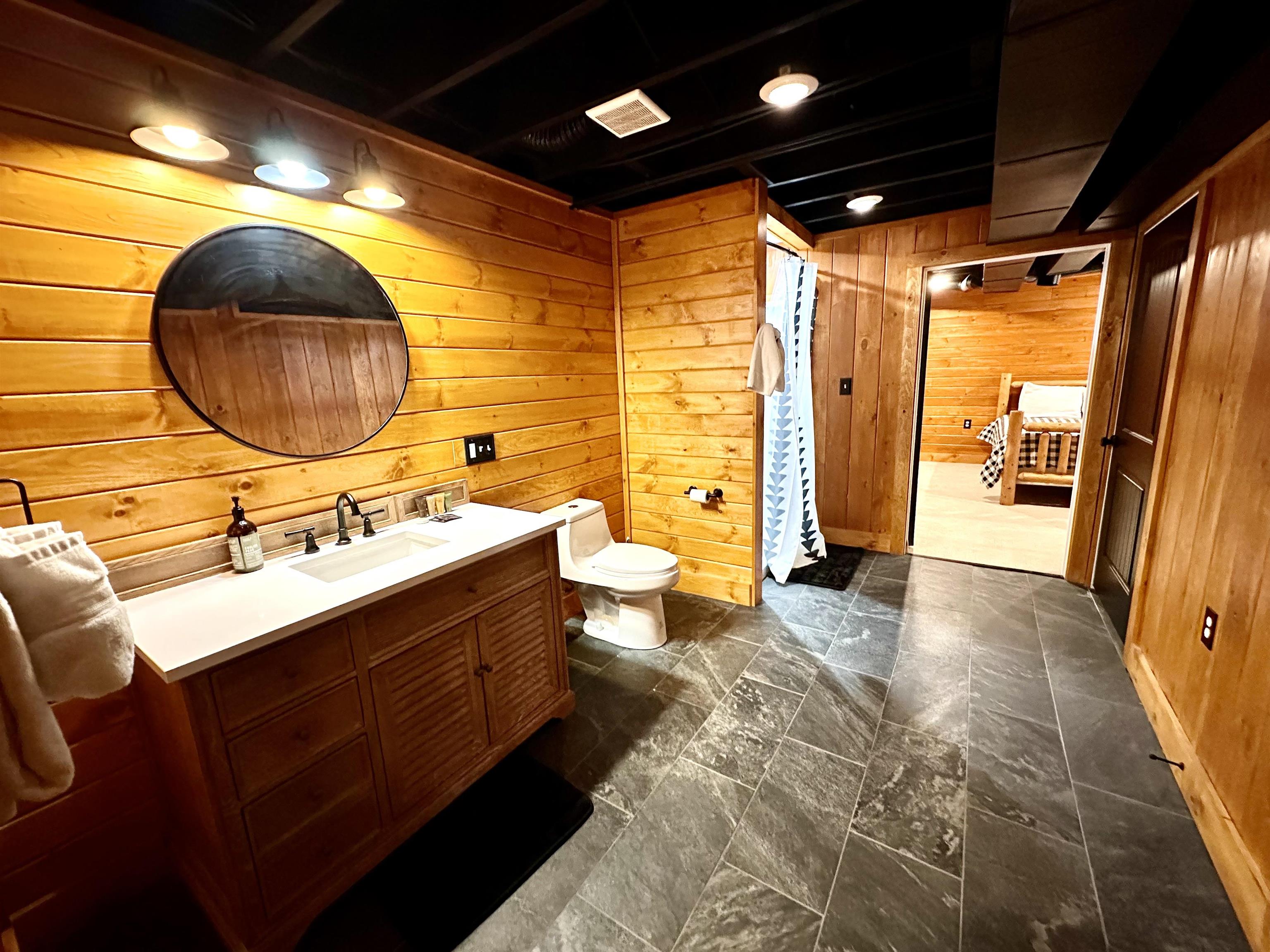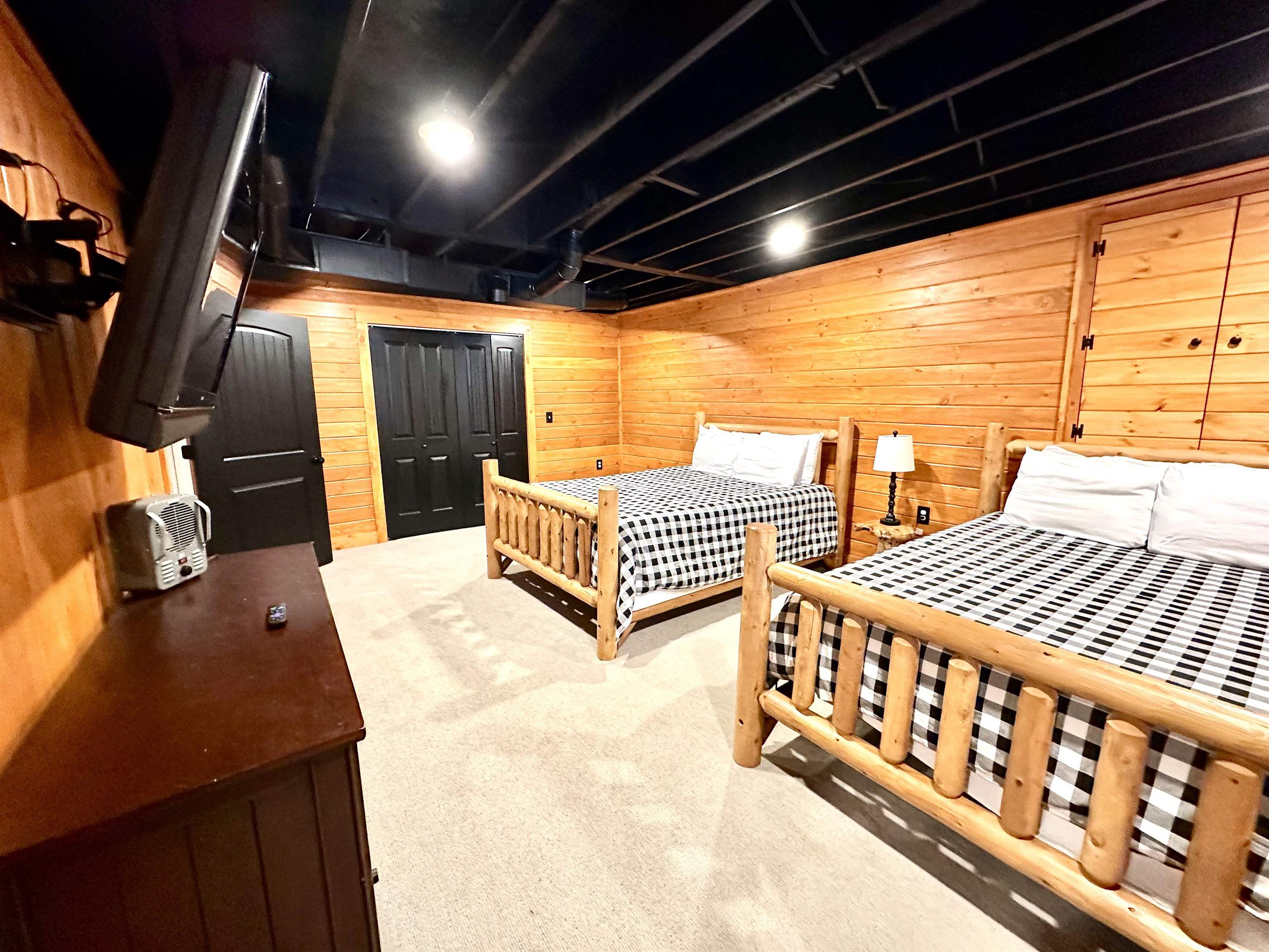 Nestled on 2.37 private acres in a serene mountain setting just minutes from skiing, this custom-built three-bedroom, three-bath log home offers the perfect blend of rustic charm and comfort. Constructed with double tongue-and-groove logs, the home showcases the rich wood interior and craftsmanship you would expect in a classic mountain retreat. The open-concept main level centers around a stunning fieldstone hearth and cozy wood stove, complemented by beautiful oak flooring throughout. A covered front porch overlooks the peaceful wooded landscape, while the back deck enjoys long hours of sunshine—ideal for relaxing or entertaining. The main level includes a spacious primary bedroom with an ensuite bath, a bunk room, an additional full bathroom, and a versatile bonus room perfect for a den, home office, or extra sleeping space. Downstairs, the walkout lower level features a generous mudroom designed for all your outdoor gear, a large bedroom, a full bathroom, and another flexible bonus room ideal for recreation or entertaining. Set well back from a quiet country road yet conveniently located near the quaint village of Jamaica, the property is accented by classic stone walls and gladed woods, enhancing its Vermont charm. A two-car garage, storage shed for recreational equipment, and a timber shed complete this exceptional offering. Whether you're seeking a full-time residence or a mountain getaway, this inviting log home delivers privacy, character, and convenience in one beautiful package.