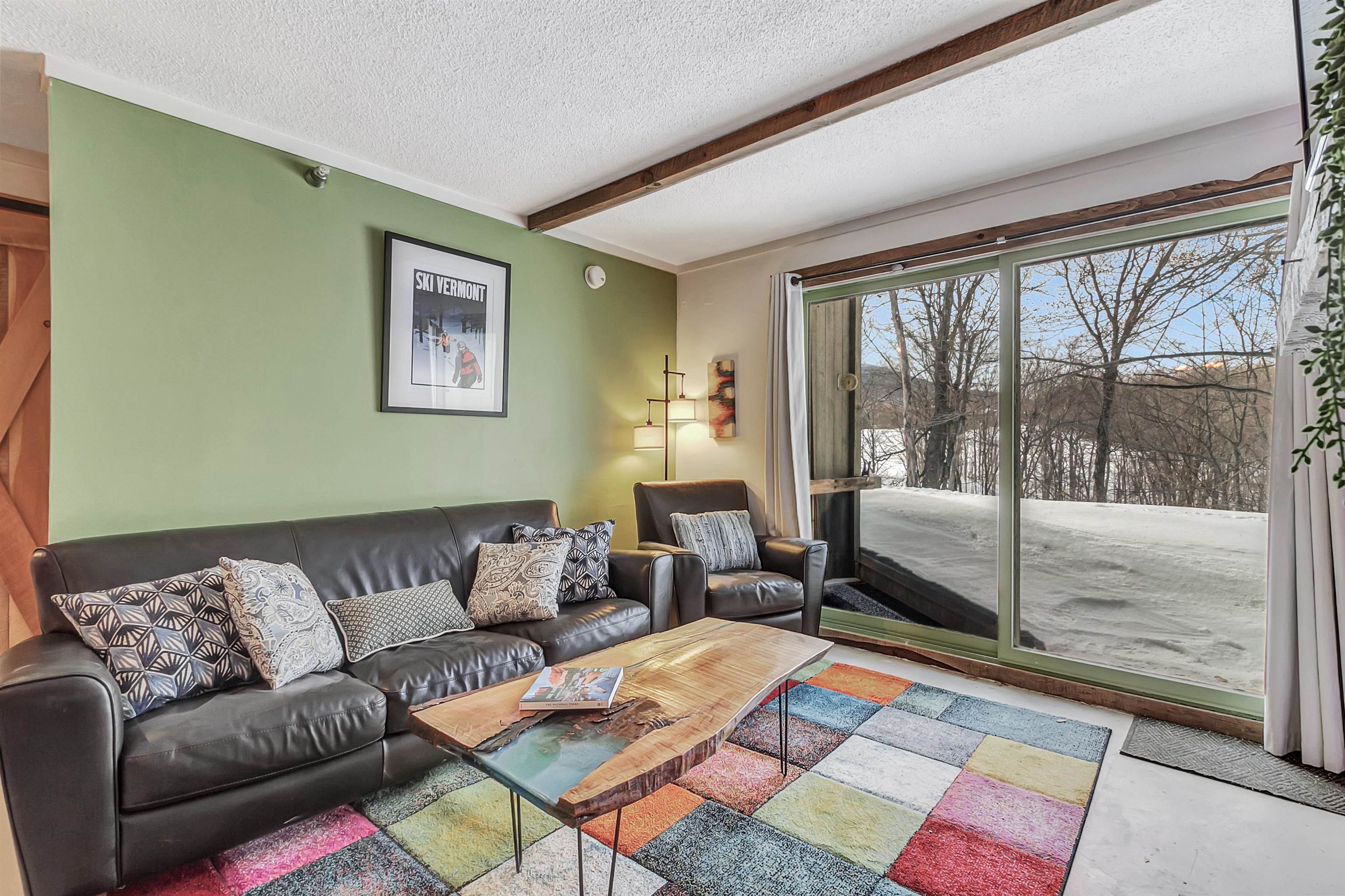 Imagine stepping out your front door and skiing straight home — no shuttles, no parking, no hassle. This updated ground-floor 2 bedroom, 2 bath condo in Whiffletree sits directly across from Killington Resort's ski-home trail, making après-ski as easy as it gets. Take the resort shuttle up and ski your way back — it never gets old. Inside, you'll find handcrafted finish work throughout, generous closet space, and an abundance of natural light. The unit comes fully furnished and move-in ready, so all you need to bring is your gear. Step out back and you're overlooking the 17th hole of Killington Golf Course — a stunning four-season backdrop. Community amenities include a tennis court, seasonal in-ground pool, a gazebo with sweeping views of the golf course and Green Mountains, and coin-operated laundry right outside your door. The details that matter: No short-term rental restrictions. Pets welcome — dogs and cats alike. Fully furnished and ready to enjoy from day one.