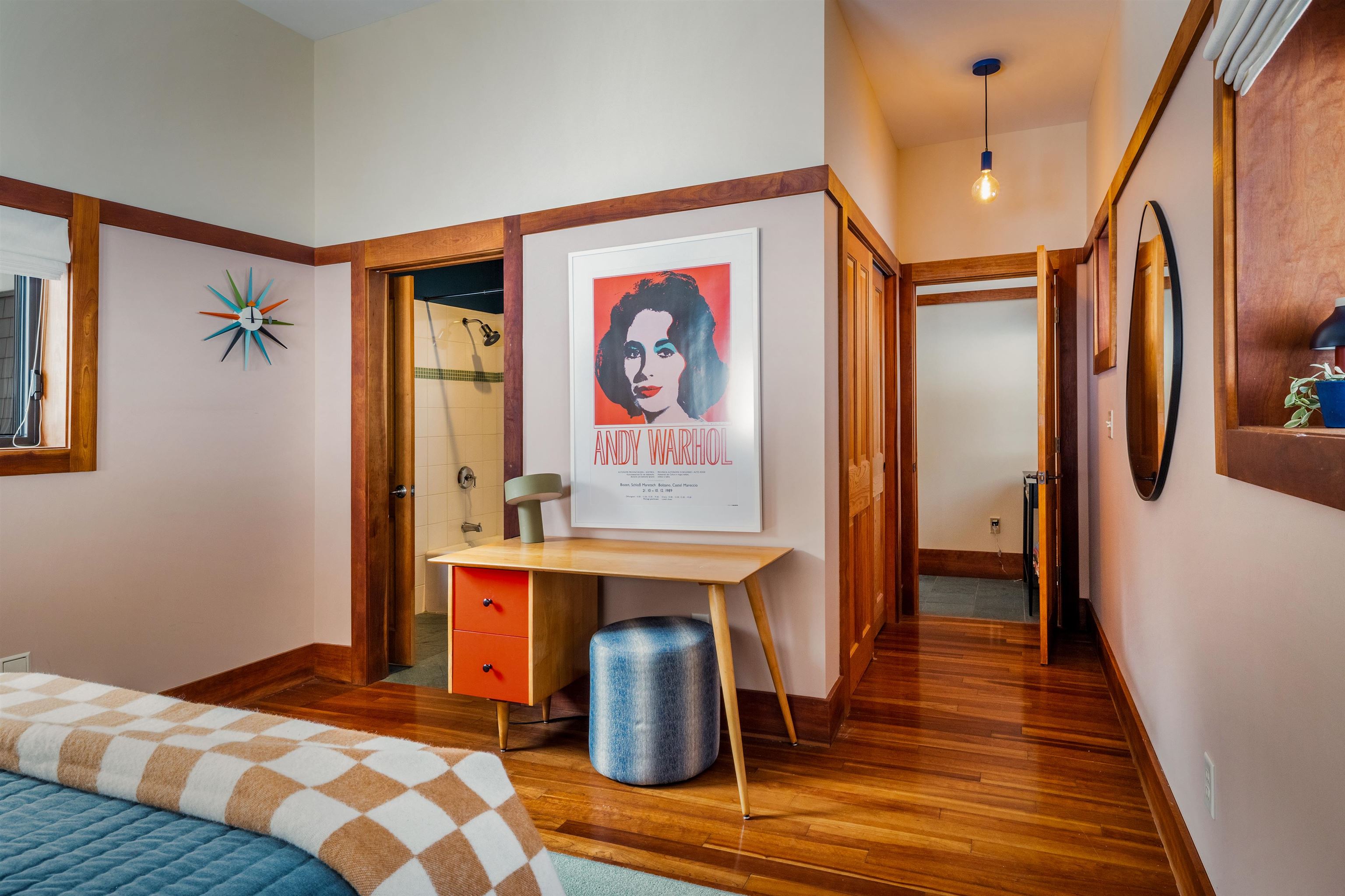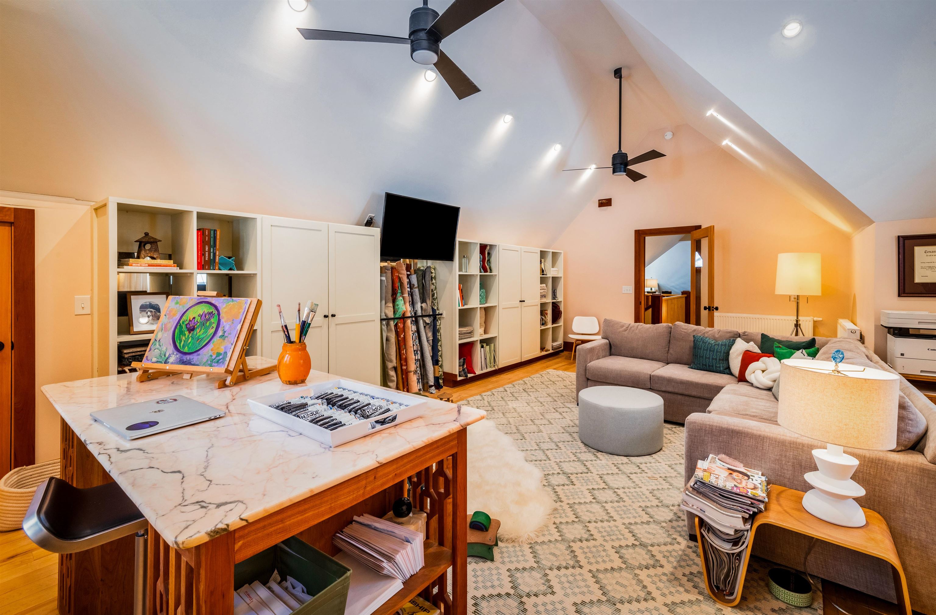 - Central Vacuum, Bar, Blinds, Cathedral Ceiling, Ceiling Fan, Dining Area, Fireplace Screens/Equip, Wood Fireplace, 1 Fireplace, Hearth, Hot Tub, Kitchen Island, Kitchen/Dining, Laundry Hook-ups, LED Lighting, Primary BR w/ BA, Natural Light, Natural Woodwork, Security, Soaking Tub, Indoor Storage, Vaulted Ceiling, Walk-in Closet, Walk-in Pantry, Wet Bar, Window Treatment, Programmable Thermostat, 2nd Floor Laundry