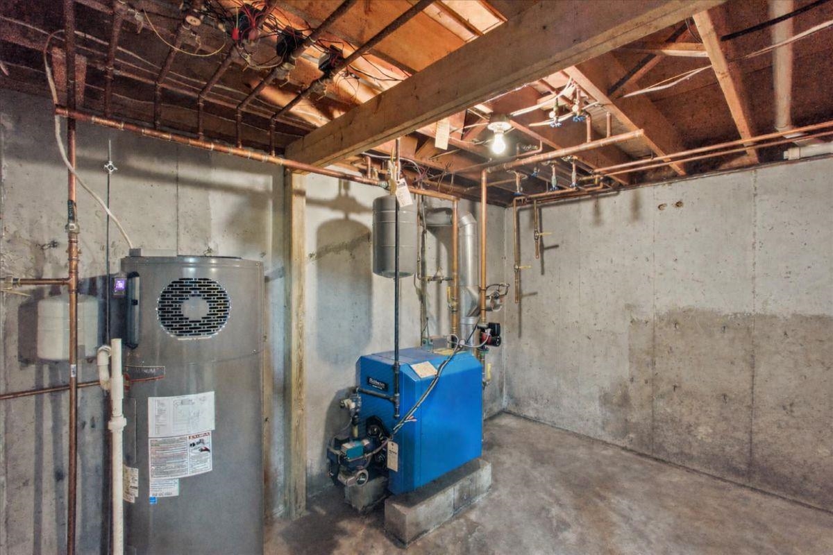 - Concrete, Concrete Floor, Interior Stairs, Storage Space, Sump Pump, Interior Access