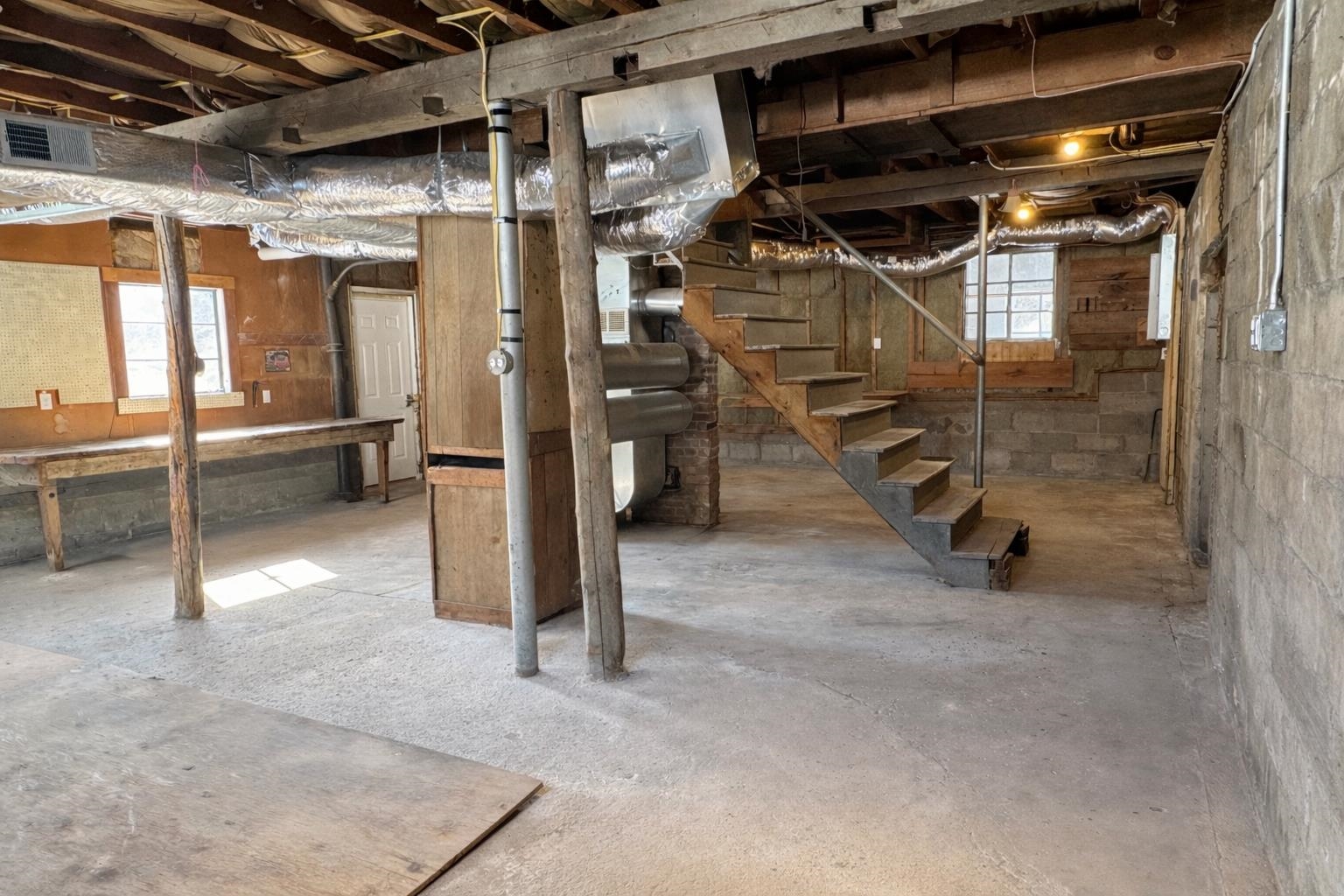 - Concrete, Unfinished, Interior Access, Exterior Access, Basement Stairs