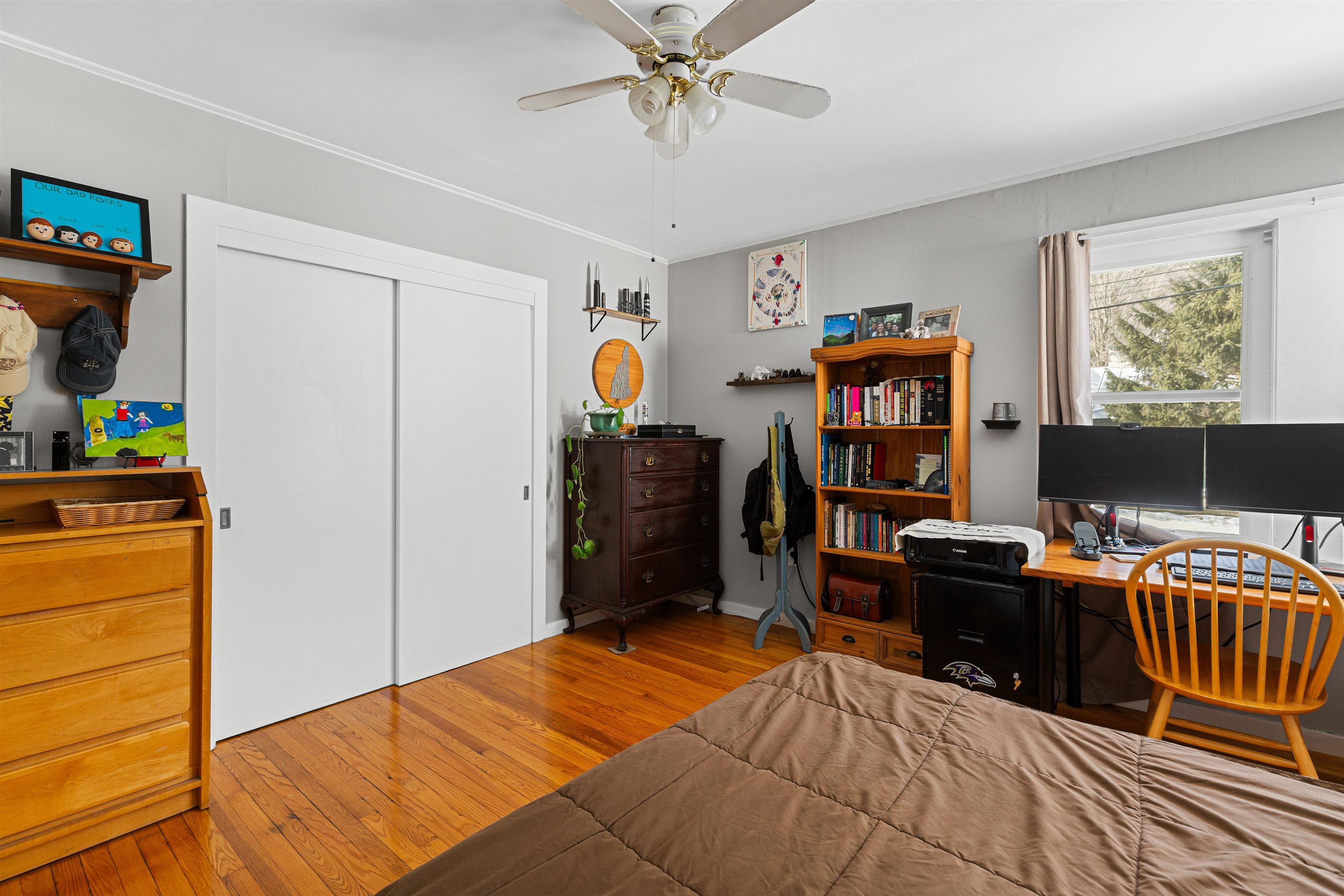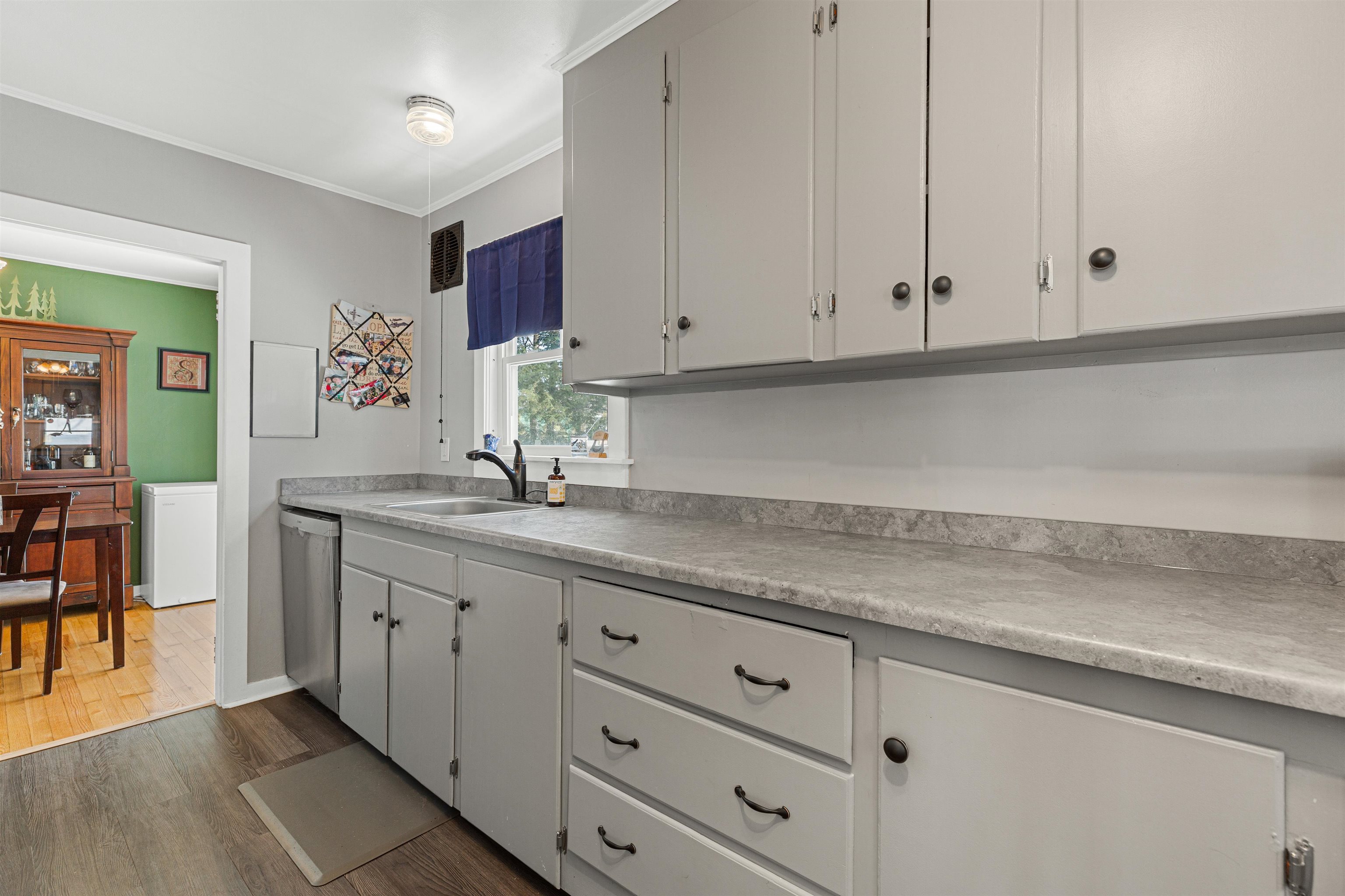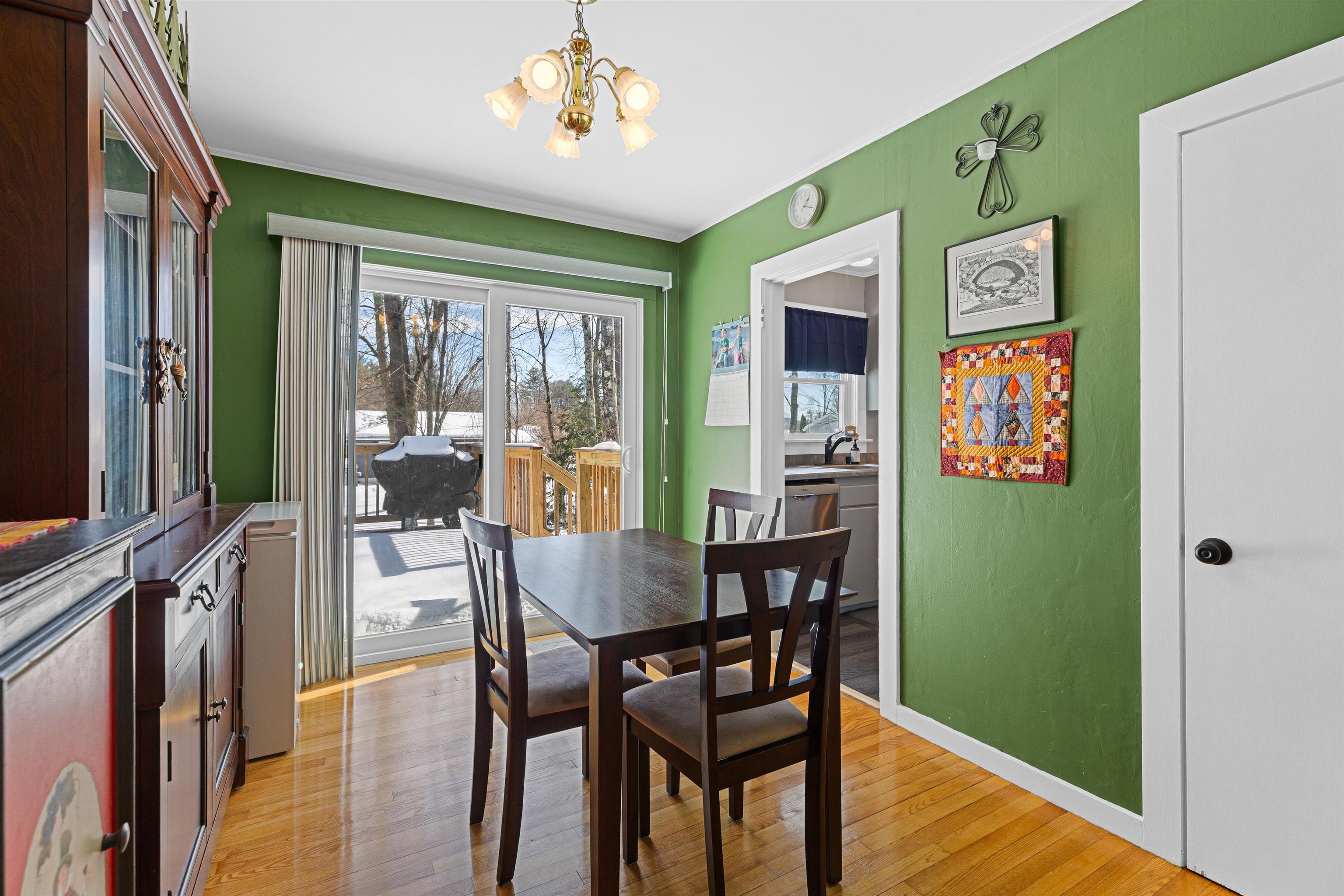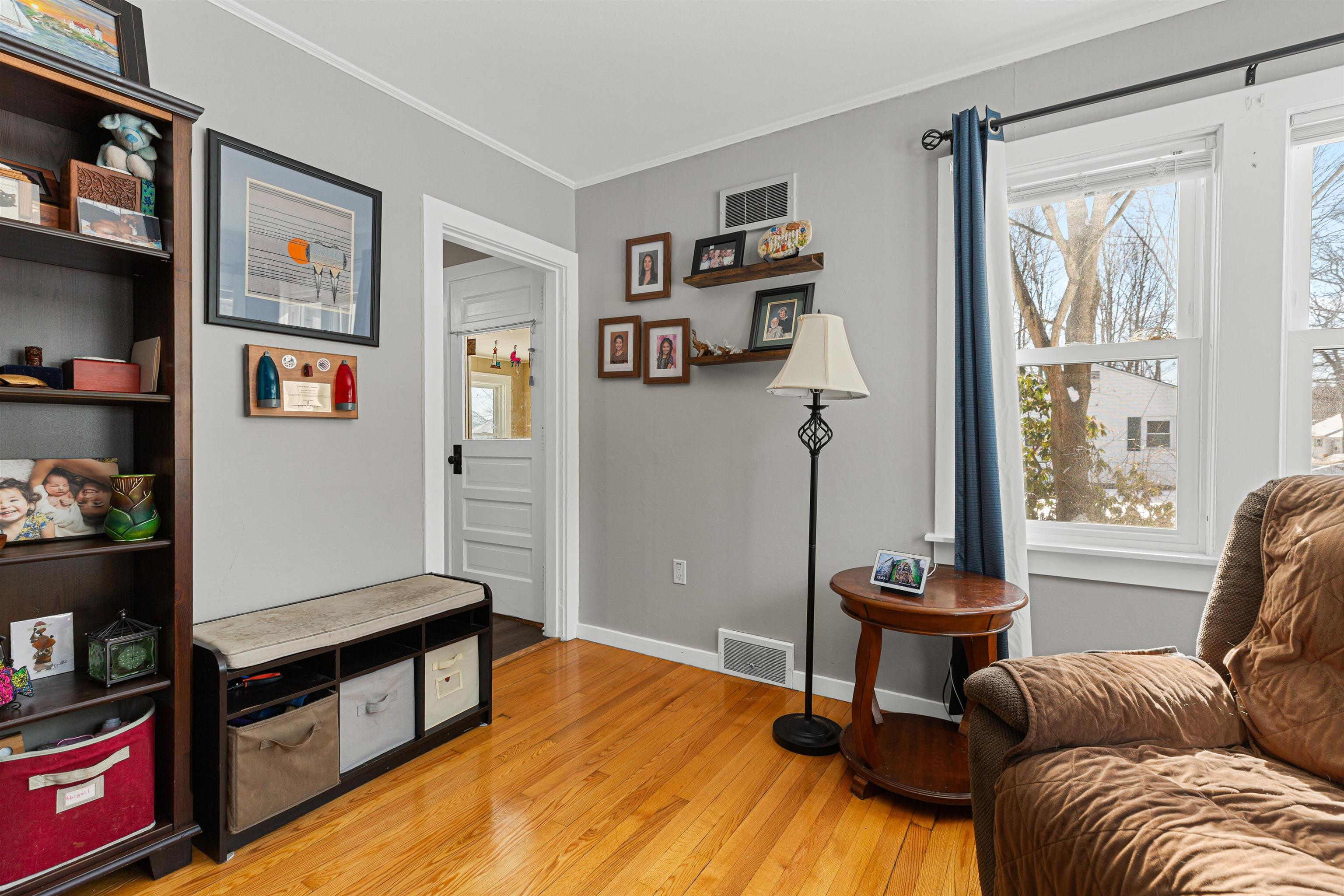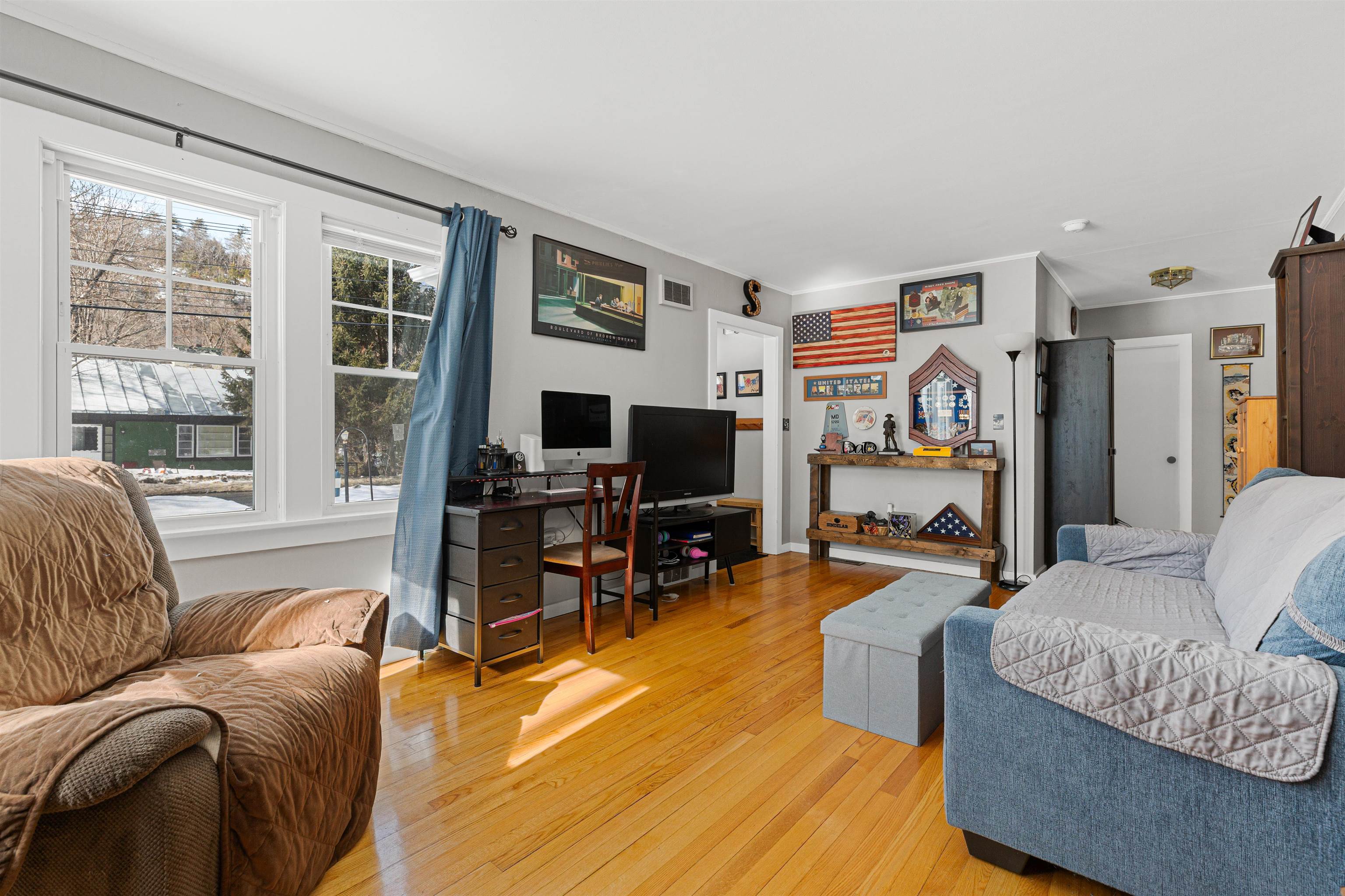 Enjoy easy one-level living in this well-maintained 2-bedroom, 1-bath ranch in a super convenient White River Junction location. Hardwood floors run through the living room and bedrooms, while the kitchen features newer vinyl plank flooring and the bathroom is tastefully tiled. A bright three-season sun porch with recently replaced windows offers a perfect spot to relax and overlook the level backyard. Step outside to a new back deck—ideal for outdoor dining or entertaining. Additional features include a detached two-car garage, newer windows, and a full basement with great potential for future expansion, storage, or a home gym. Located just minutes to shopping, schools, public transportation, and quick access to I-89 and I-91, this home offers both comfort and convenience in the heart of the Upper Valley.
