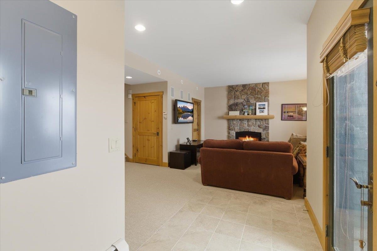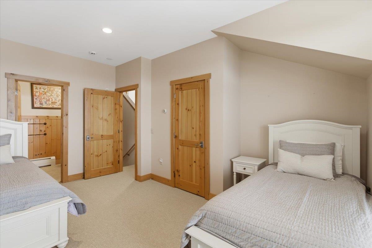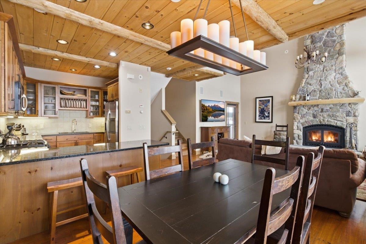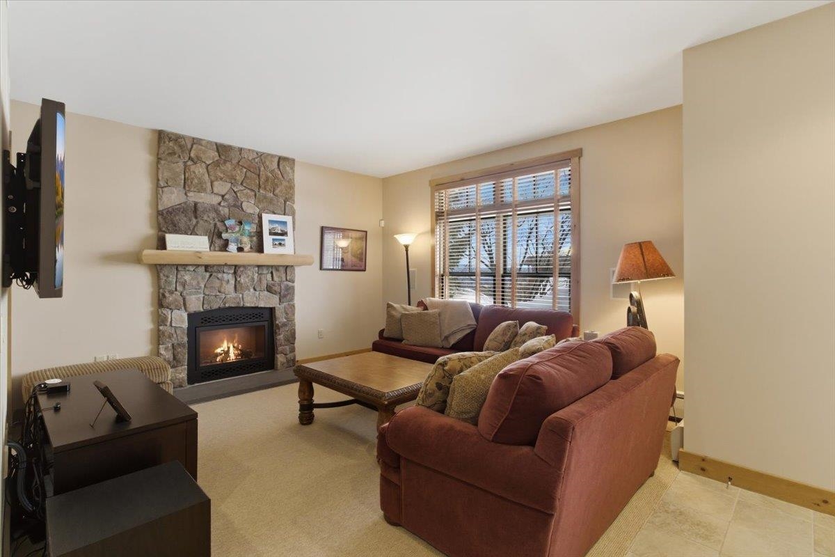 Enjoy true trailside living in this luxury four-bedroom, four-bathroom townhouse at the highly sought-after Treetop development at Stratton. With mountain views and ski-in/ski-out access, you'll spend more time skiing, less time with logistics! Inside, the open living, dining, and kitchen area reflects classic Adirondack style, creating a warm and inviting space for gathering after a day on the mountain. The kitchen island with bar seating is perfect for a quick breakfast and opens to the main living area. A covered side porch offers a quiet place to relax. The spacious primary suite features a private balcony and a small office just outside the bedroom. The thoughtful floor plan allows for private bedroom suites throughout the home. On the lower level, a generous family room opens onto a patio with a private hot tub, and the adjacent full bathroom makes this space easily function as a fourth bedroom if desired. Treetop residences feature a covered entry porch, a dedicated ski storage room, and a detached garage. Air conditioning, shuttle service, and an on-site caretaker make ownership effortless. Offered furnished. The Sports Center bond is current and transferable to the new owner (transfer fee applies). Stratton Mountain Club membership is available.