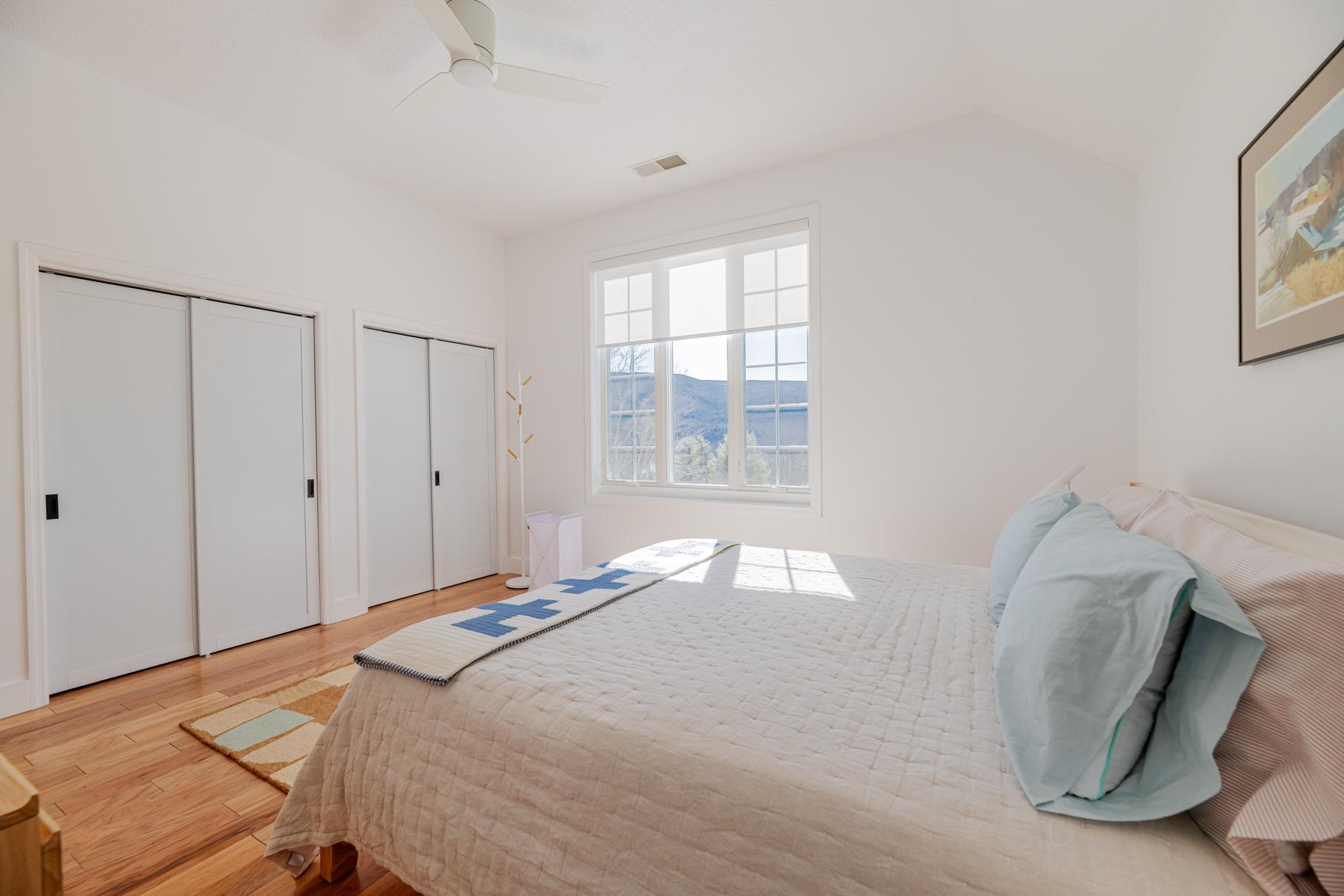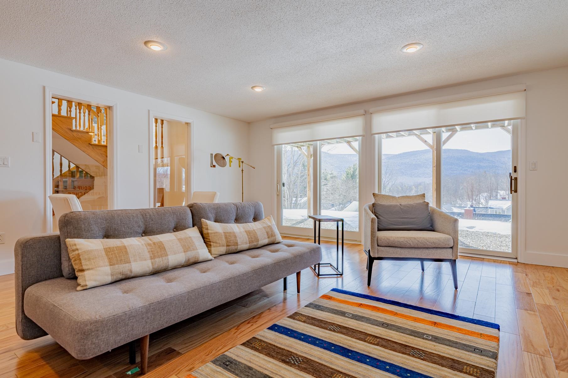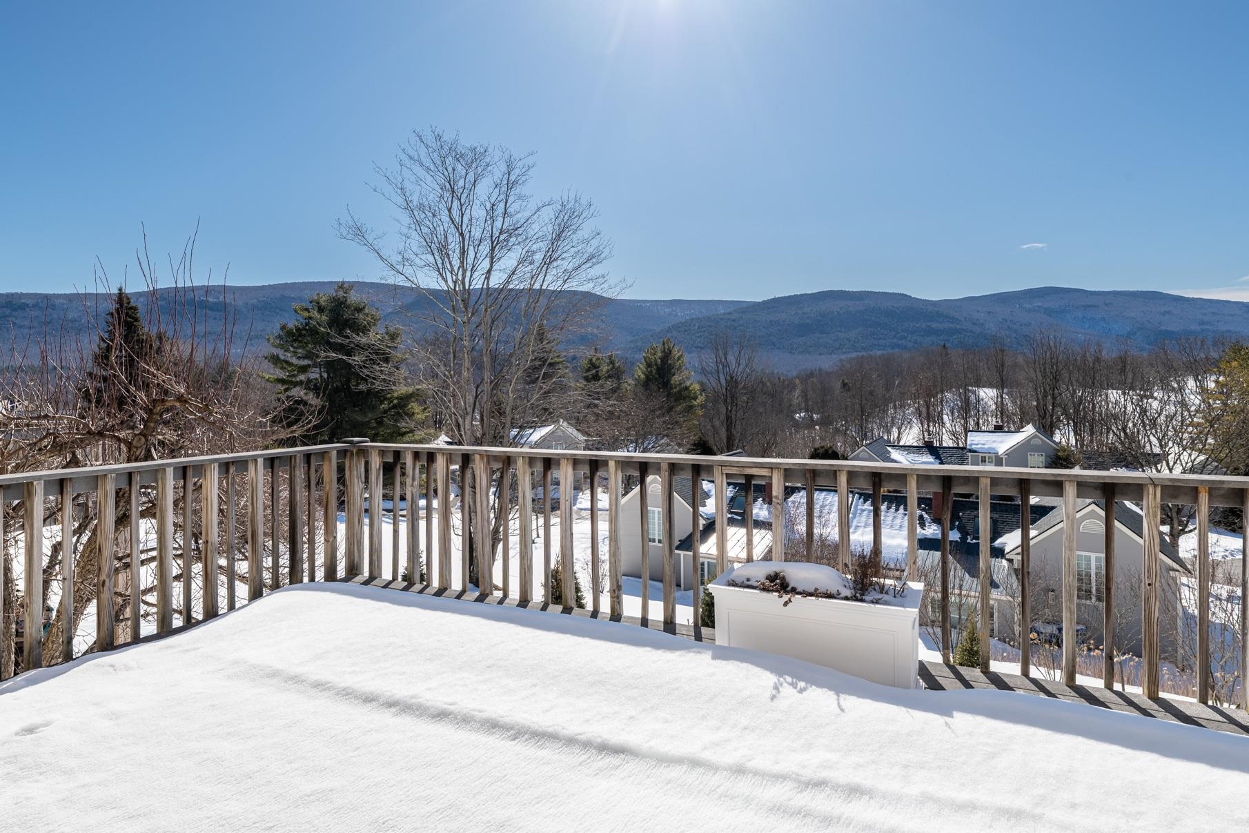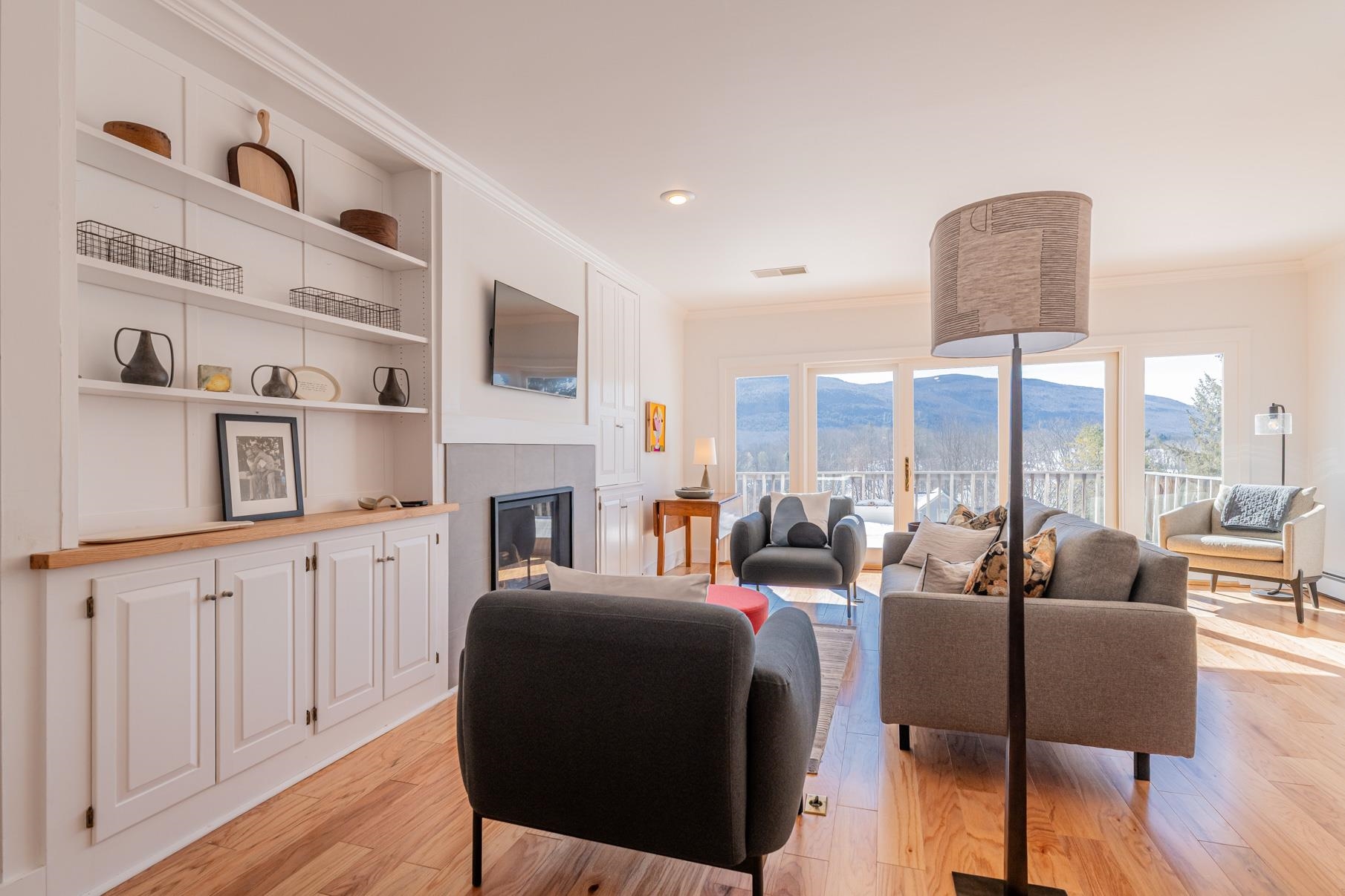 Experience elevated living in this exceptionally renovated “Villager” EOB condo. Offering 3 bedrooms and 3.5 bathrooms, where timeless design meets modern comfort. Framed by captivating mountain views, this sophisticated home showcases rich hardwood flooring throughout and thoughtfully curated finishes that create a warm yet contemporary atmosphere. At the heart of the home is a beautifully appointed chef-inspired baker’s kitchen, designed for both everyday living and effortless entertaining. The space features brand-new appliances, custom cabinetry, a new sink, open display shelving, and a generous walk-in pantry, blending functionality with refined style. Each of the spa-inspired bathrooms has been completely remodeled, offering modern fixtures and polished finishes that bring a sense of luxury to daily living. The living area is anchored by a sleek, modern propane fireplace, creating an inviting focal point perfect for cozy evenings after a day of enjoying all the area amenities. A large deck brings the outdoors inside for afternoon tea or star-watching on a warm summer night. The finished lower level is a perfect second living area complete with bath to handle extra guests or a quiet place to just unwind. New designer lighting and ceiling fans throughout enhance the home’s bright, contemporary aesthetic. With its turnkey condition and elevated design, this residence offers an exceptional opportunity for those seeking a luxurious primary home or vacation retreat in one of Manchester's most popular condominium communities. Take advantage of the heated pool, tennis, pickleball and paddle courts. Rarely does a property combine this level of renovation, style, and views, making this a truly exceptional offering. All measurements approximate.