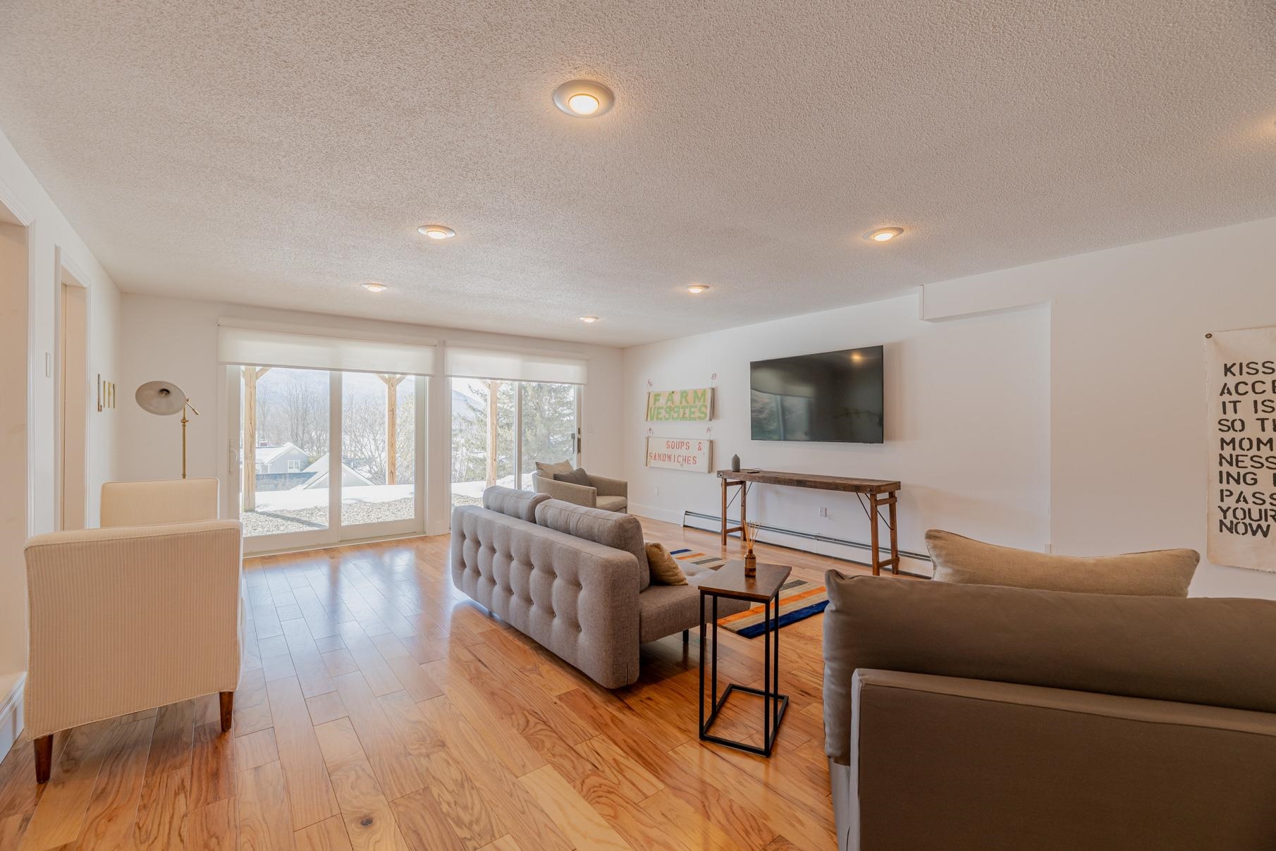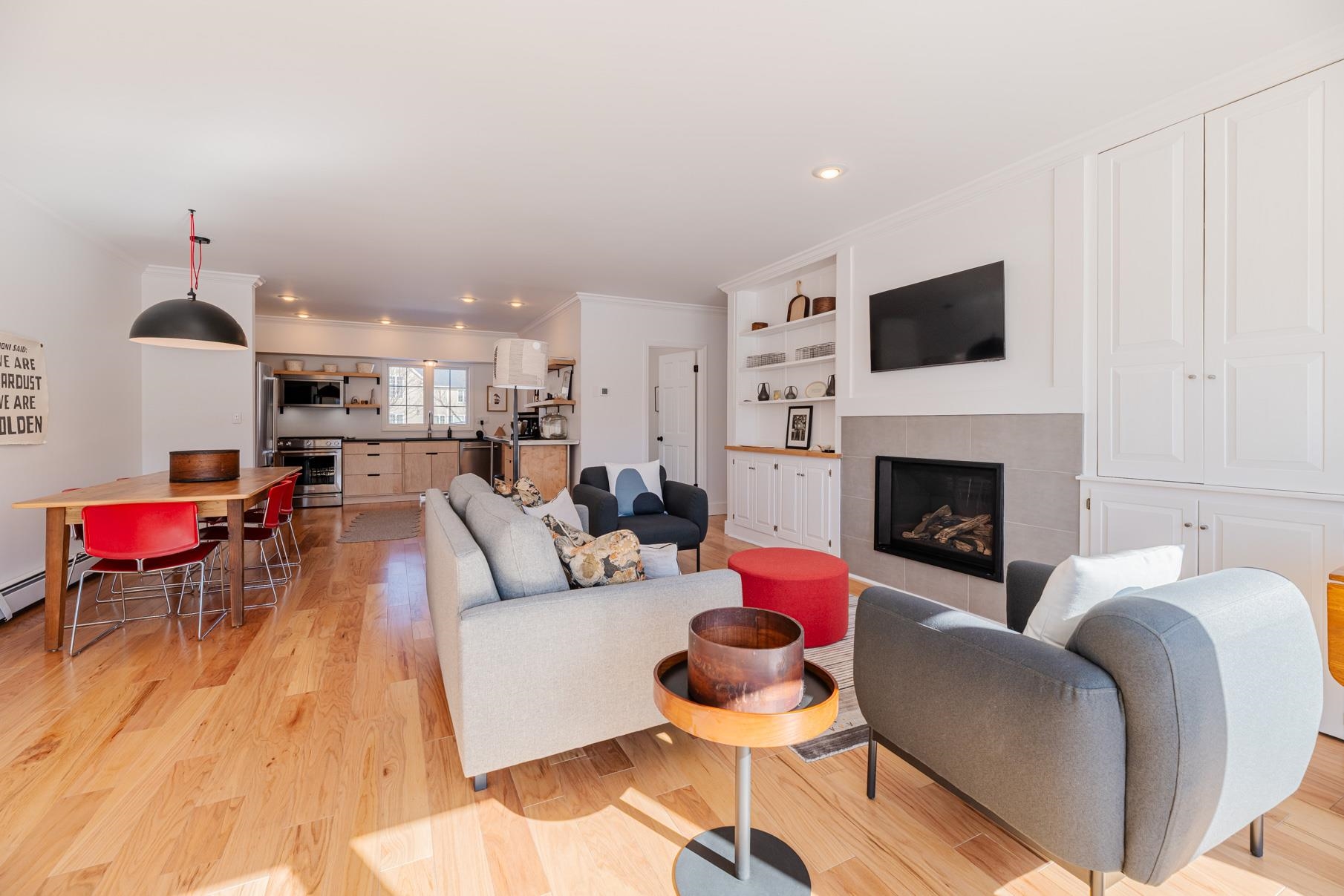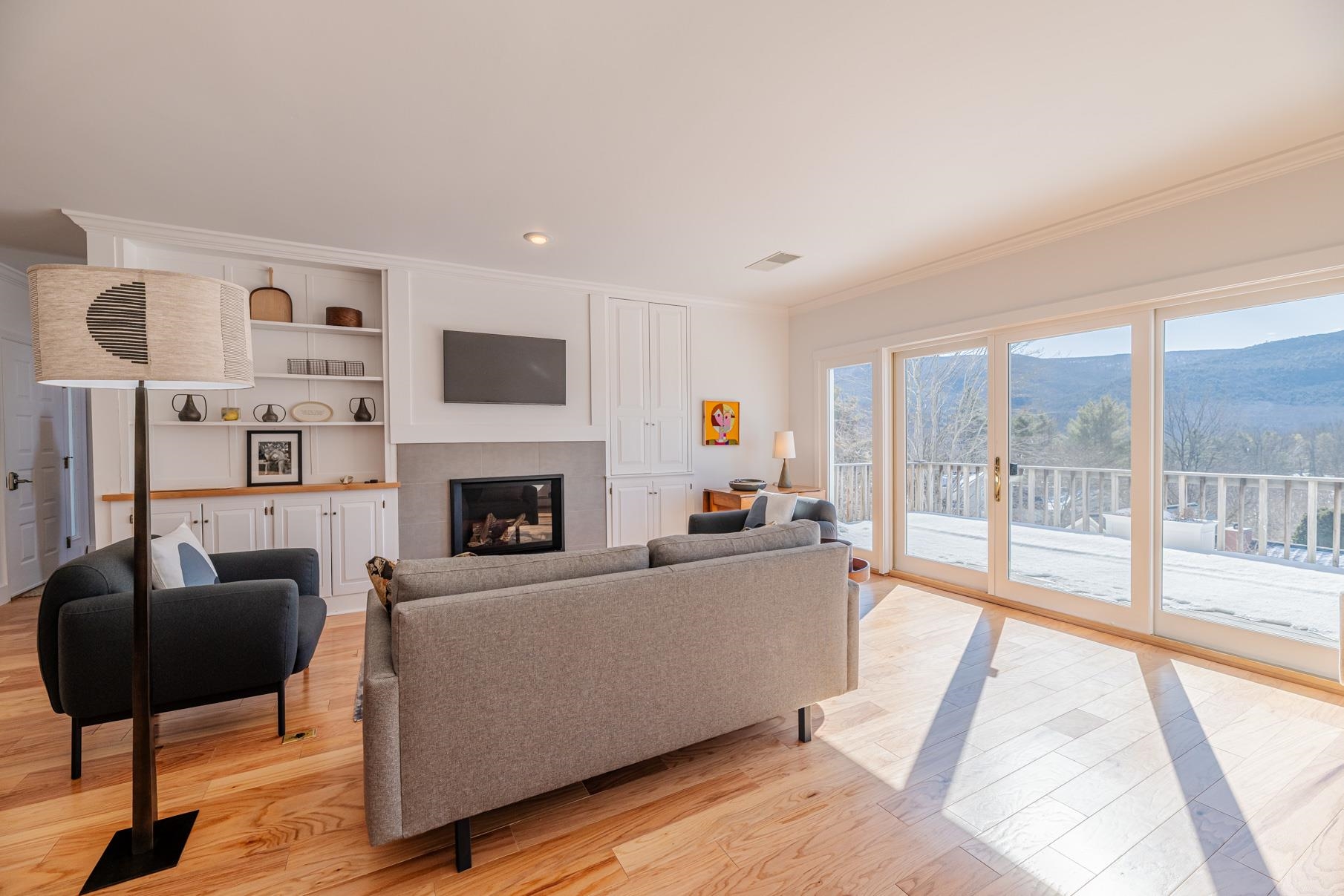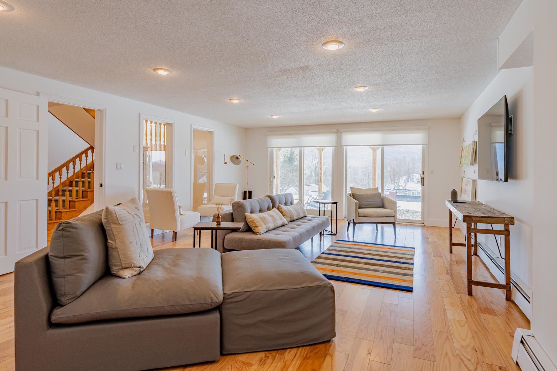 Experience elevated living in this exceptionally renovated “Villager” EOB condo. Offering 3 bedrooms and 3.5 bathrooms, where timeless design meets modern comfort. Framed by captivating mountain views, this sophisticated home showcases rich hardwood flooring throughout and thoughtfully curated finishes that create a warm yet contemporary atmosphere. At the heart of the home is a beautifully appointed chef-inspired baker’s kitchen, designed for both everyday living and effortless entertaining. The space features brand-new appliances, custom cabinetry, a new sink, open display shelving, and a generous walk-in pantry, blending functionality with refined style. Each of the spa-inspired bathrooms has been completely remodeled, offering modern fixtures and polished finishes that bring a sense of luxury to daily living. The living area is anchored by a sleek, modern propane fireplace, creating an inviting focal point perfect for cozy evenings after a day of enjoying all the area amenities. A large deck brings the outdoors inside for afternoon tea or star-watching on a warm summer night. The finished lower level is a perfect second living area complete with bath to handle extra guests or a quiet place to just unwind. New designer lighting and ceiling fans throughout enhance the home’s bright, contemporary aesthetic. With its turnkey condition and elevated design, this residence offers an exceptional opportunity for those seeking a luxurious primary home or vacation retreat in one of Manchester's most popular condominium communities. Take advantage of the heated pool, tennis, pickleball and paddle courts. Rarely does a property combine this level of renovation, style, and views, making this a truly exceptional offering. All measurements approximate.